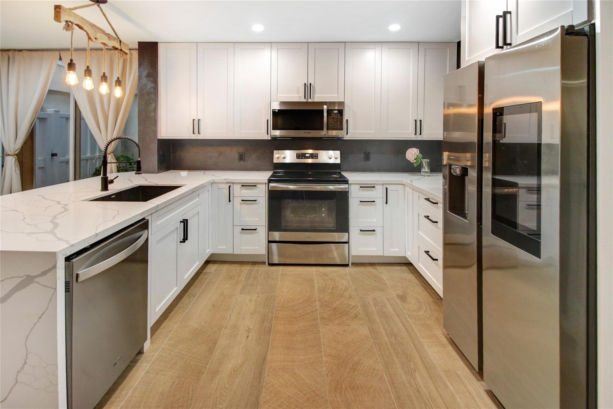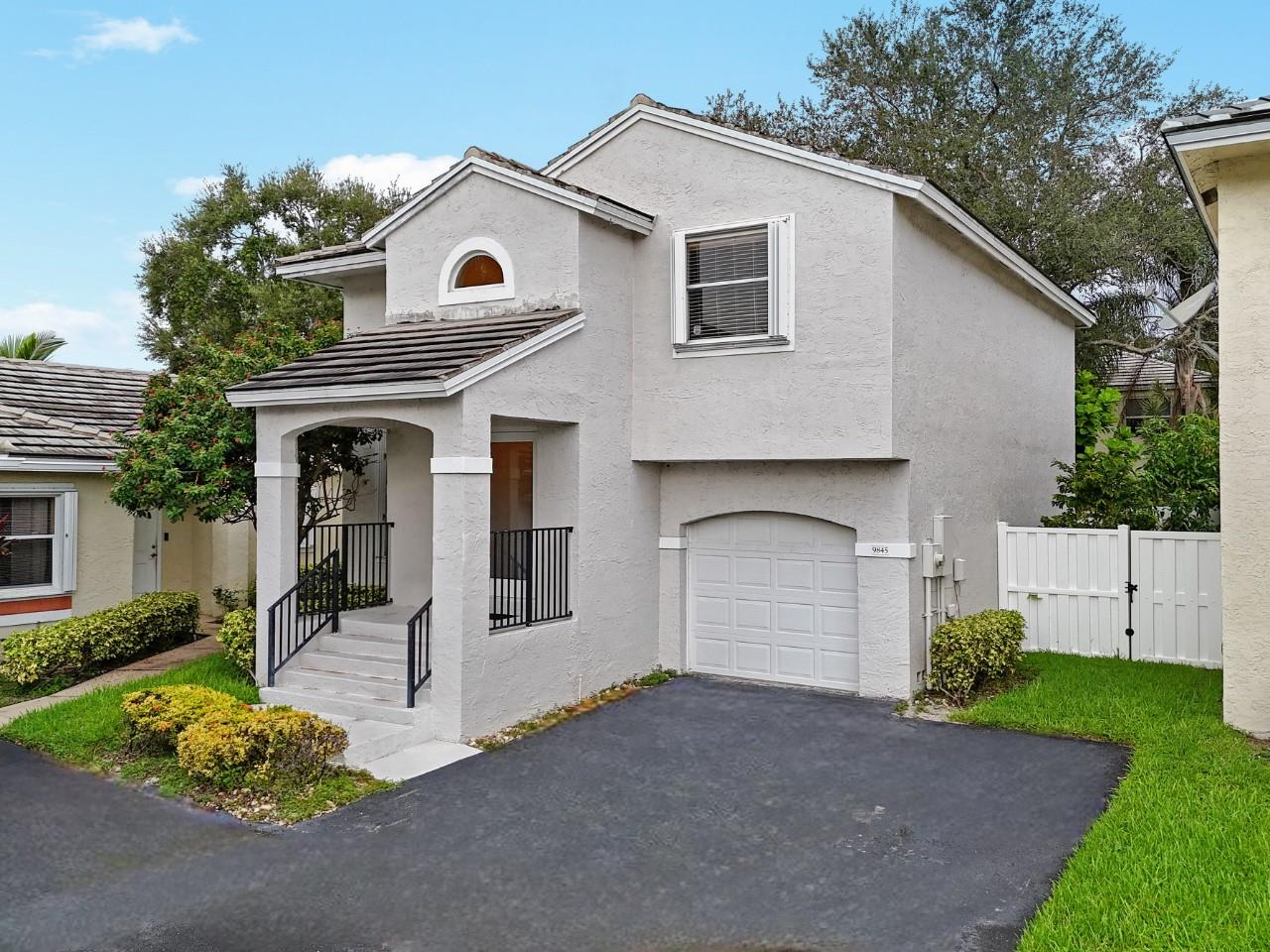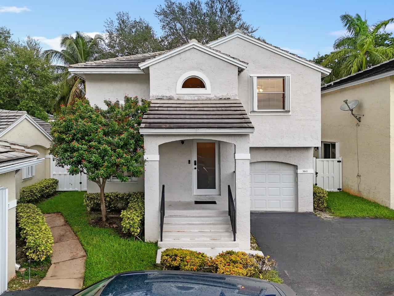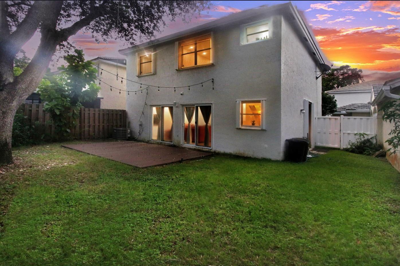 ABSOLUTELY STUNNING 3-bedroom, 2.5-bath home in the highly sough after community of Jacaranda featuring HUGE FENCED BACK YARD, tall ceilings & a beautifully remodeled kitchen w/ all-wood cabinetry, sleek STAINLESS STEEL APPLIANCES, & elegant QUARTZ COUNTERTOPS. The open-concept layout is enhanced by upgraded lighting fixtures, adding a modern touch to every room. The wood-like tile floors downstairs offer both style & durability. Laminate flooring upstairs provides elegance & comfort. Sliding Glass door in rear in IMPACT GLASS. Accordion shutters on every opening provide added security & peace of mind. GREAT SCHOOLS. HOA includes sprinklers and sprinkler repairs. The entire house was replumbed in 2019 (ALL polybutylene replaced) which is a HUGE UPGRADE! ROOF 2017. Community Pool included