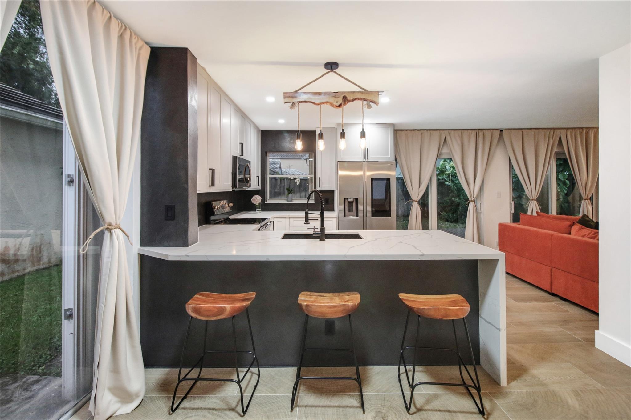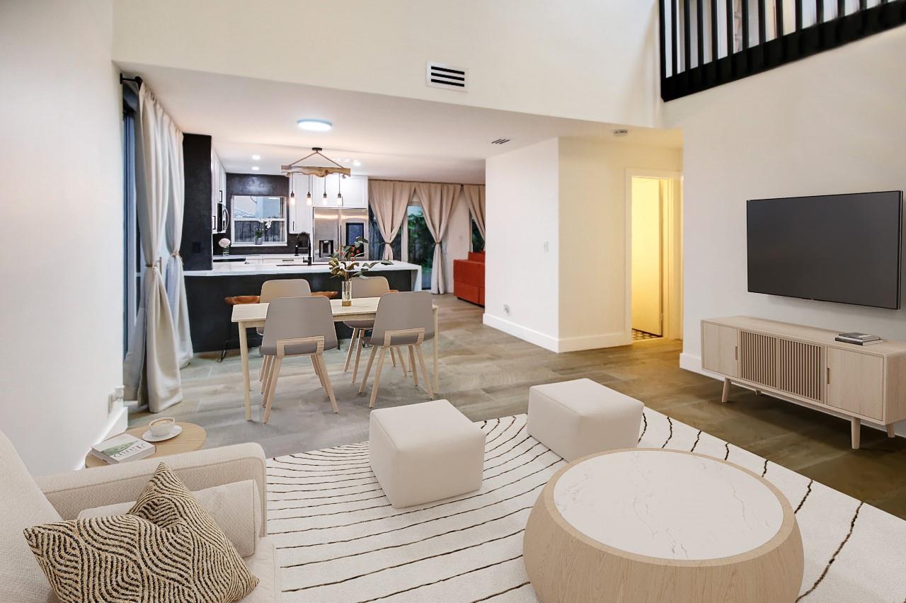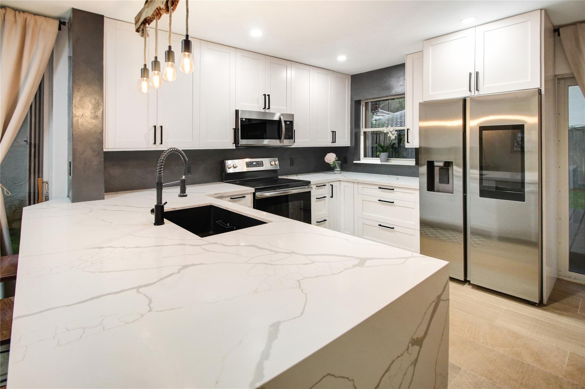 ABSOLUTELY STUNNING 3-bedroom, 2.5-bath home in the highly sough after community of Jacaranda featuring HUGE FENCED BACK YARD, tall ceilings & a beautifully remodeled kitchen w/ all-wood cabinetry, sleek STAINLESS STEEL APPLIANCES, & elegant QUARTZ COUNTERTOPS. The open-concept layout is enhanced by upgraded lighting fixtures, adding a modern touch to every room. The wood-like tile floors downstairs offer both style & durability. Laminate flooring upstairs provides elegance & comfort. Sliding Glass door in rear in IMPACT GLASS. Accordion shutters on every opening provide added security & peace of mind. GREAT SCHOOLS. HOA includes sprinklers and sprinkler repairs. The entire house was replumbed in 2019 (ALL polybutylene replaced) which is a HUGE UPGRADE! ROOF 2017. Community Pool included