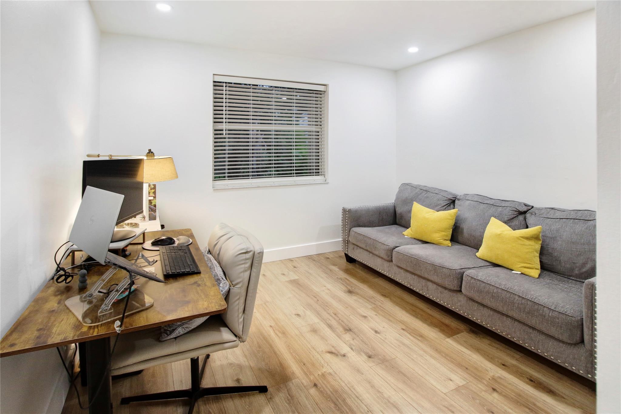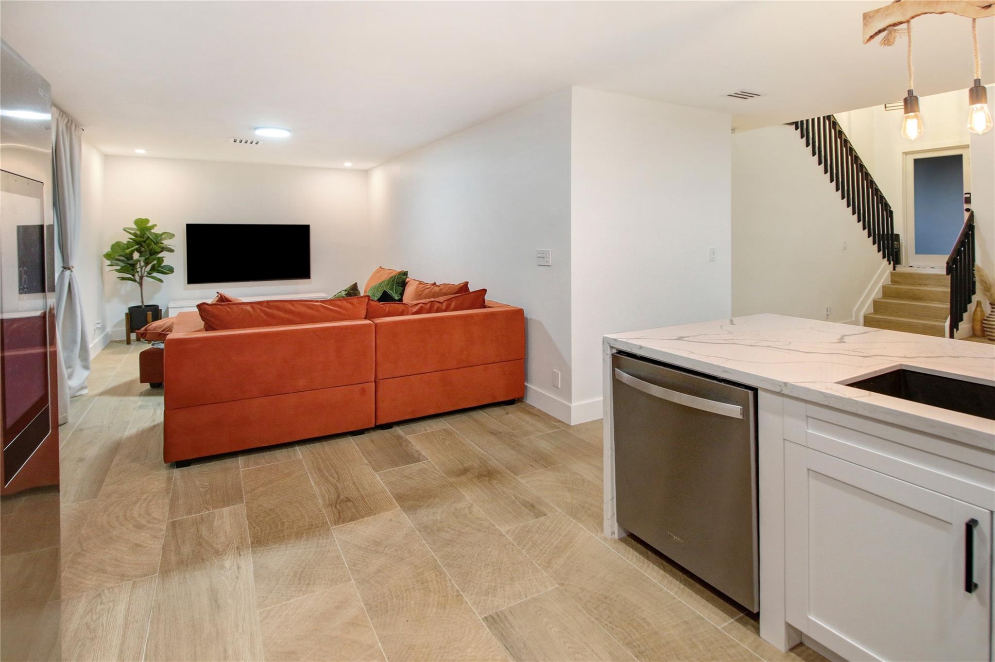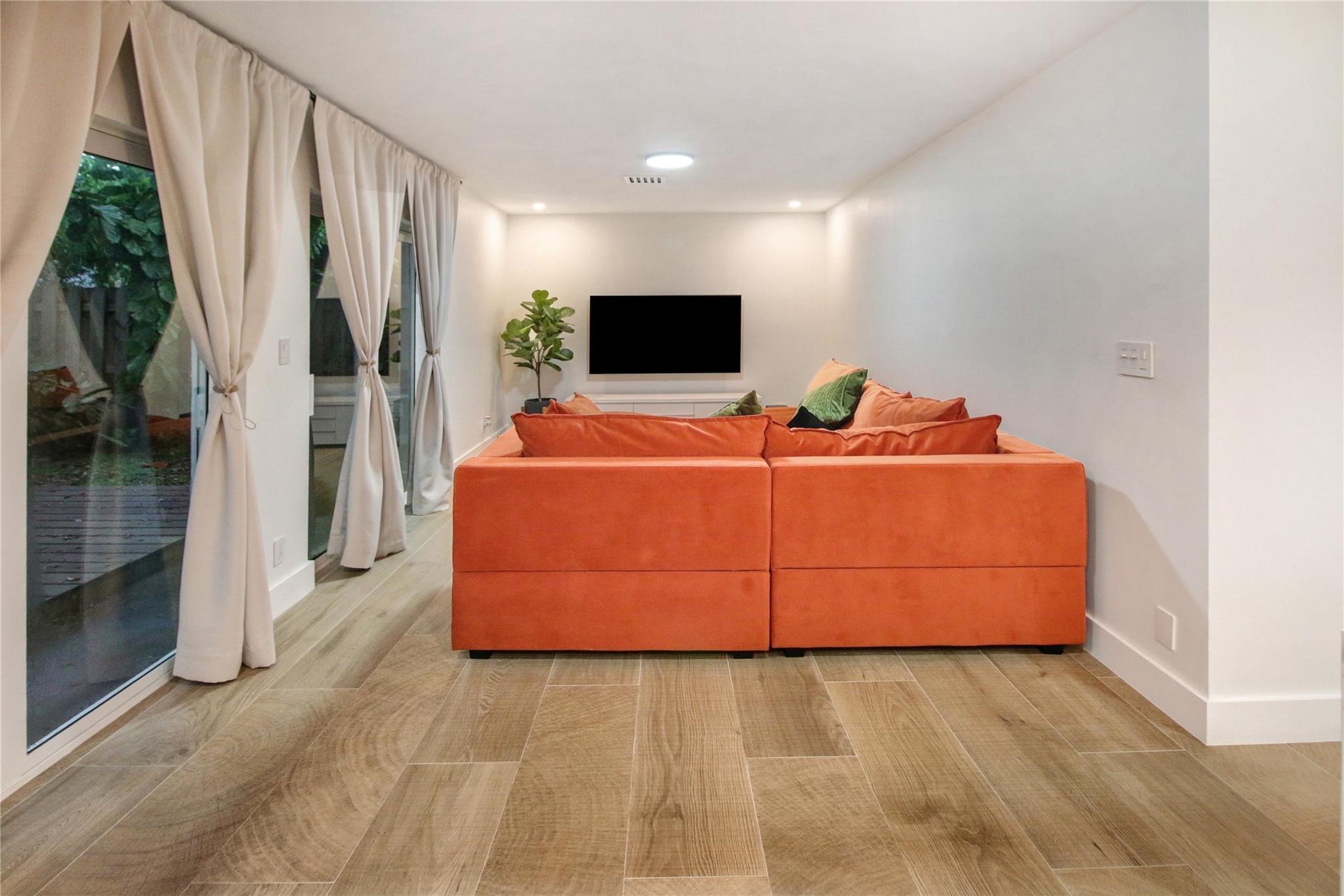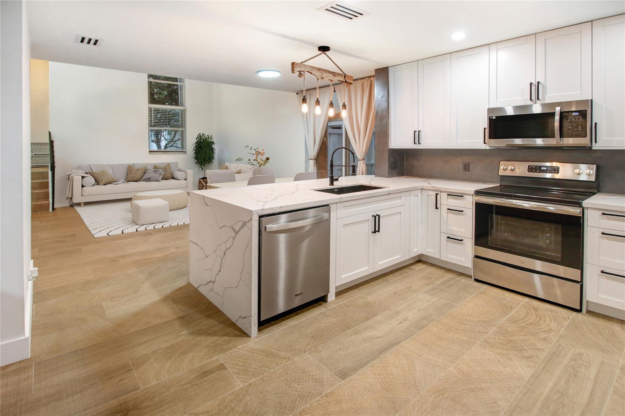 ABSOLUTELY STUNNING 3-bedroom, 2.5-bath home in the highly sough after community of Jacaranda featuring HUGE FENCED BACK YARD, tall ceilings & a beautifully remodeled kitchen w/ all-wood cabinetry, sleek STAINLESS STEEL APPLIANCES, & elegant QUARTZ COUNTERTOPS. The open-concept layout is enhanced by upgraded lighting fixtures, adding a modern touch to every room. The wood-like tile floors downstairs offer both style & durability. Laminate flooring upstairs provides elegance & comfort. Sliding Glass door in rear in IMPACT GLASS. Accordion shutters on every opening provide added security & peace of mind. GREAT SCHOOLS. HOA includes sprinklers and sprinkler repairs. The entire house was replumbed in 2019 (ALL polybutylene replaced) which is a HUGE UPGRADE! ROOF 2017. Community Pool included