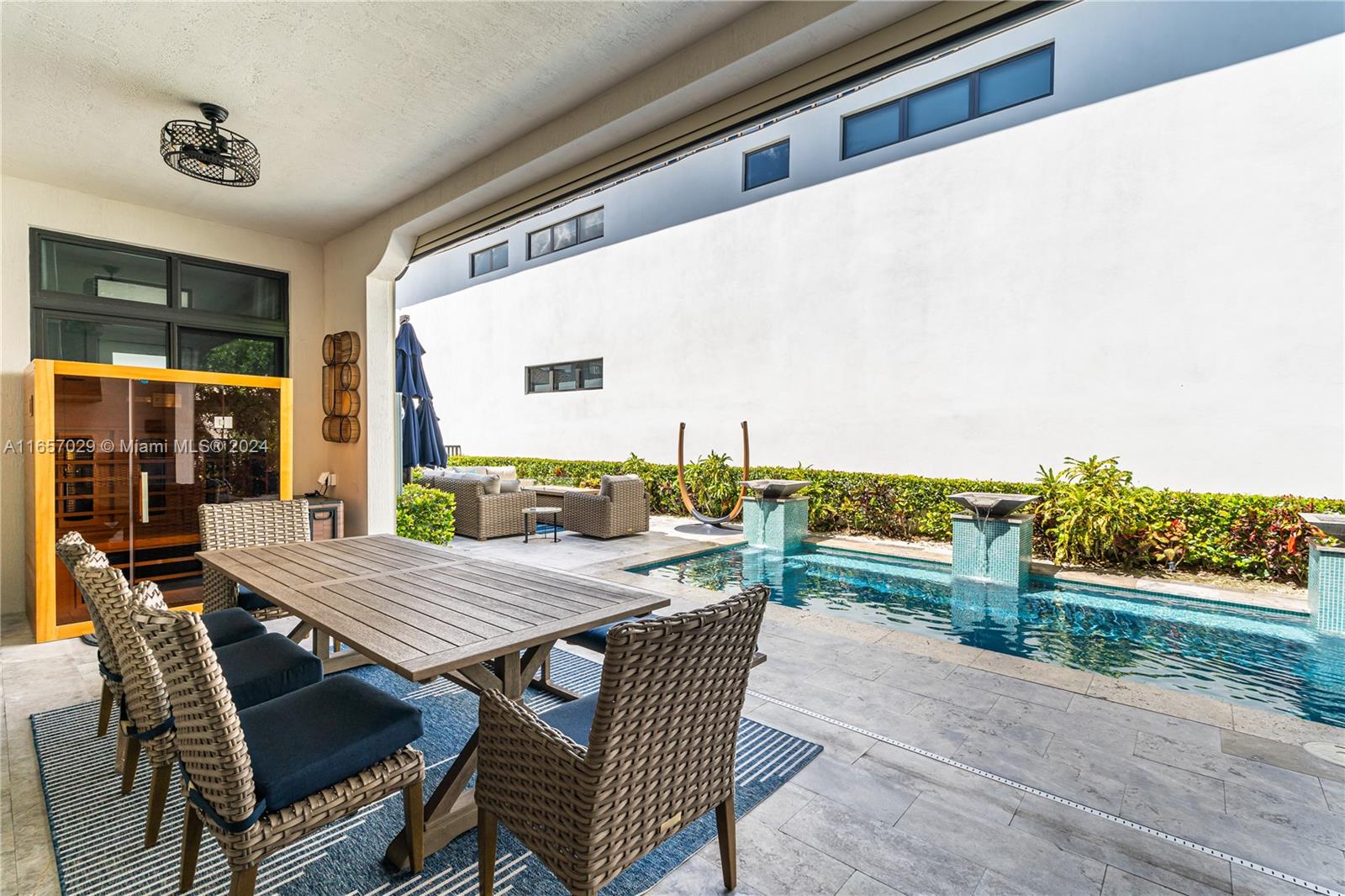 CONTEMPORARY HOME IN DORAL'S CANARIAS COMMUNITY, 2 STORY CAPRI B MODEL WITH SANTA BARBARA FACADE. EASY ACCESS TO DOWNTOWN DORAL FOR SHOPPING & DINING. , PRIVATE SCREENED PATIO WITH SUMMER KITCHEN, PAVED PATIO AREA, 2 CAR GARAGE WITH FINISH EPOXY FLOORS. ELEGANT WOOD FLOORS THROUG-OUT, CHEF'S KITCHEN WITH WOLF & SUB ZERO APPLIANCES , EUROPEAN STYLE CABINETS, PRIMARY BEDROOM WITH SITTING AREA, HIGH VOLUME CEILINGS, HUGE WALK-IN CLOSET, LAUNDRY ROOM. . CENTRALLY LOCATED, ONLY 1 BLOCK TO THE BEAUTIFUL CLUBHOUSE WITH STATE OF THE ART GYM, RESORT STYLE POOL, INDOOR BASKETBALL COURT &.MORE. URBAN LIVING WITH HOME TOWN FEEL. CONVENIENTLY LOCATED WITH EASY ACCESS TO EXPRESSWAYS, A RATED SCHOOLS, SUPERMARKETS, AND AIRPORT. SAUNA NOT INCLUDED.