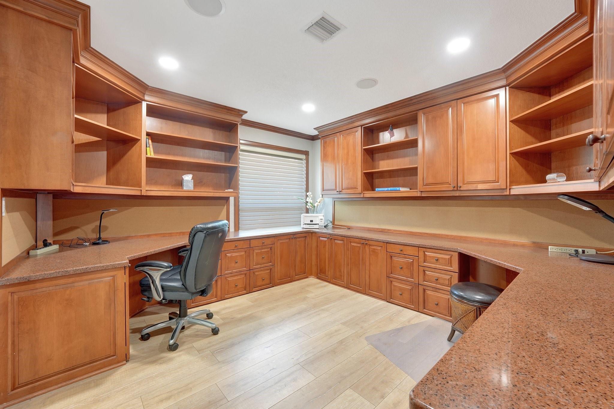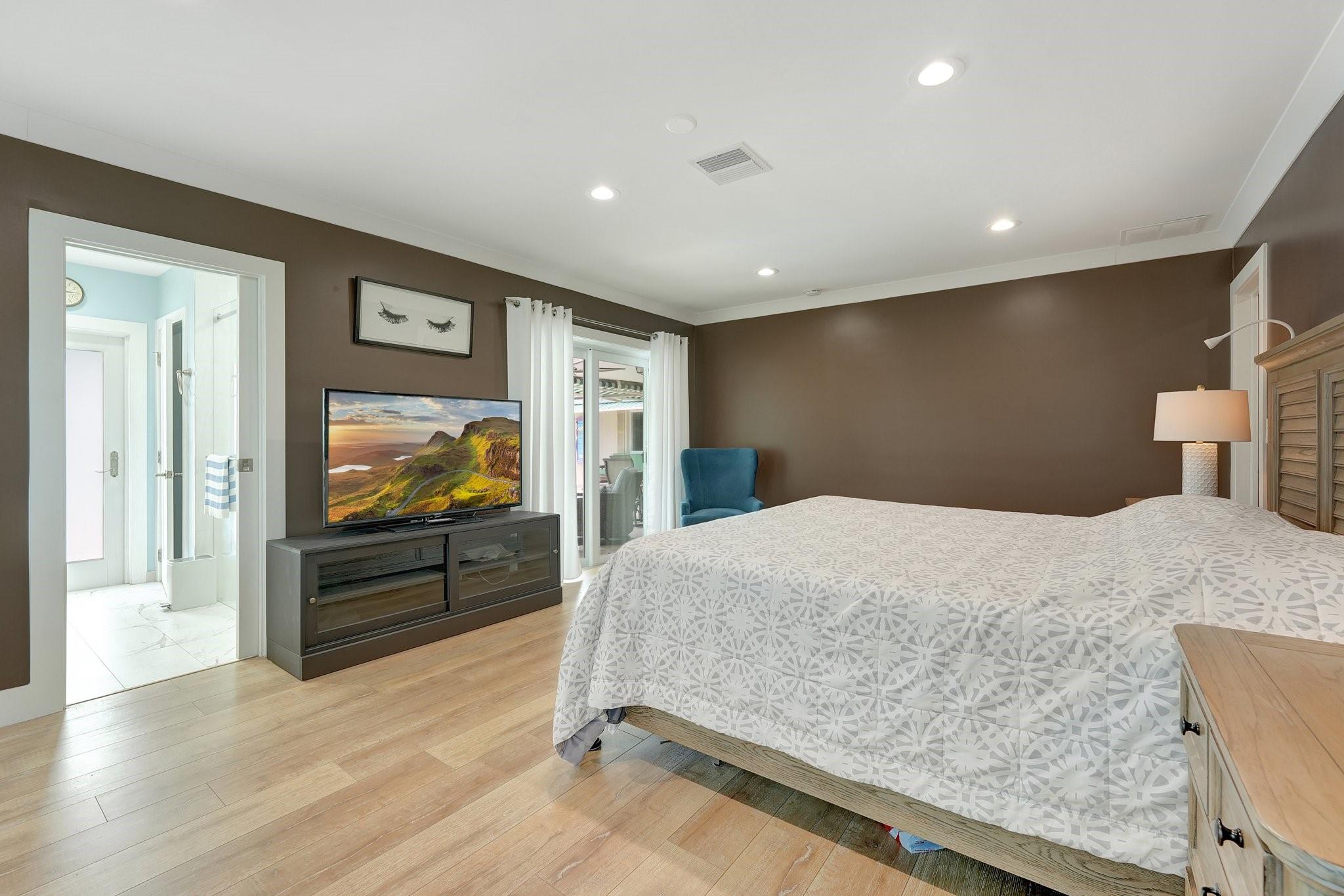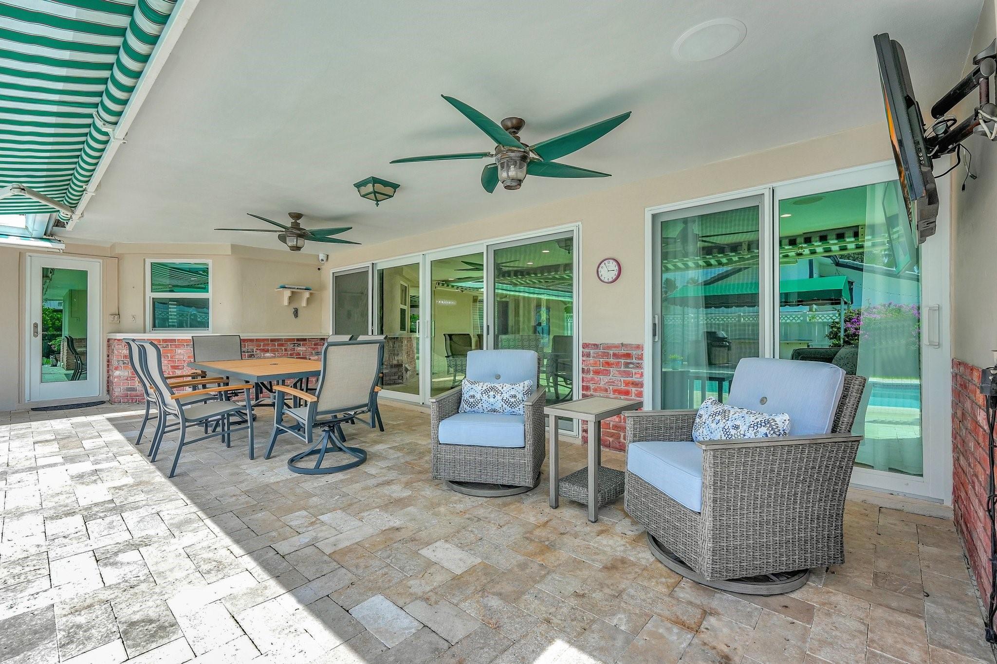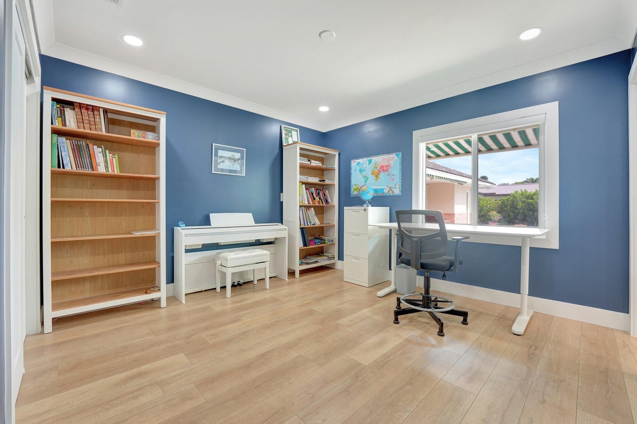 This expansive property has everything you need and more! Four bedrooms plus office with four ensuite baths. Interior upgrades encompass new modern kitchen, along with three new guest baths, and new tile floors in the kitchen and family room. Kitchen and breakfast room adjoin family room, great for entertaining. New engineered wood floors in the bedrooms, giving a cozy and warm feeling. The property boasts high-quality impact windows and doors and electric blinds in living area. New marble paver patio around the pool and new saltwater chlorination system. Retractable awnings over patio. A durable metal roof; styled like wood shingles & new PVC plumbing under house. Situated on extra large lot with potential for motor home or boat parking and a side yard. Steps to park and playground.