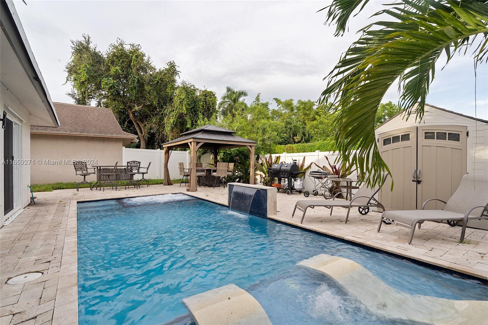 Amazing 3-bedroom, 2-bathroom home in the highly sought-after Cooper City. This beautifully maintained property sits on a cul-de-sac and features a large backyard entertaining space. Additionally, there is a fully upgraded pool with many features, newer AC unit, newer roof, newer stainless steel appliances, washer/dryer, and water heater. New Hurricane impact windows throughout the property for added security, noise protection and insulation. A 1-car garage that can be easily converted into a bonus space. The kitchen is upgraded, and flows into a spacious living area. The backyard is set on travertine pavers that surround a beautiful pool setup. There's also a huge Gazebo that is perfect for hosting large gatherings. Located next to amazing Schools! This home is a must see, don't miss out!