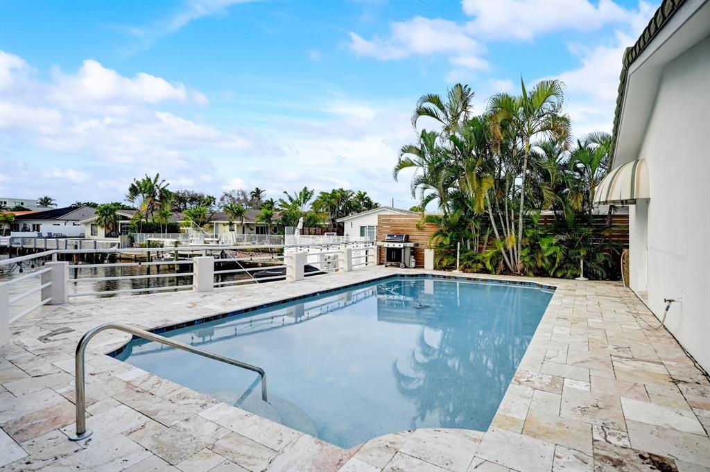 Located in the sought-after neighborhood of Bermuda Riviera. Modern, renovated 3/2 home ready for its new owner! Arguably the best positioned lot for unobstructed waterway views down the canal to the Intracoastal. 47' dock. No fixed bridges. Beautiful two-toned kitchen with high end European cabinetry and top of the line appliances. Matching bar with Xlarge wine fridge. Porcelain time floors throughout. Split floor plan. Master bedroom features a walk in closet and sliders out to the deck. Spacious patio w/ Travertine pavers, outdoor shower & large pool. 2car garage. 2018 roof. Impact windows. 5 min walk to beach & restaurants. Enjoy watching the boats go by from your kitchen window, or amazing sunsets on the pool deck. Also great lot to build 3 story new construction for amazing views!
