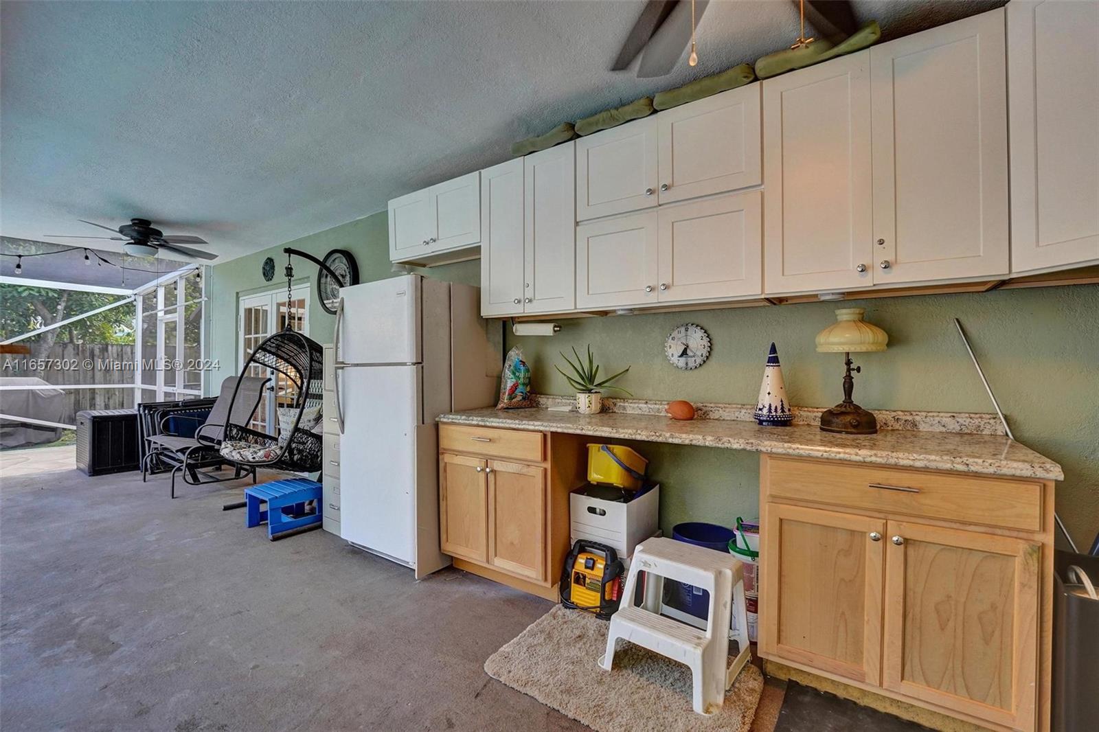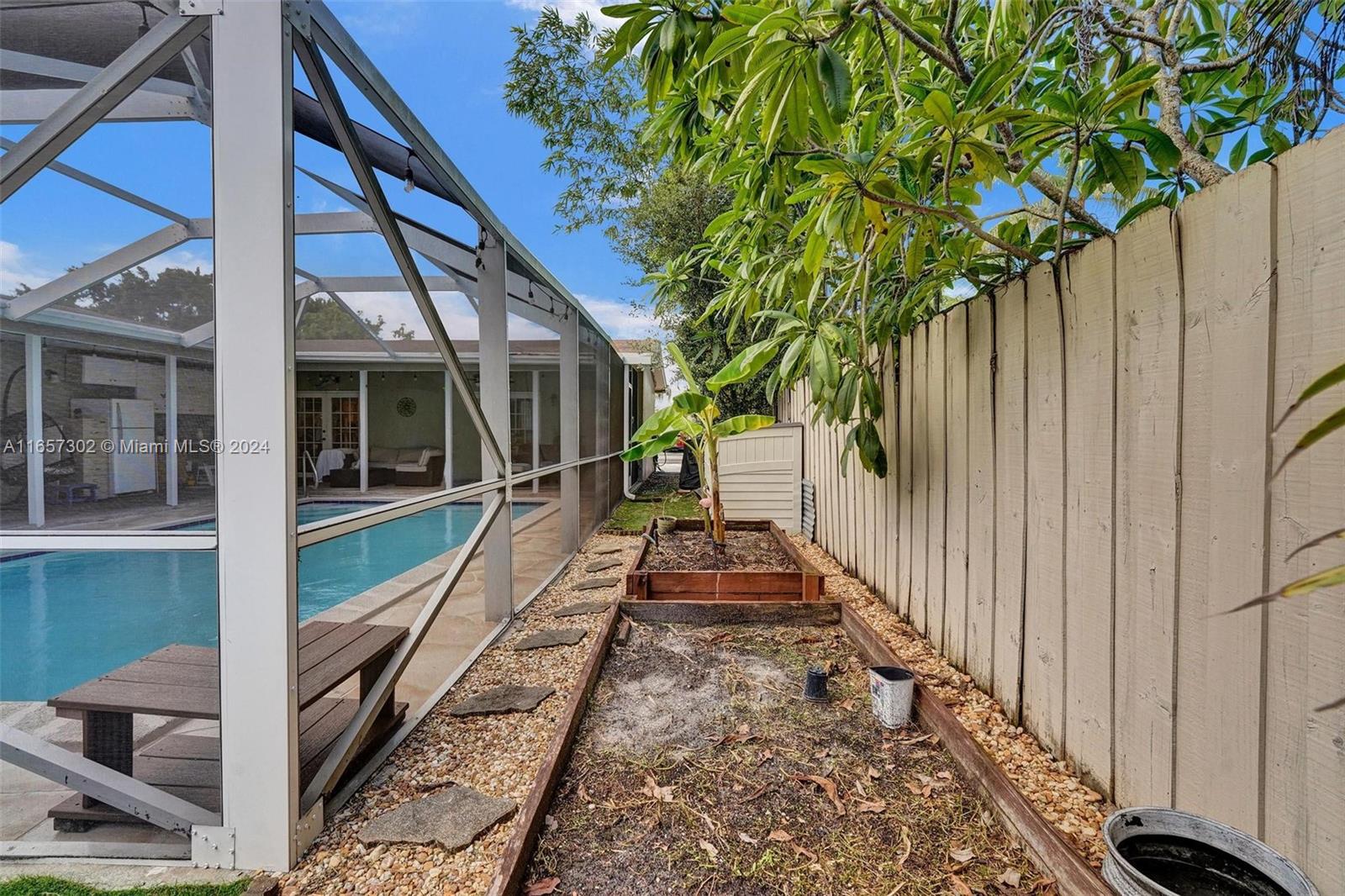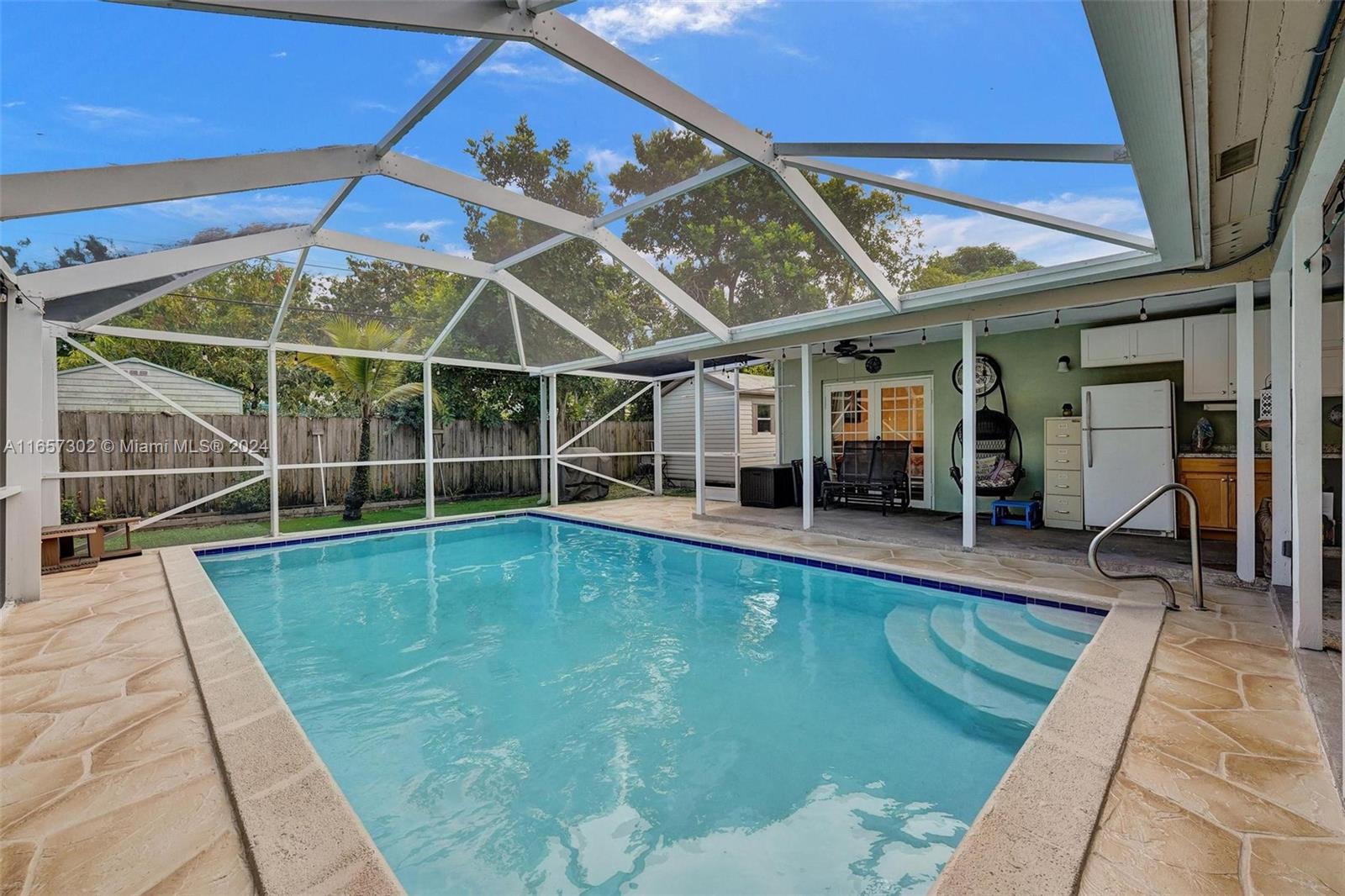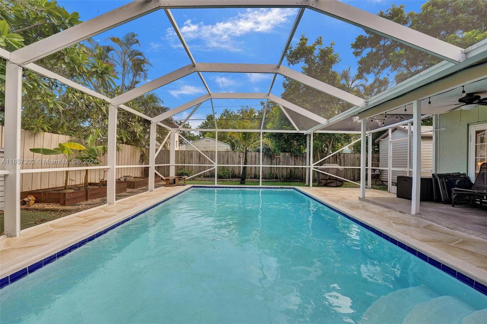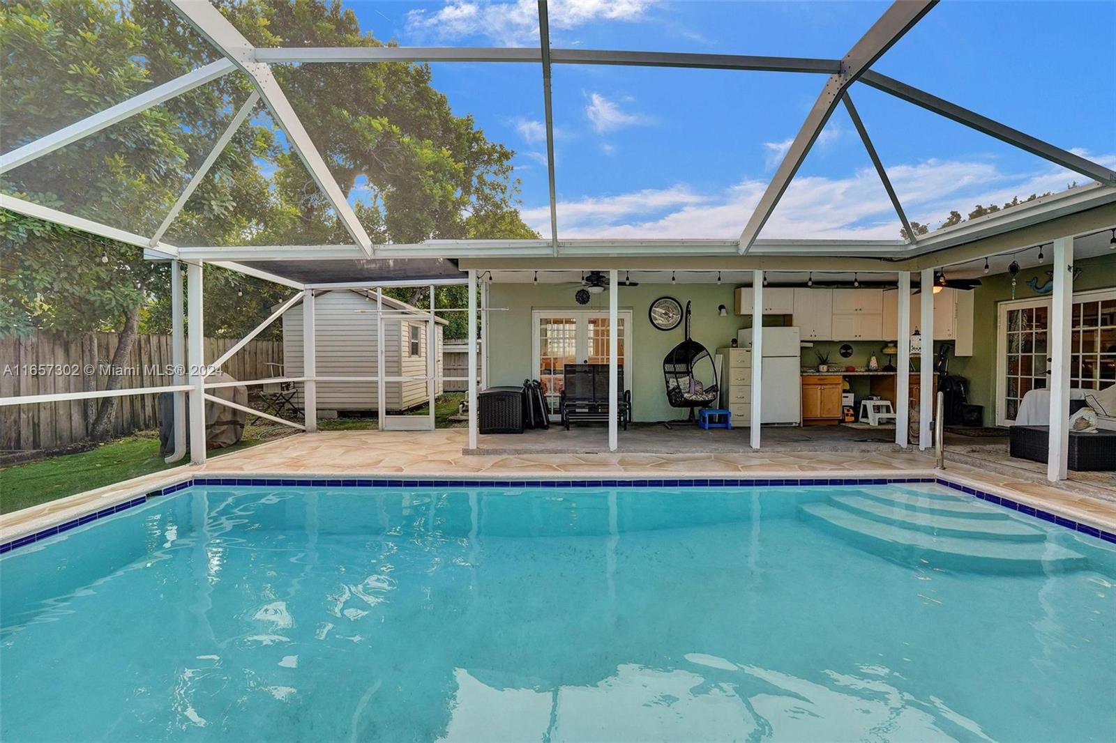 Discover this charming Hollywood home, featuring a versatile 8 x 12 shed with electricity and a beautifully remodeled pool area, complemented by a recently resurfaced driveway. Recent upgrades include fresh paint throughout, salt water pool, hurricane shutters, air conditioner (2017), roof (2019), main bathroom remodel (2021), and a new back fence (2022). Enjoy the lush backyard with avocado and banana trees, along with modern touches like new lighting and soft-closing cupboards and drawers. Kitchen island has power with updated lighting and ceiling fans. Lighting in spare bathroom has bluetooth. This home perfectly blends comfort and style—make it yours today!