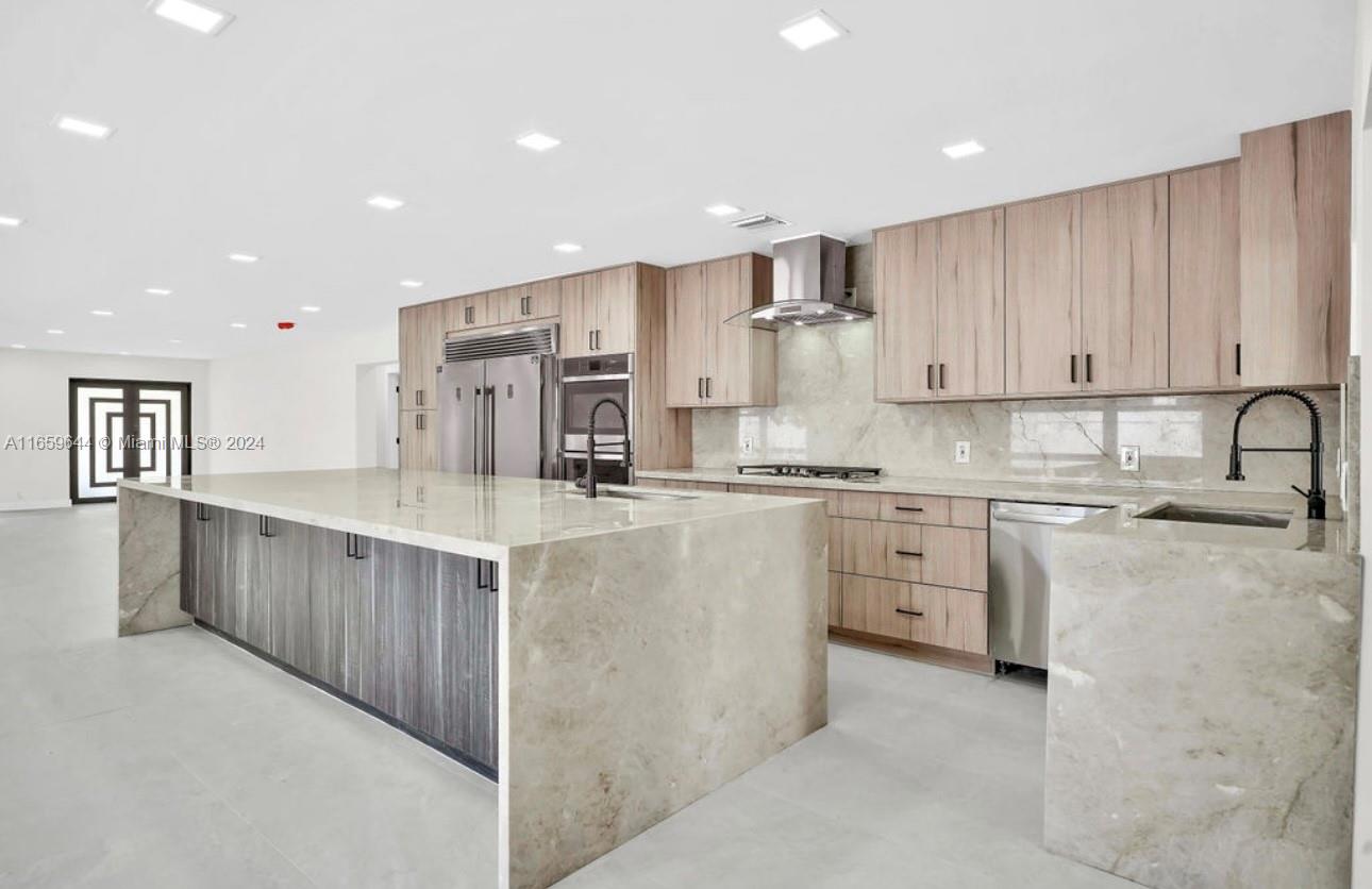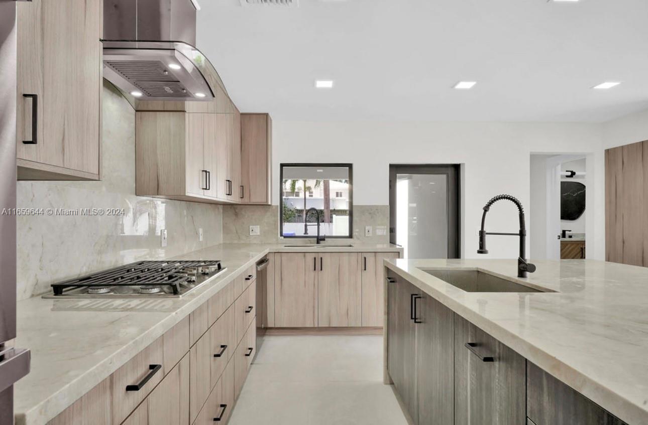 Welcome to 1321 Van Buren St! Step inside this stunning luxury residence, completely transformed with meticulous detail and high end finishings. In the heart of Hollywood Lakes, centrally located & close to all houses of worship. Brand new roof, impact windows & doors, landscaping, outdoor lighting, concrete driveway, & fence. A gourmet kitchen with a large island, Taj Mahal countertop, premium appliances, two sinks, double oven and a gas stovetop-a true chefs kitchen dream. Ample & natural light, this living space is perfect for a family & entertaining. All rooms are accompanied by custom closets, limewash walls, beautiful bathroom tiles, fluted bathtub, travertine sinks, opulent vanities and fixtures. Fully renovated with permits, dont miss out on the opportunity to make this home yours!