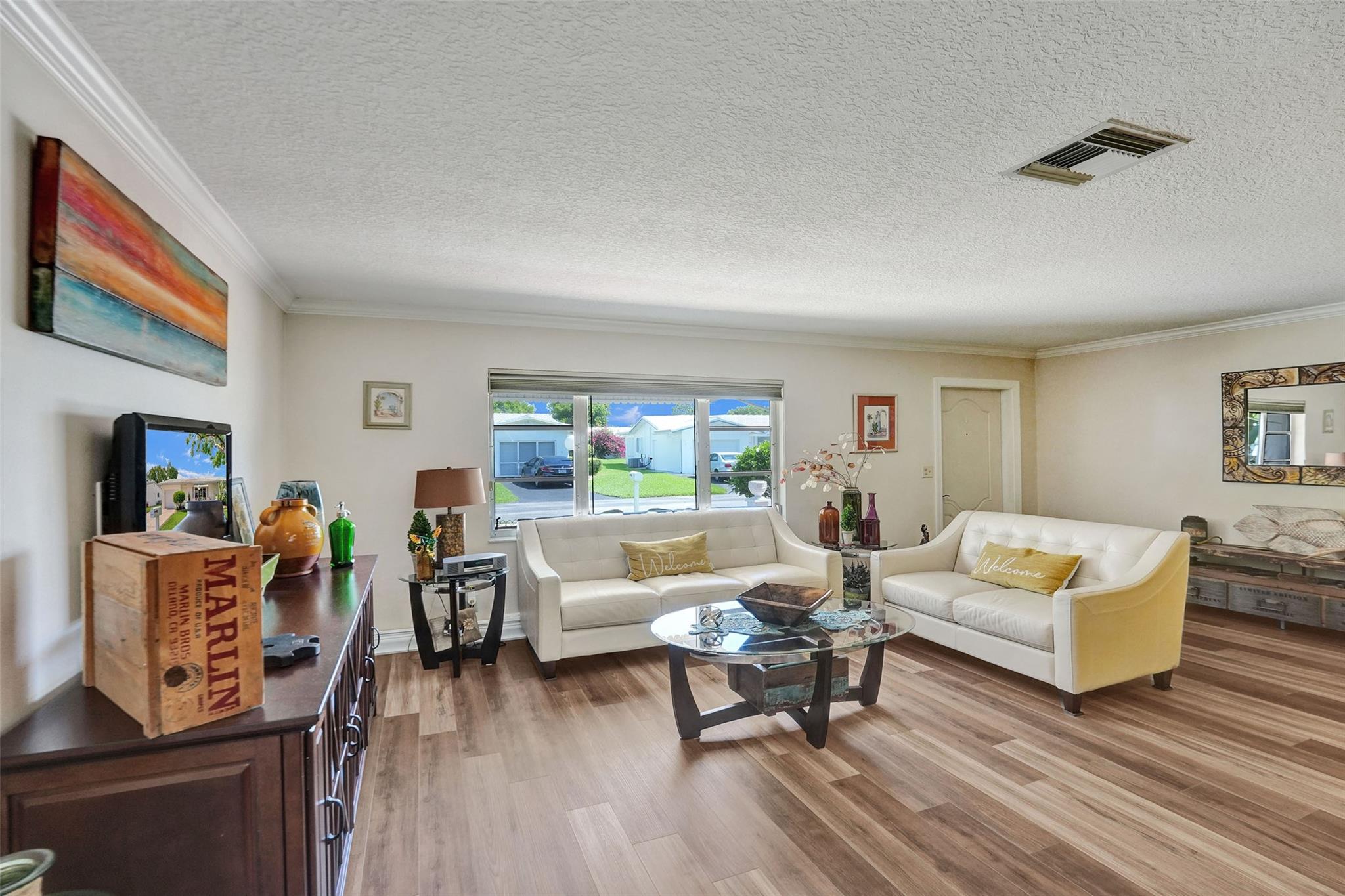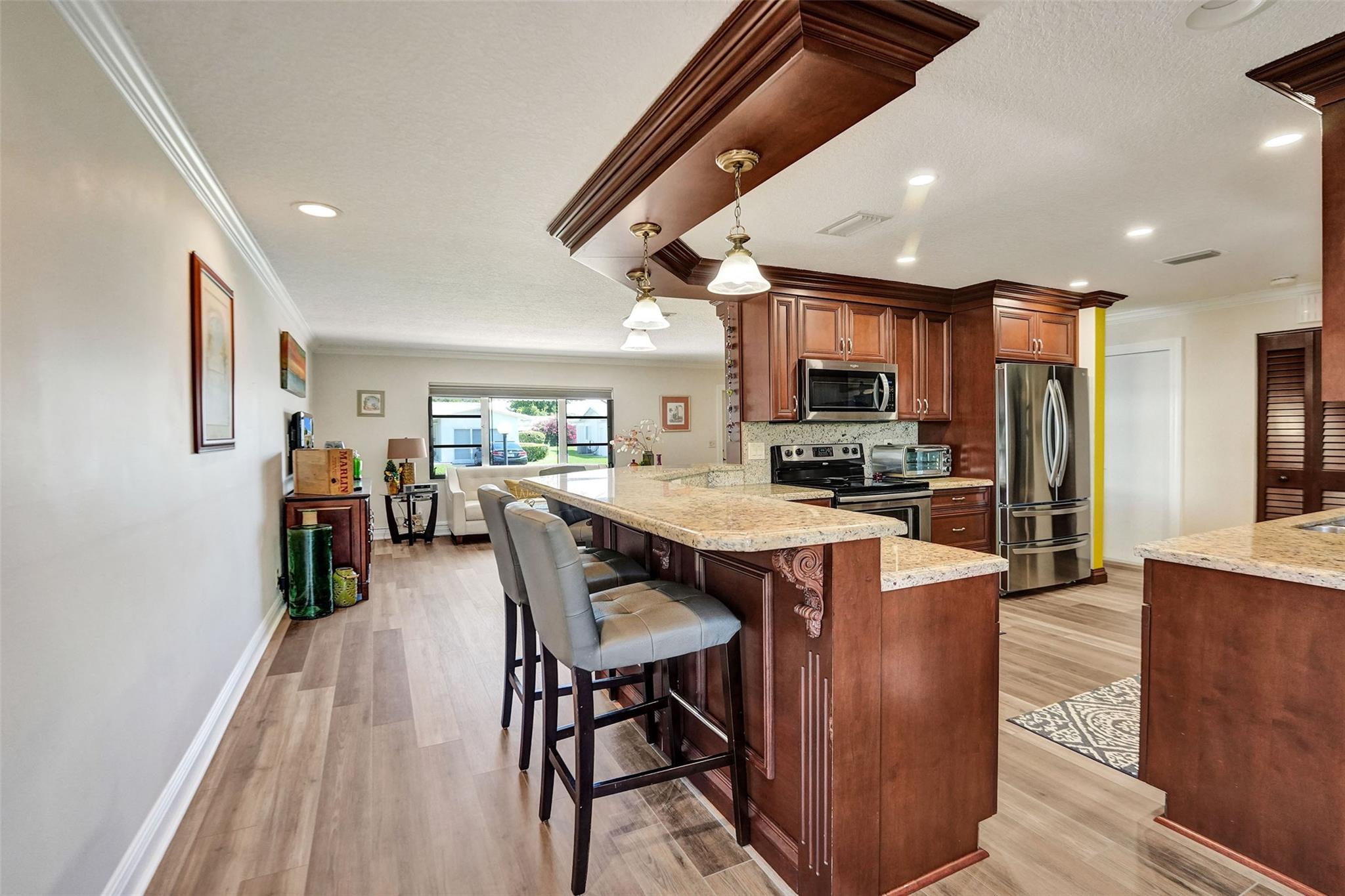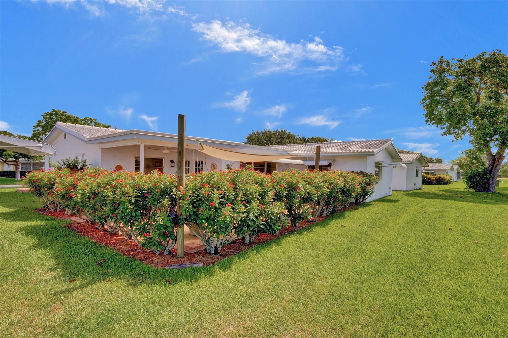 5 STAR GEM*MOVE IN READY* SPACIOUS 2 BEDROOM/2 BATH, 1 CAR GARAGE**UPDATED KITCHEN WITH STAINLESS STEEL APPLIANCES & UPDATED BATHS*DOUBLE MASTER BEDROOMS EACH WITH A FULL EN-SUITE BATHS* WATERPROOF LAMINATE THROUGHOUT* CUSTOM BUILT IN CABINETS IN FAMILY ROOM & DINING AREA* CROWN MOULDING* KNOCK DOWN CEILINGS*DOUBLE WIDE STAMPED CONCRETE DRIVEWAY**ROOF 2021*AC 2013**55+ COMMUNITY* HOA PROVIDES BLUE STREAM FIBER OPTIC HD TV & INTERNET & A COURTESY BUS * FITNESS CENTER * LAWN SERVICE * ROOF REPAIRS & REPLACEMENT, EXTERIOR PAINTING**CLUBHOUSE AMENITIES INCLUDE 2 POOLS, 3 TENNIS COURTS , SHUFFLE BOARD,BILLARDS,THEATRE*CARD ROOMS* ACTIVE ADULT LIVING*