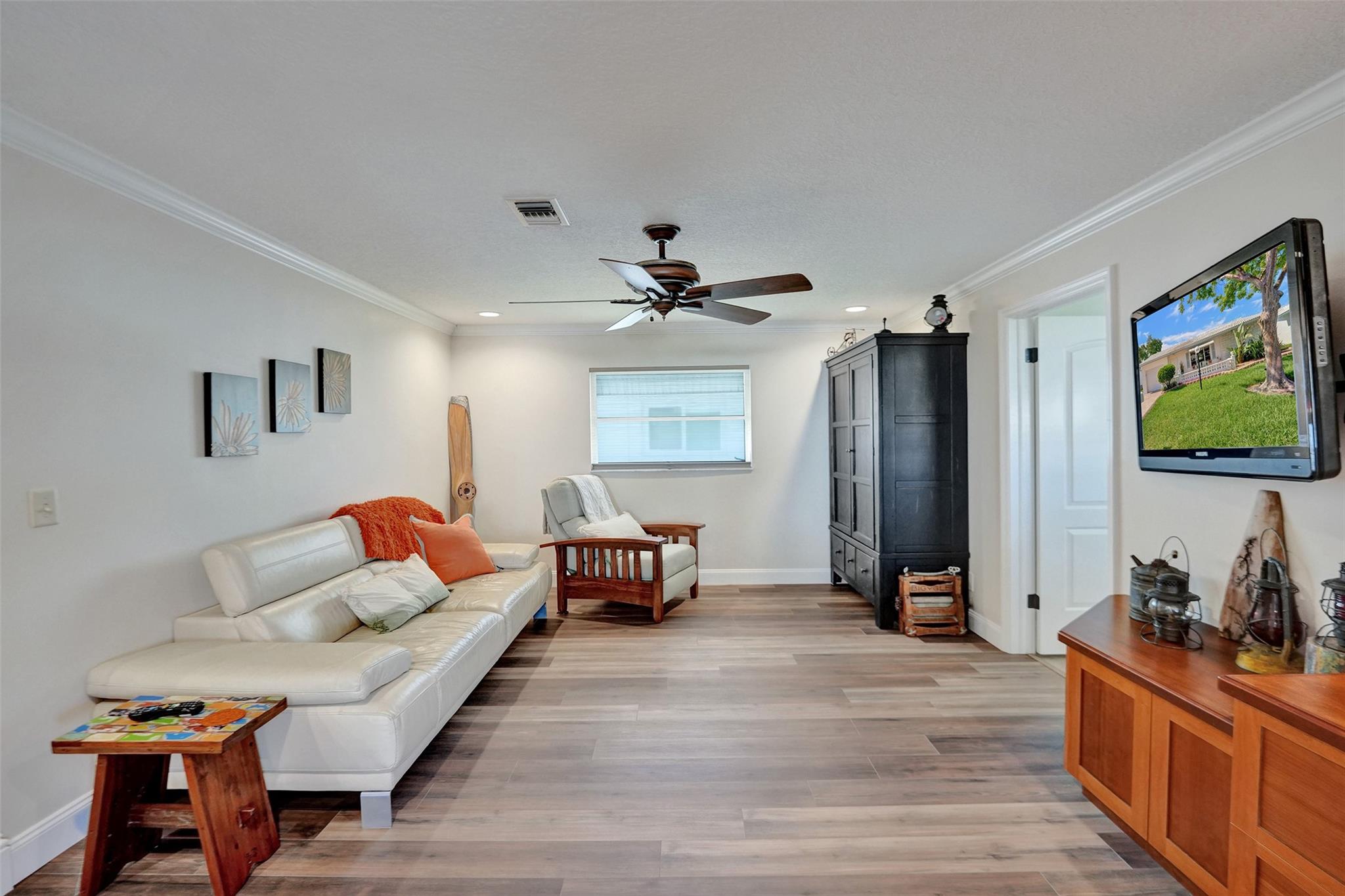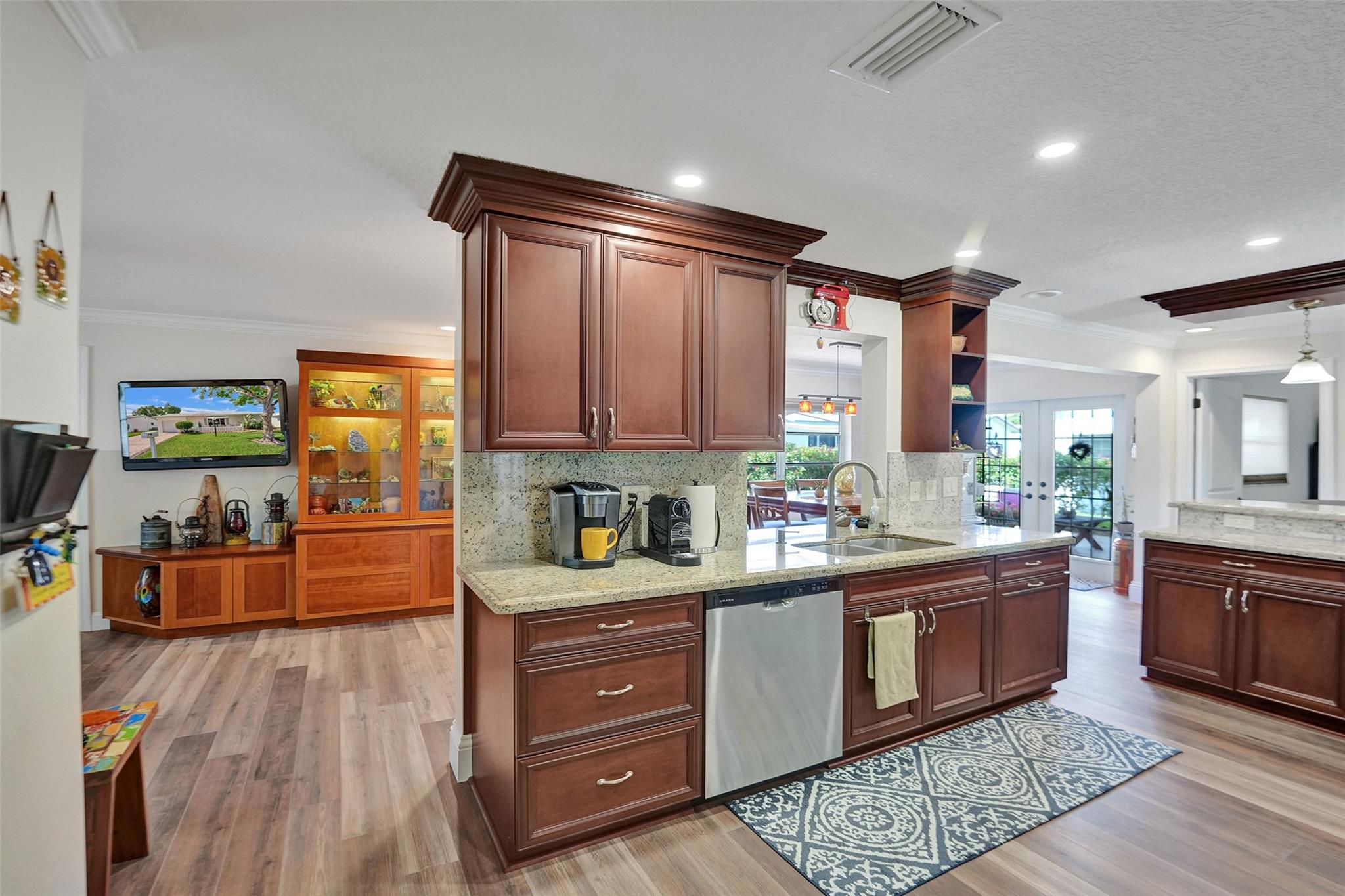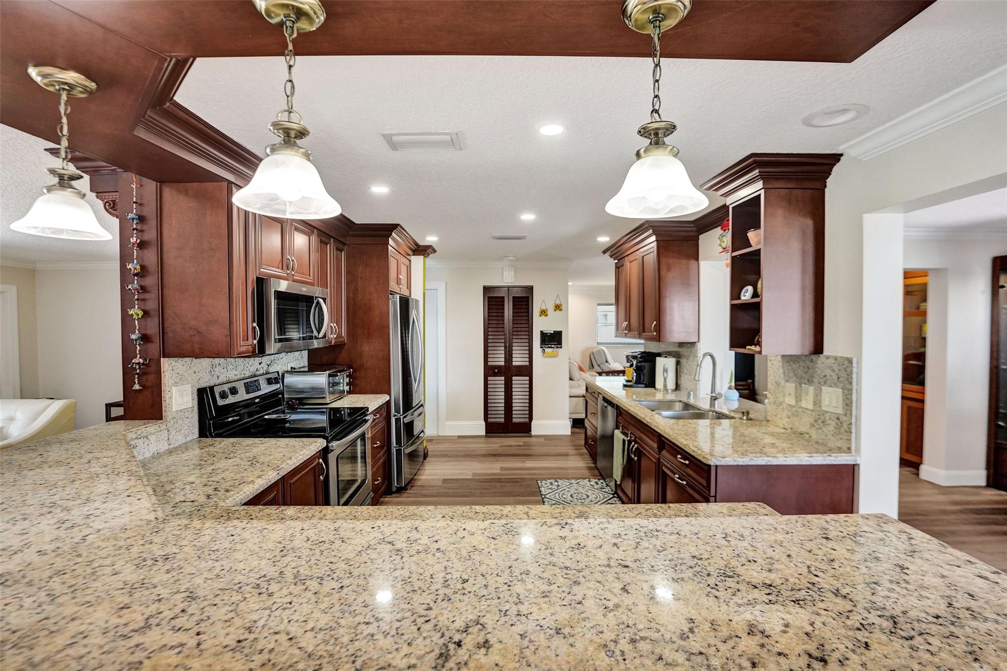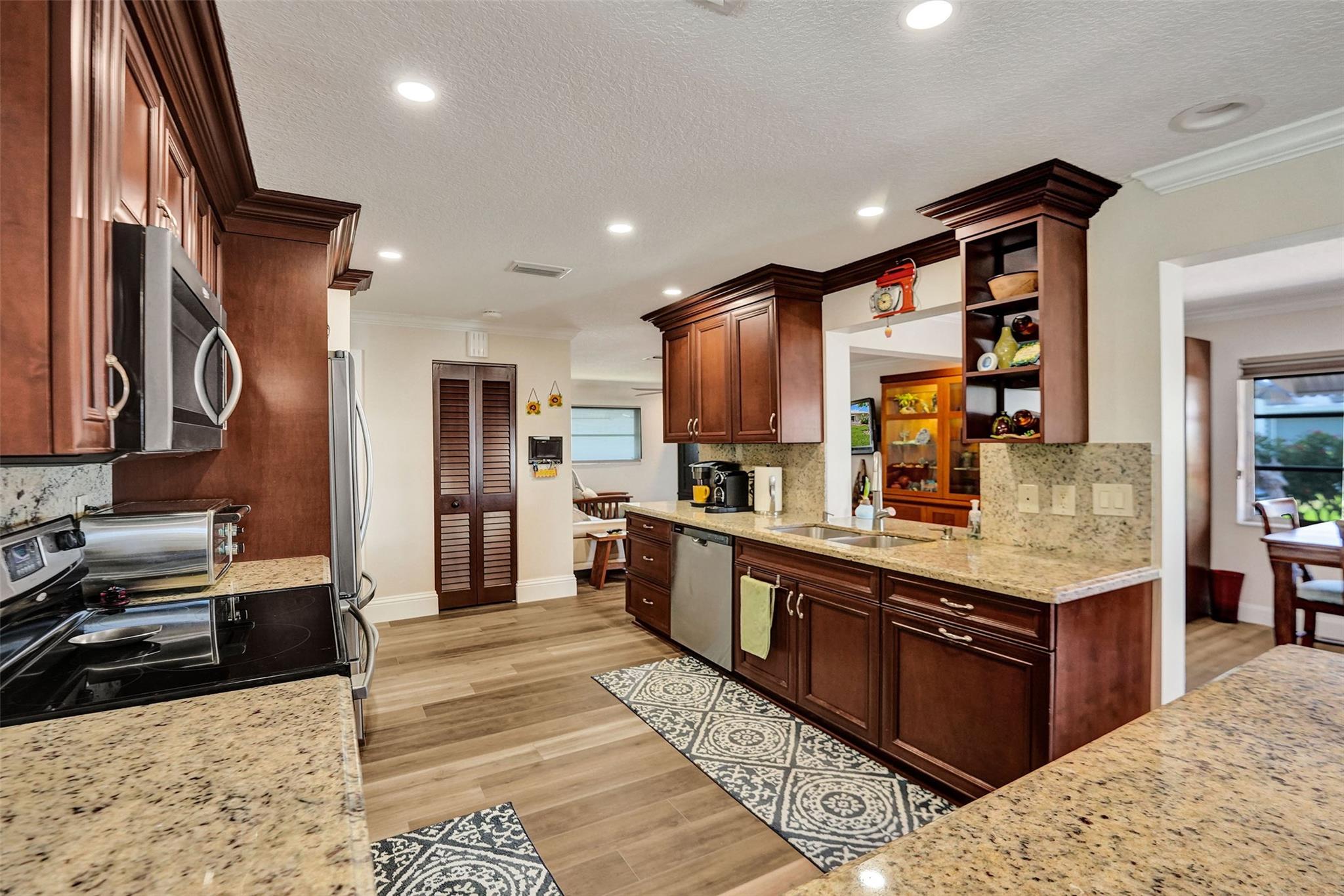 5 STAR GEM*MOVE IN READY* SPACIOUS 2 BEDROOM/2 BATH, 1 CAR GARAGE**UPDATED KITCHEN WITH STAINLESS STEEL APPLIANCES & UPDATED BATHS*DOUBLE MASTER BEDROOMS EACH WITH A FULL EN-SUITE BATHS* WATERPROOF LAMINATE THROUGHOUT* CUSTOM BUILT IN CABINETS IN FAMILY ROOM & DINING AREA* CROWN MOULDING* KNOCK DOWN CEILINGS*DOUBLE WIDE STAMPED CONCRETE DRIVEWAY**ROOF 2021*AC 2013**55+ COMMUNITY* HOA PROVIDES BLUE STREAM FIBER OPTIC HD TV & INTERNET & A COURTESY BUS * FITNESS CENTER * LAWN SERVICE * ROOF REPAIRS & REPLACEMENT, EXTERIOR PAINTING**CLUBHOUSE AMENITIES INCLUDE 2 POOLS, 3 TENNIS COURTS , SHUFFLE BOARD,BILLARDS,THEATRE*CARD ROOMS* ACTIVE ADULT LIVING*