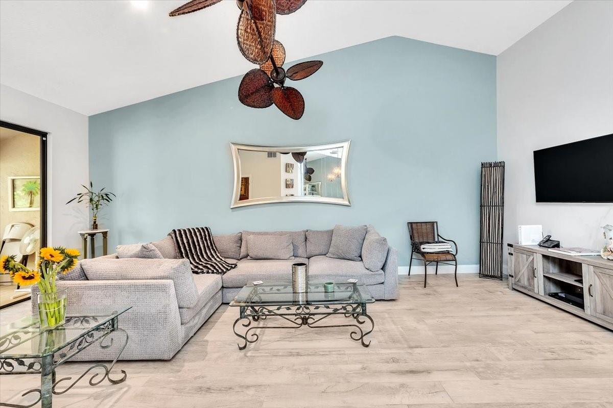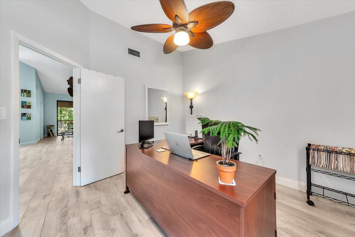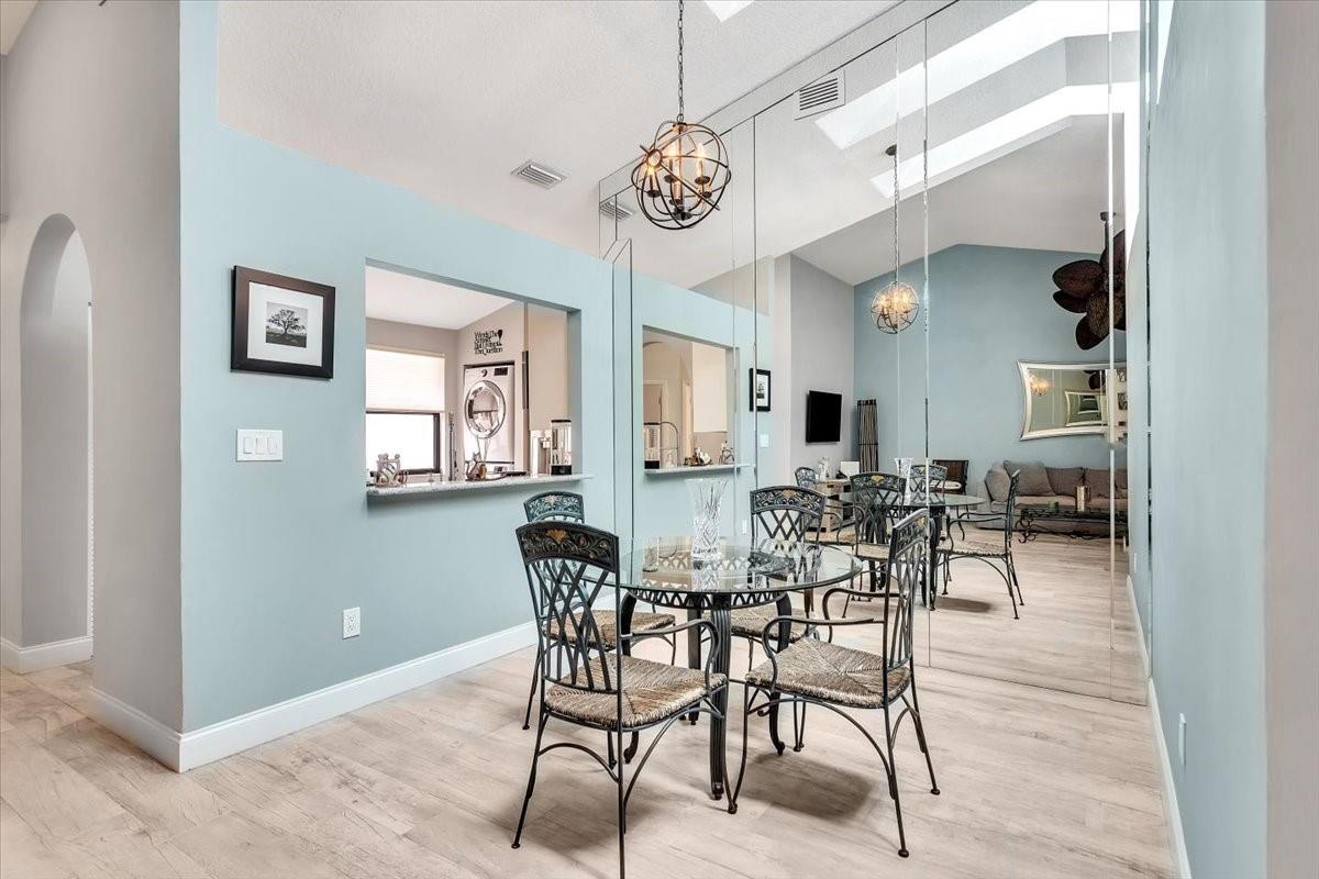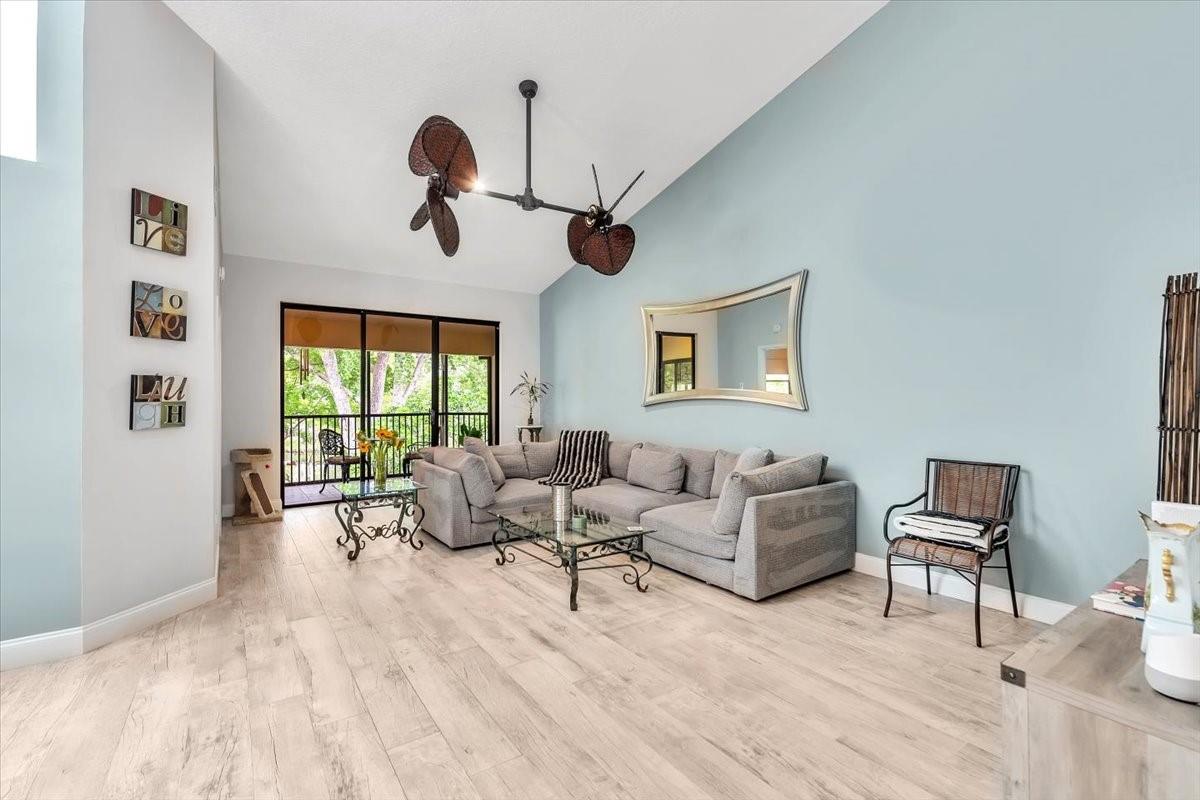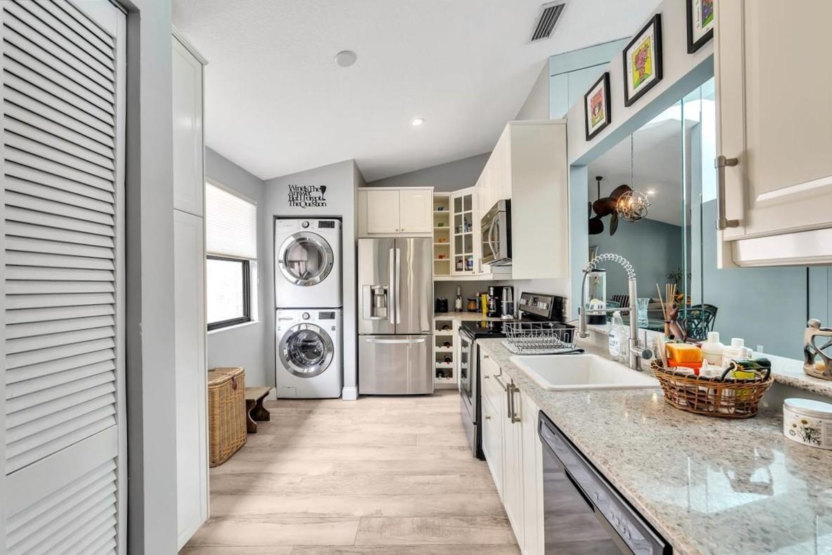Desirable 2/2 WATERFRONT townhome-condo in Chatham Towne at Jacaranda. Second floor unit with private first floor entry and attached garage. Open floor plan illuminated by skylights and vaulted ceilings for plenty of natural light. Upgraded kitchen with granite counters and raised panel cabinets. Pull-out pantry drawers. Wood look porcelain tile in living area and guest bed. Ceramic tile in master. Split bedrooms. Spacious primary with closet organizers. Hunter Douglas blinds. Full size front load w/d. New HVAC system and attic insulation. Screened balcony. Coveted lakefront unit has no rear neighbors. Central Park tree-lined streets with convenient access to I-595.