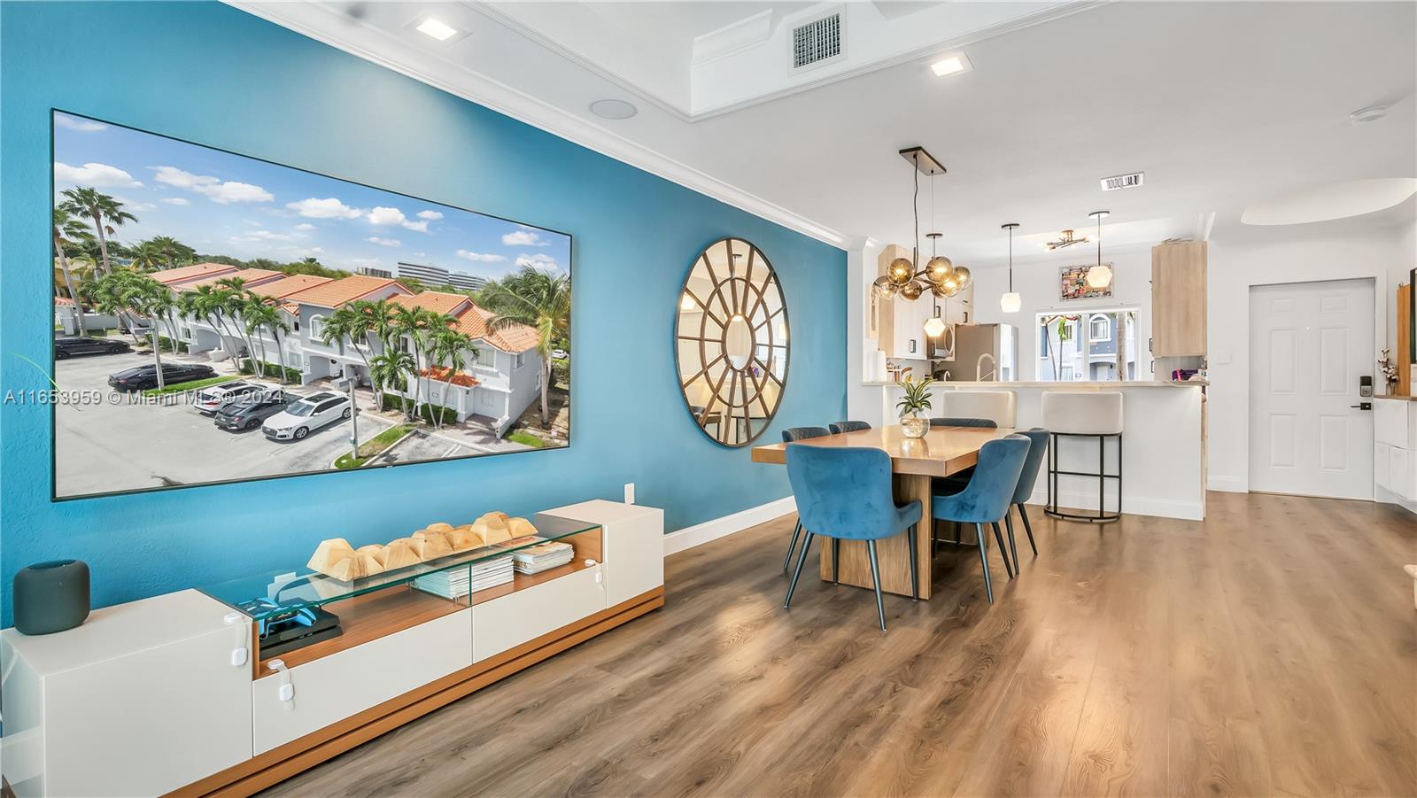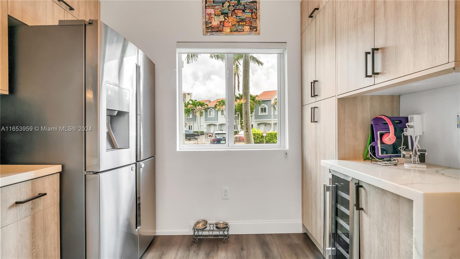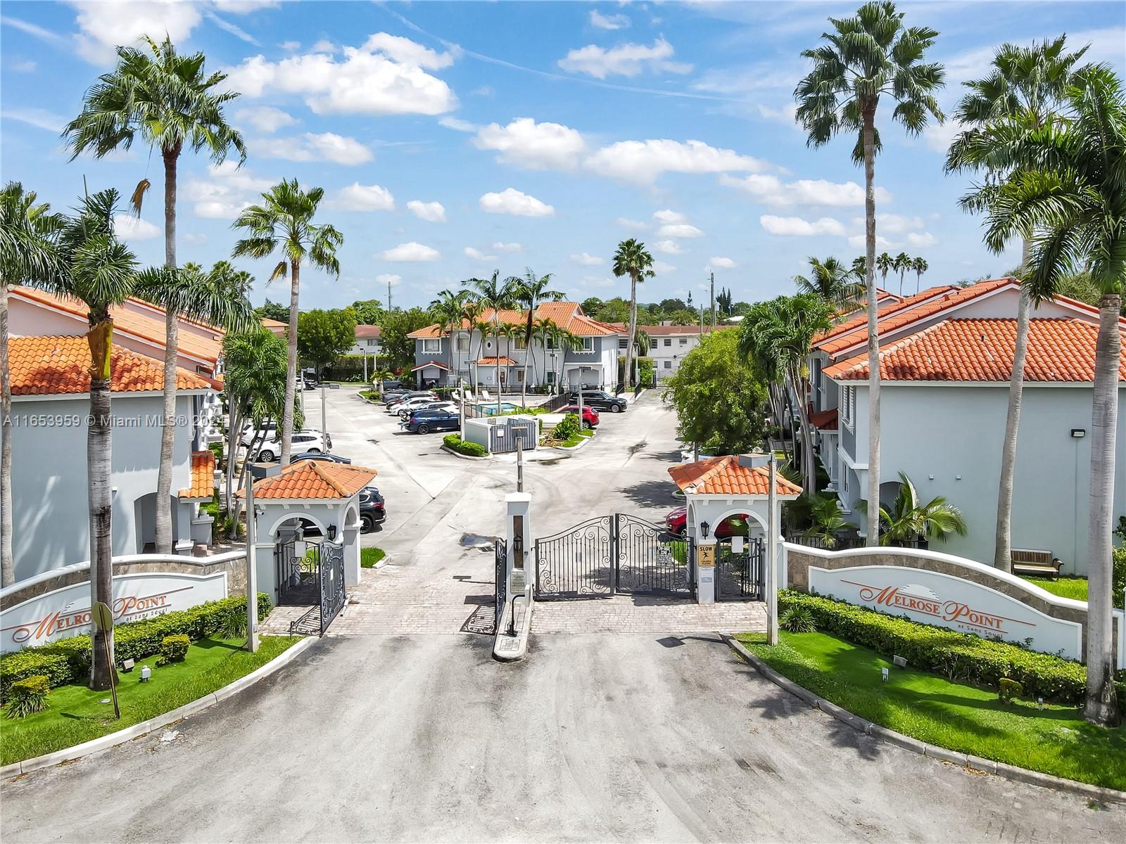 Stunning 3-bedroom, two full bathrooms, and half bath downstairs, with two assigned parking spaces, all impact windows, and sliding doors. Perfect for both comfortable living and entertaining with high ceilings. An open-concept design that seamlessly connects the living room, dining area, kitchen, stainless appliances, and marble countertops. Luxurious three bedrooms, with a master suite with a private bath with a huge master closet, two full bathrooms, and one half bath downstairs, with contemporary fixtures and an outdoor oasis patio. The private backyard offers the perfect relaxation space and outdoor gatherings. A gated community is located close to Whole Foods, Ross, Aldi, Michaels, etc., within walking distance to shops, dining, entertainment, and a tennis center.