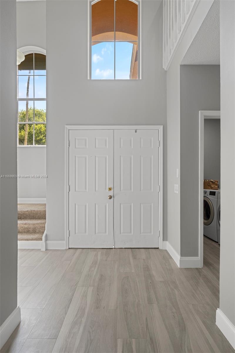This beautiful large spacious home features 5 bedroom, 3.5 bath, 2 car garage on waterfront located in The Lakes Community. New Roof 8/2024 & Hurricane Impacted Windows 8/2024. High ceilings, updated kitchen & bathrooms, new tile flooring & carpet throughout, in-ground jacuzzi. Master bedroom & bath are on the first floor with separate tub & shower, with access to patio. Upstairs are the remaining 4 bedrooms & 2 jack & jill bathrooms. Great A-rated school districts , Community Pool, Playground and Soccer Field, Play Areas, Easy Access to Parks, Fabulous Restaurants, Terrific Shopping. Close to major highways and Cleveland Clinic.