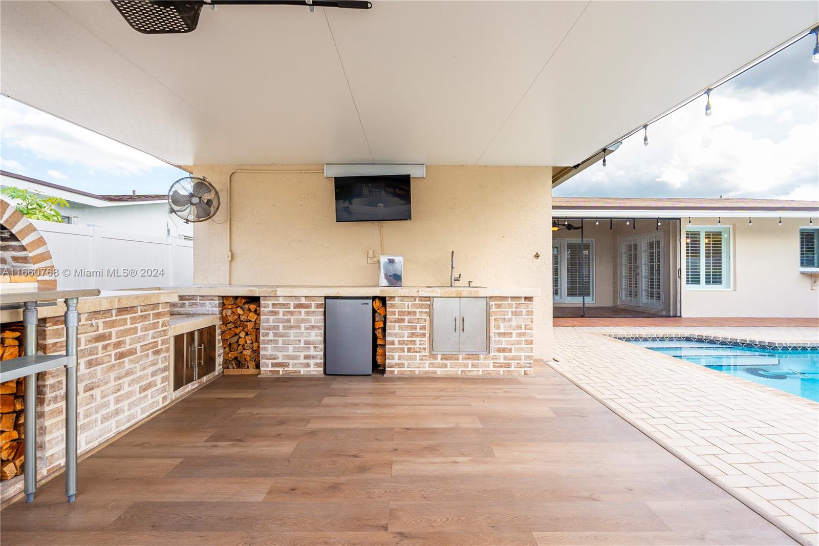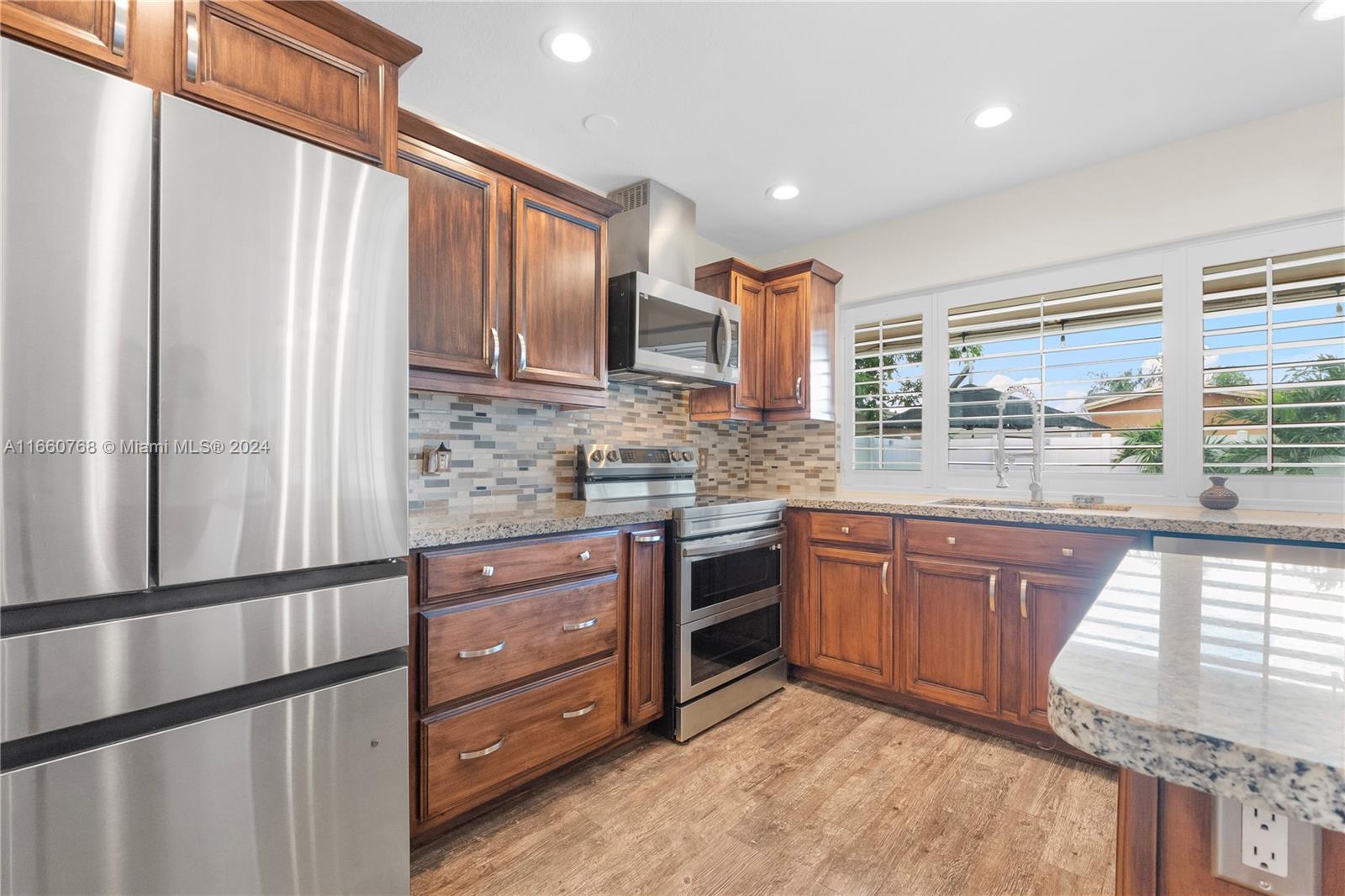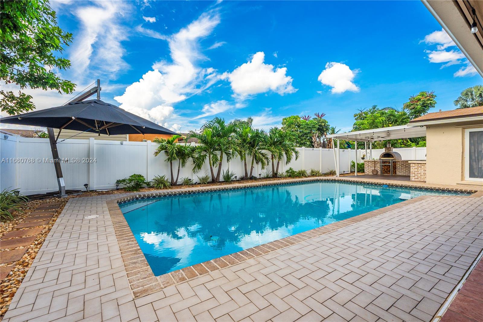 Welcome to this fully renovated 3/2 split floor plan in highly desirable Pembroke Pines. New roof installed in 2022 and impact windows throughout. Kitchen features granite countertops with stainless steel appliances. New waterproof vinyl floors installed in 2023. Both bathrooms have been remodeled in the last two years, instant tankless water heater from 2023, a spacious two-car garage, and a convenient circular driveway. Step outside to a brand-new PVC fence and relax in style with plantation shutters and an outdoor brick pizza oven, perfect for entertaining.