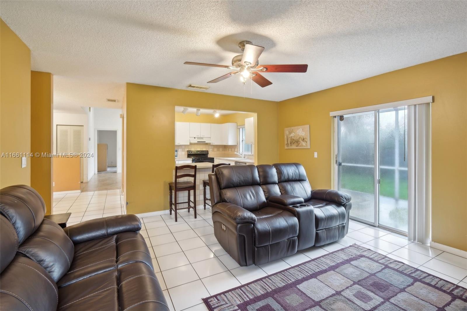 This spacious 3-bedroom, 2-bathroom home with a split floor plan is ideal for a growing family. Retaining its original charm, it’s well-maintained and in excellent condition. The master suite boasts walk-in double closets and a large bathroom. The open-concept kitchen, adjacent to the dining and family rooms, flows seamlessly to an enclosed porch, extended patio, and a spacious fenced backyard, complete with a mango tree—perfect for family gatherings. A standout feature is the new $46,000 solar panel system, fully paid off at closing, offering long-term energy savings. Additional amenities include a 2-car garage and a driveway for 4-6 vehicles. Conveniently located near schools and shopping, this home offers all the comforts you need.