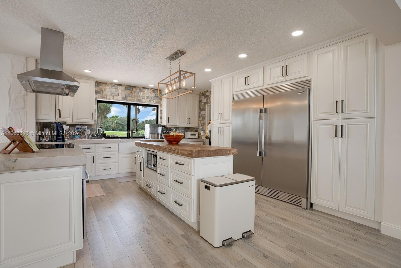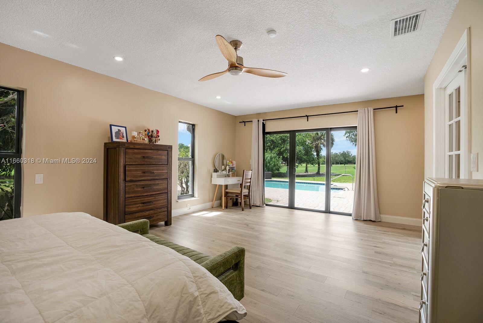 Contemporary custom designed 5/3 pool residence situated on expansive 18,759 waterfront lot. Overlooking the Jacaranda golf course offering a backdrop of tropical vistas, sunrise to sunset! New paved circular driveway surrounded by mature trees & shrubs. Expansive floorplan, primary bdrm new ensuite bath, 2 spacious bdrms w/ connecting new bathroom. Bonus area for office/den/library. Open dining/living w/ fireplace. Chef’s kitchen featuring 2 ovens, commercial size fridge/freezer, farmhouse sink, quartz countertops, plus large island w/walnut quartzite. Family room w/built in wet bar and cabana bath, additional media room & 2 bdrms perfect for guest suite or in-laws. New tile wood flooring, high ceilings & impact windows. Separate Laundry room. Make this exceptional property yours today!