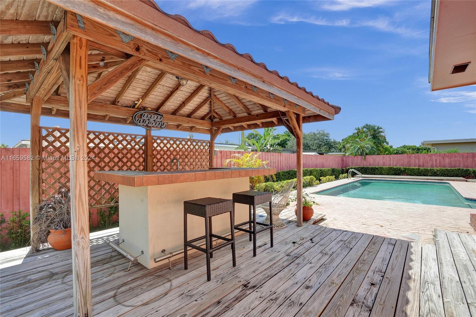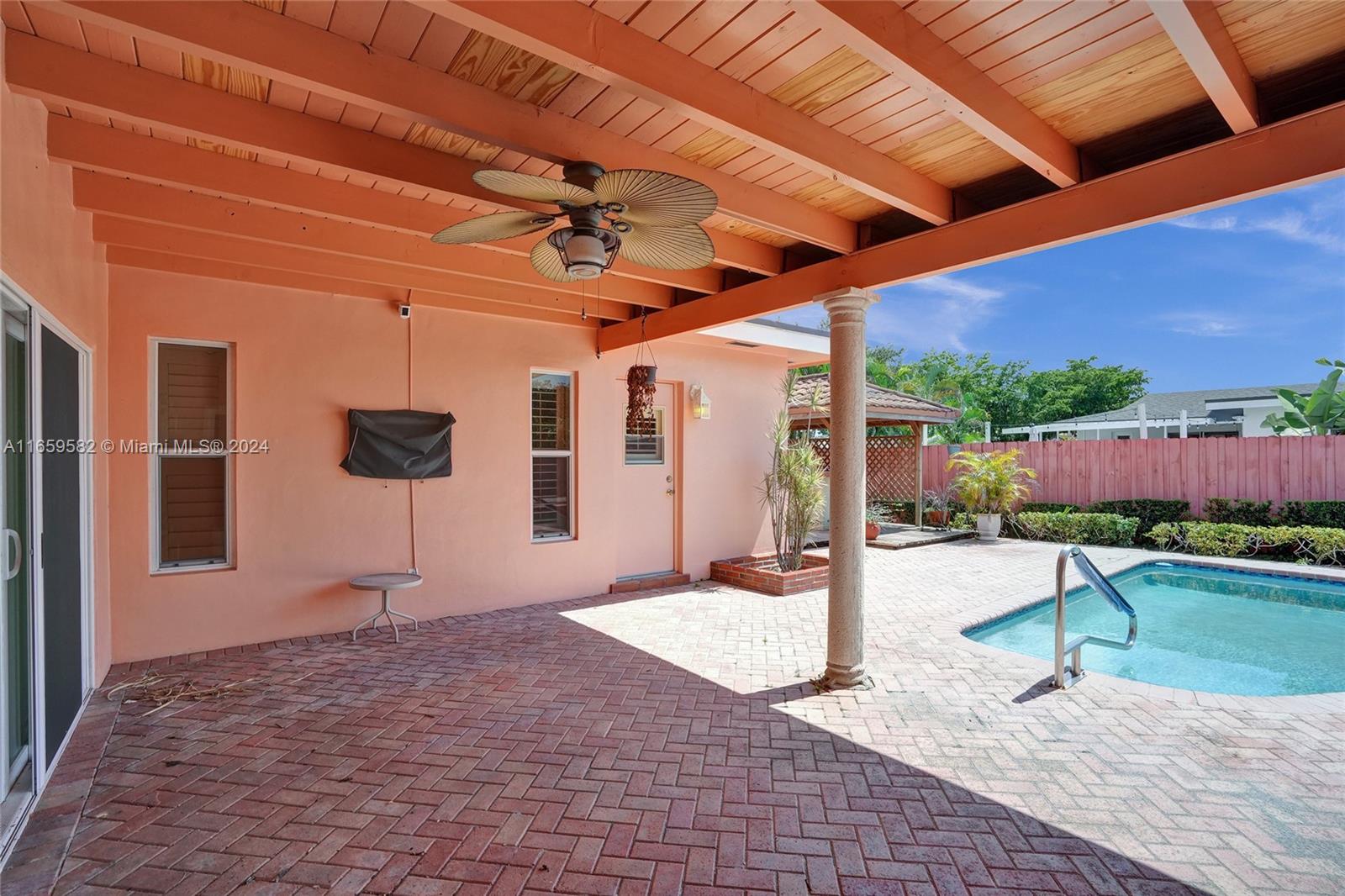 This home has been priced to sell! The home is situated on an oversized corner lot and features 3 bedrooms*2 bathrooms and located on an oversized corner lot. Interior features: double door entry*master bedroom with walk in closet and remodeled master bath (cabana)headlining an oversized tub with seamless glass doors*sunken living room* ceramic tile throughout the home*6 ceiling fans*remodeled kitchen with hi-end wood cabinets*s*granite countertops*stainless appliances*pull out drawers*built in wall units*interior laundry room*wood burning fireplace which can be converted to gas*plantation shutters. The exterior features a great backyard*large heated pool*whole house generator*gazebo with water*summer kitchen with an Alfresco Grill*completely fenced*auto sprinkler system*shed & decking.