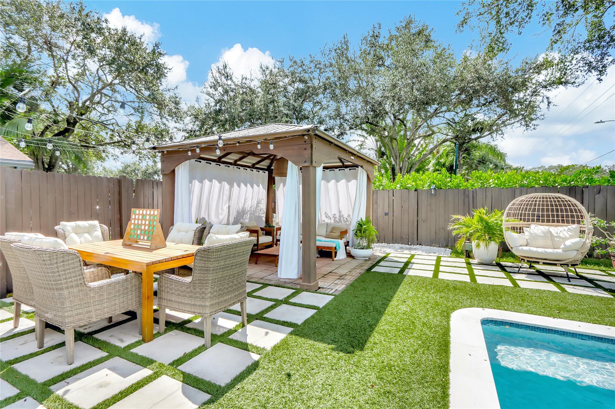 Explore this splendid residence nestled in the coveted Rock Creek area of Cooper City! With access to top-tier A schools, this 3-bed, 2-bath home boasts a backyard oasis like no other. It features impact windows, a new cedar-wood gazebo, new pool with a water feature, ambient lighting, and a tanning shelf. Delight in the airy living room with soaring ceilings and savor the newly remodeled kitchen with quartz countertops, smart stainless steel appliances, and wine cooler. Enjoy integrated smart lighting throughout the entire home. The resort-style pool and outdoor space provide the perfect setting for gatherings with friends and family. The pet-friendly community offers walking paths, sports courts, a community pool, and playgrounds for an active lifestyle.