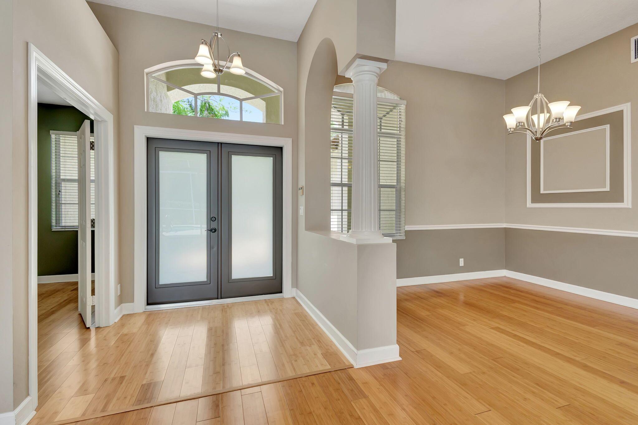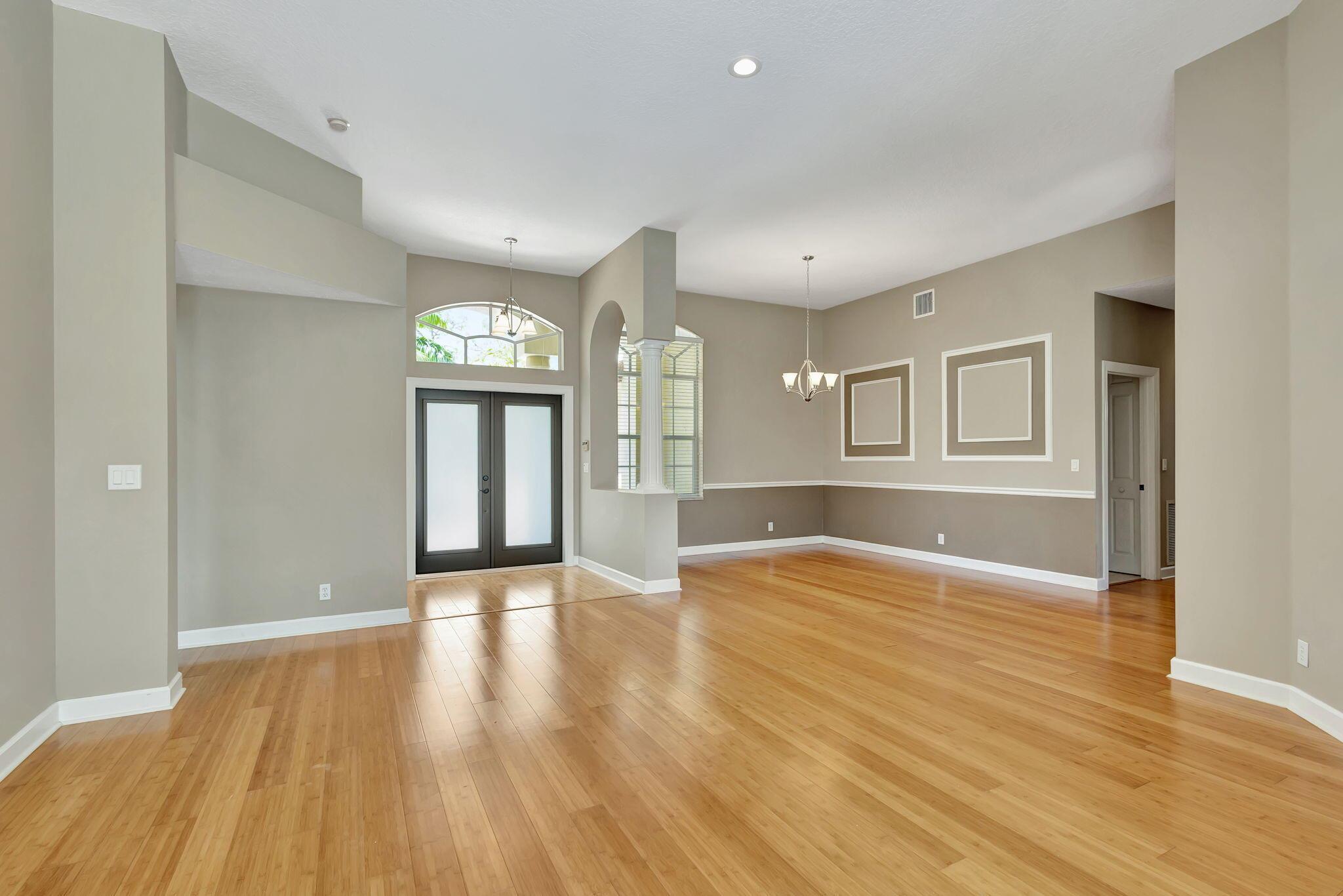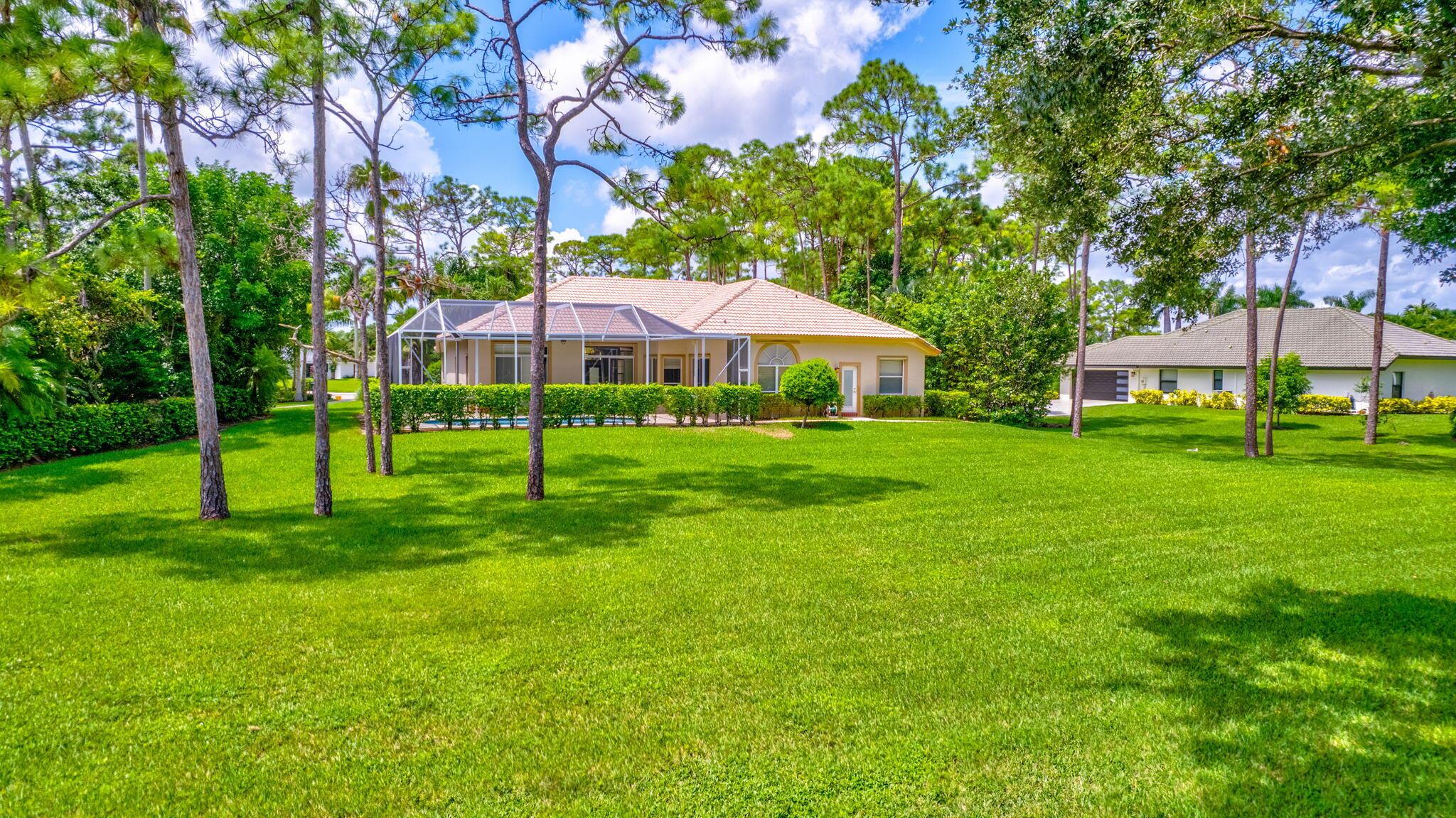 Serene setting surrounds this contemporary 4BR 3bth + office estate home nestled in the highly sought after and exclusive gated golf community of Bay Hill Estates. Expansive 1.2 acre lot nestled at the end of a cul de sac. Open spacious floor plan featuring hard wood flooring throughout the living areas & office. 4 bedrooms plus office and 3 full baths. Chef's Kitchen includes granite counter-tops & backsplash, Stainless-Steel appliances overlooking breakfast nook & family room. Master BR suite features updated bathroom dual sinks, frameless shower, oversized soaking tub, large walk-in closets overlooking enclosed screened in pool & covered porch. Newer impact front & cabana bath door as well as newer hurricane garage door. Brand new carpet BR's.