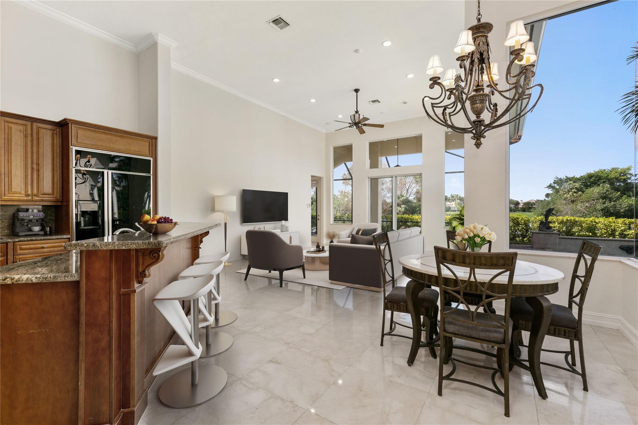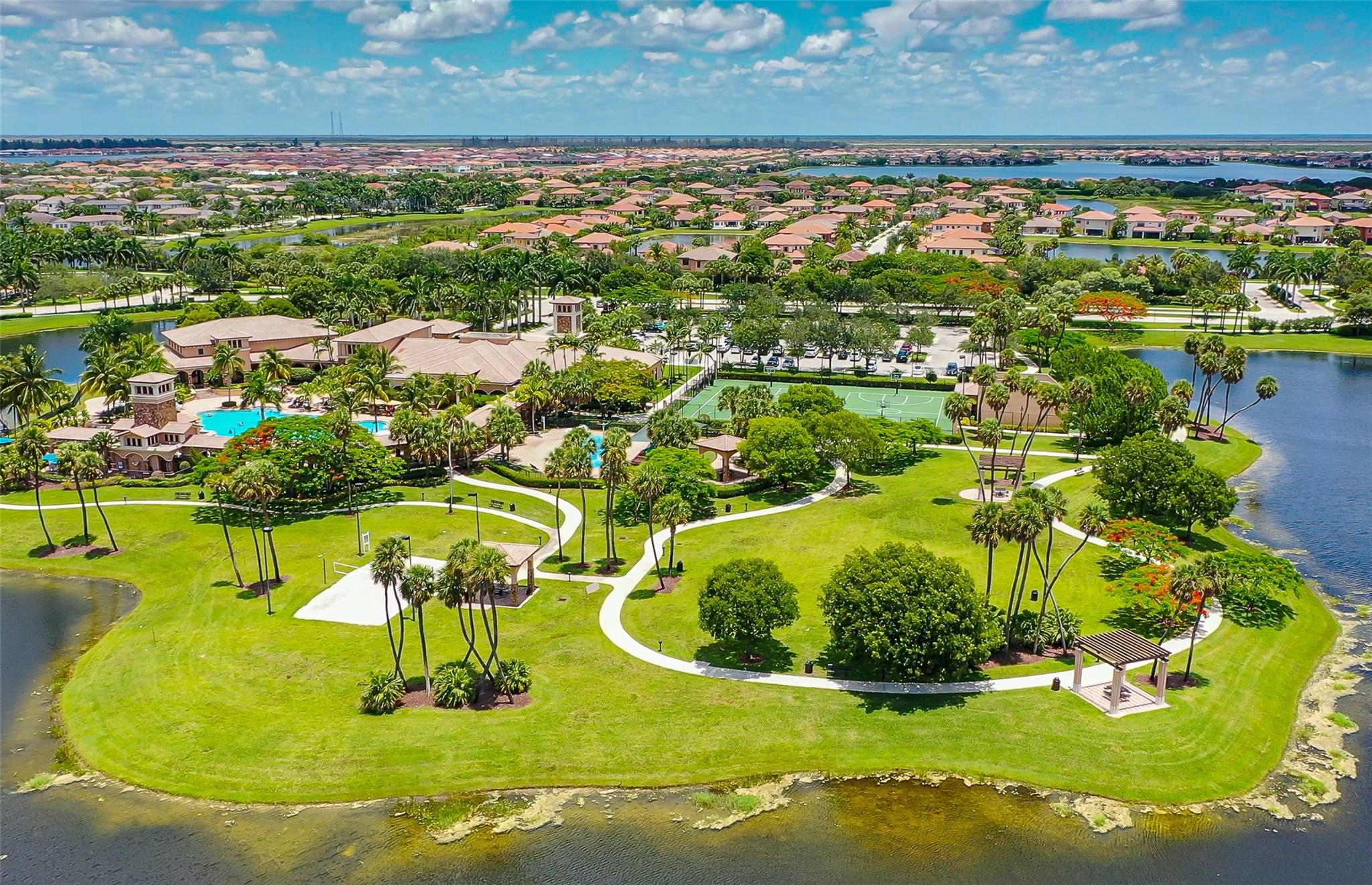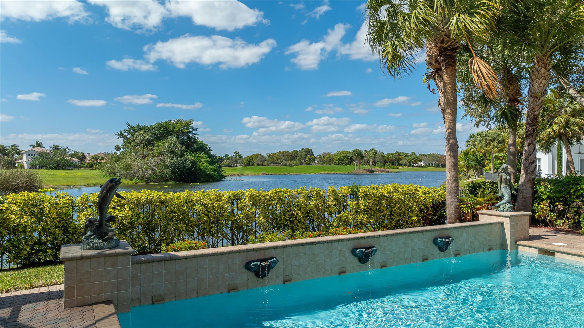 If a spacious private lot is what you're in search for, this waterfront property w/ no rear neighbors is a must-see! The nearly 100-foot-wide lot offers both privacy & stunning vistas. Inside, you're greeted by 14-foot volume ceilings & newly polished marble floors that enhance the open & airy layout. Large picture windows flood the home w/ natural light & the exceptional floor plan includes a generously sized living room, formal dining room & family room—all w/ panoramic views of the pool & water. Additional features include a circular driveway, crown molding, freshly painted interior, a large screened-in patio, & an open pool overlooking the water. Located in the amenity-rich Heron Bay community, residents have access to tennis, pickleball, fitness center, resort-style pools & more.