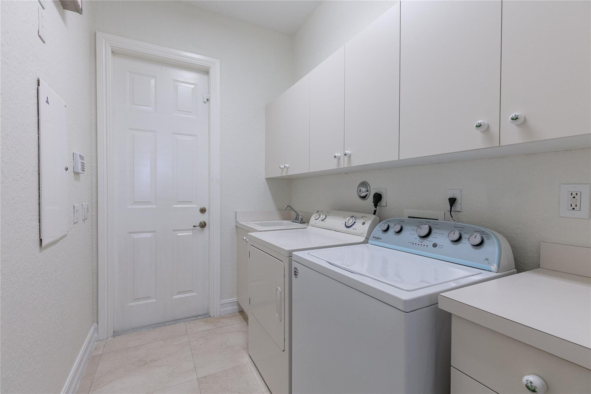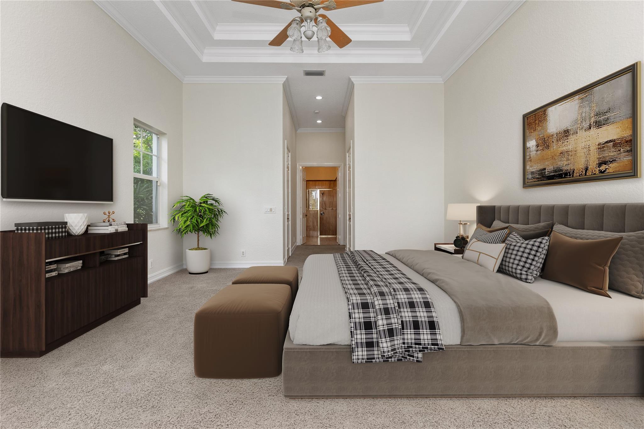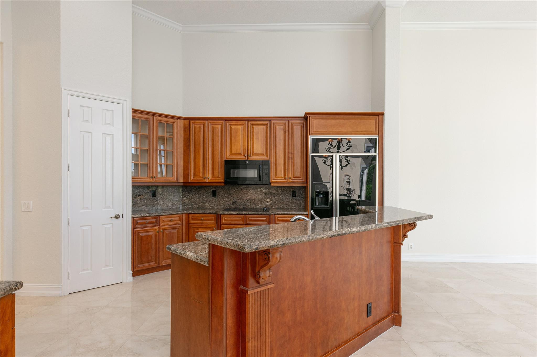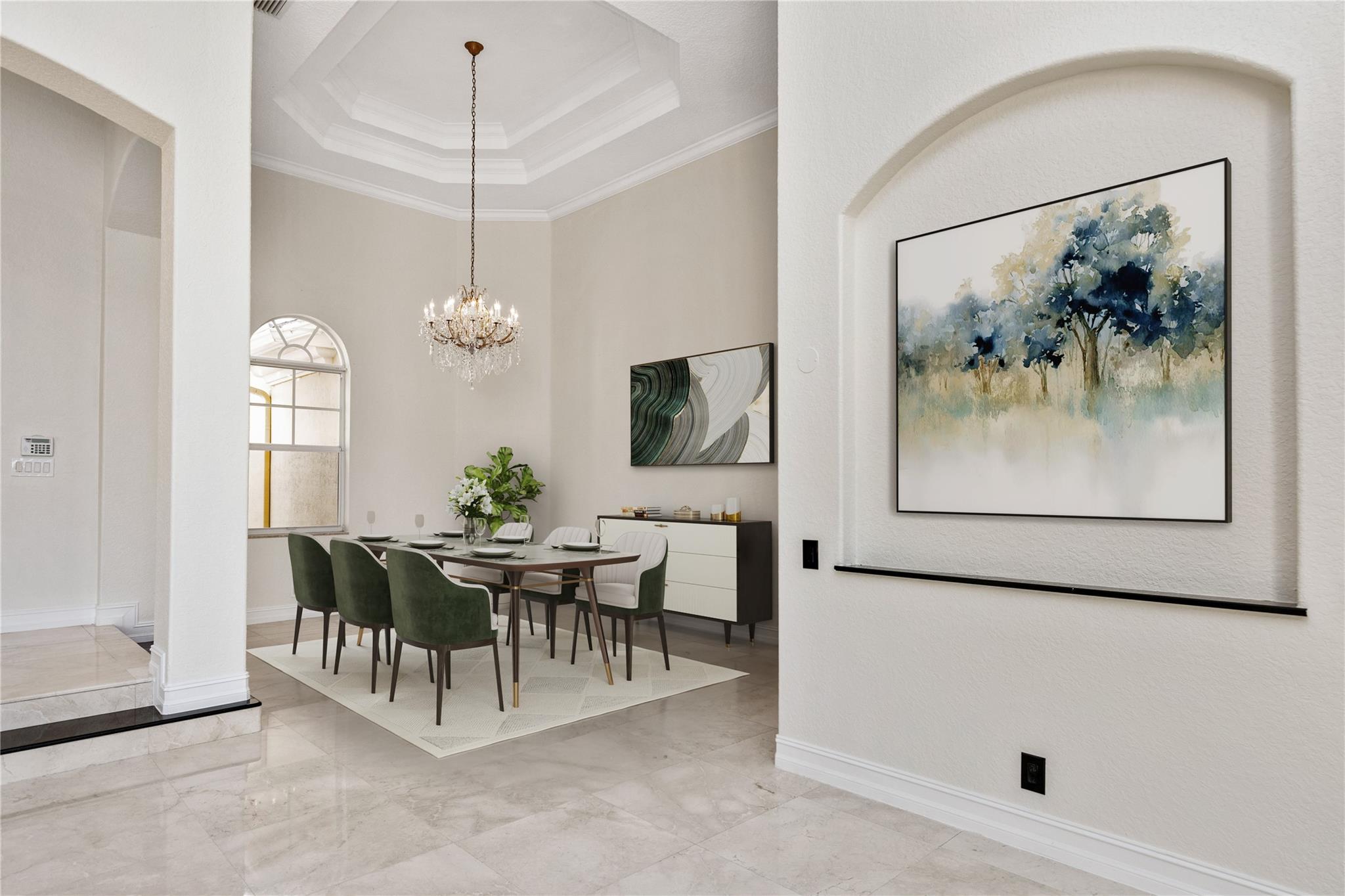 If a spacious private lot is what you're in search for, this waterfront property w/ no rear neighbors is a must-see! The nearly 100-foot-wide lot offers both privacy & stunning vistas. Inside, you're greeted by 14-foot volume ceilings & newly polished marble floors that enhance the open & airy layout. Large picture windows flood the home w/ natural light & the exceptional floor plan includes a generously sized living room, formal dining room & family room—all w/ panoramic views of the pool & water. Additional features include a circular driveway, crown molding, freshly painted interior, a large screened-in patio, & an open pool overlooking the water. Located in the amenity-rich Heron Bay community, residents have access to tennis, pickleball, fitness center, resort-style pools & more.