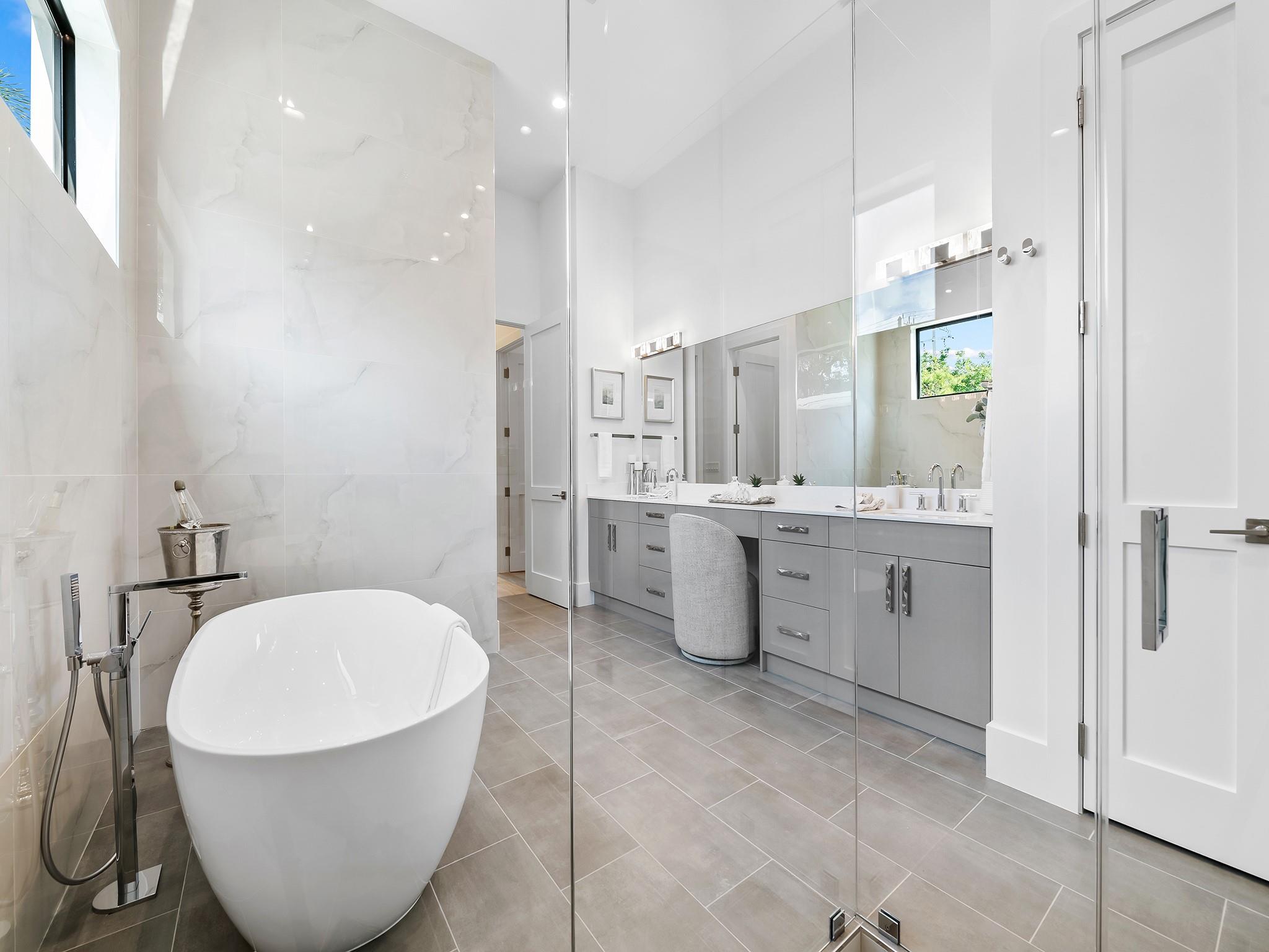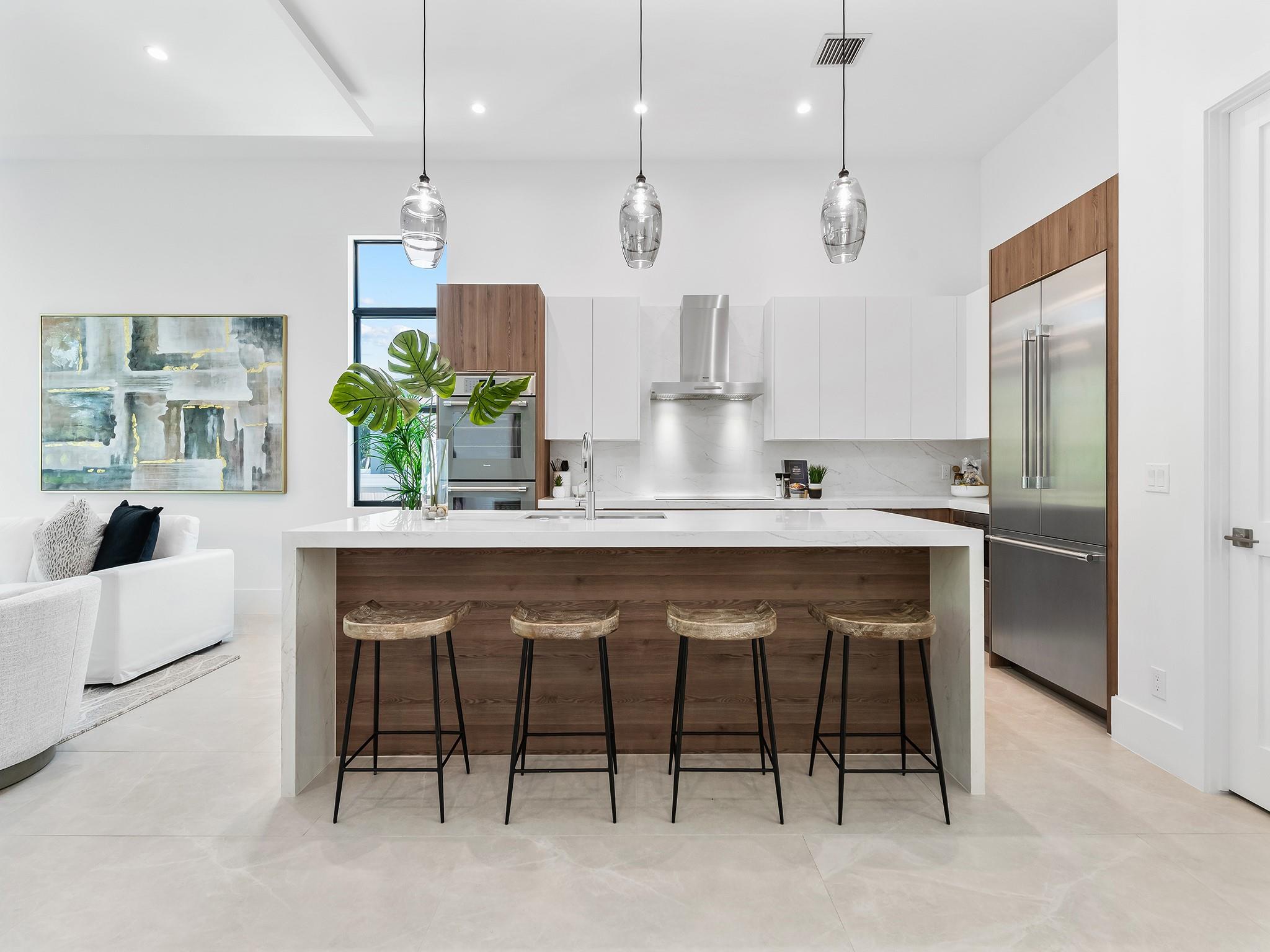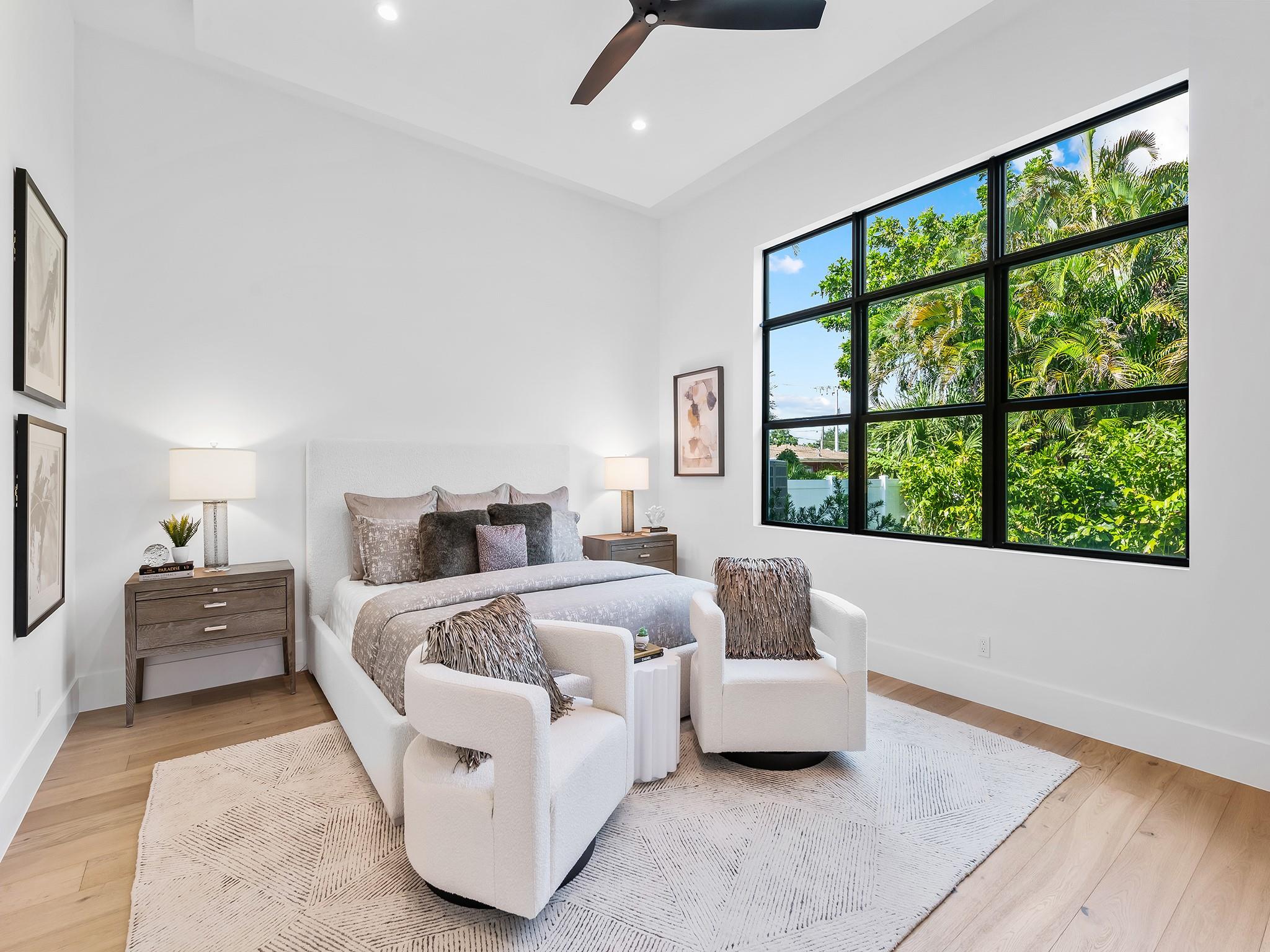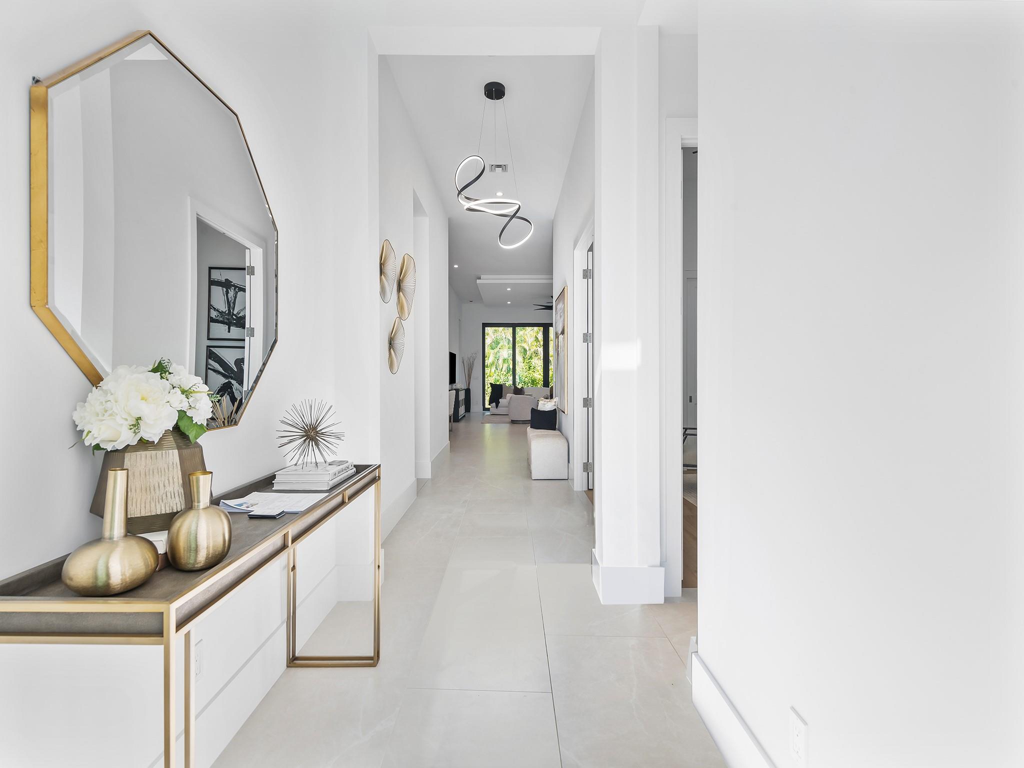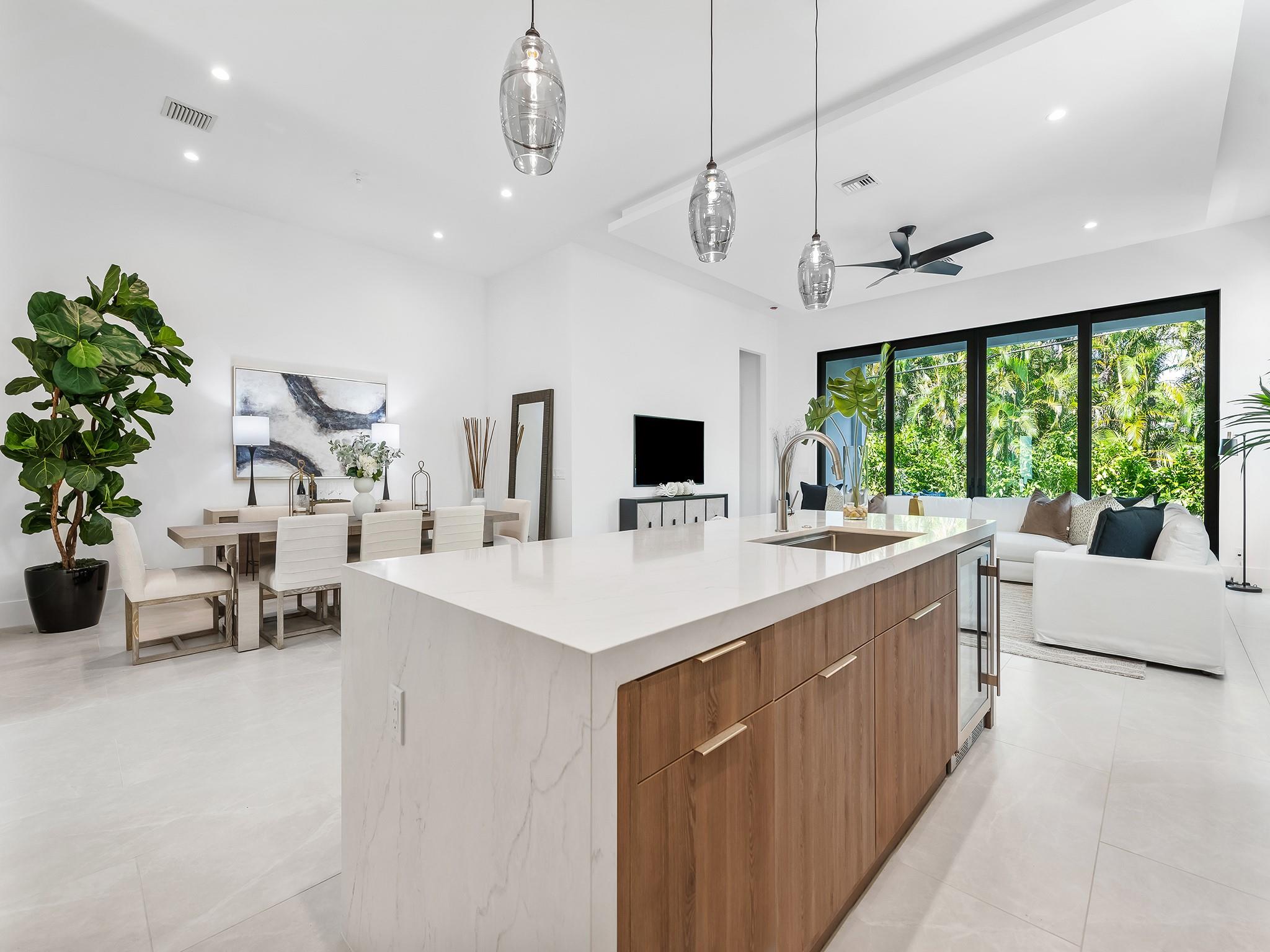 ** NEW CONSTRUCTION NOW READY FOR OCCUPANCY ** Contemporary architecture in E. Fort Lauderdale. Every element of this 1 story home has been designed to cultivate today's lifestyle with modern luxuries & open concept living areas. The moment you enter the 15 ft foyer your eye is drawn to a wall of sliding glass doors that opens onto a lrg covered lanai, pool, patio area & tropical backyard. 12 ft ceilings enhance the luminous flr plan & spacious living areas. The gourmet kitchen features upgraded appliances, a large center island for entertaining & pantry. The primary suite boasts 2 walk-in closets & lavish bathrm. 2 additional ensuite bedrooms, optional home office or 4th bedroom, 1/2 bathroom & laundry rm complete the floor plan. Sq. ft. from developer
