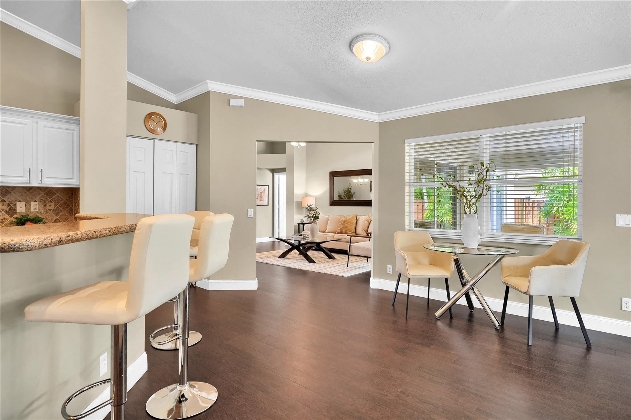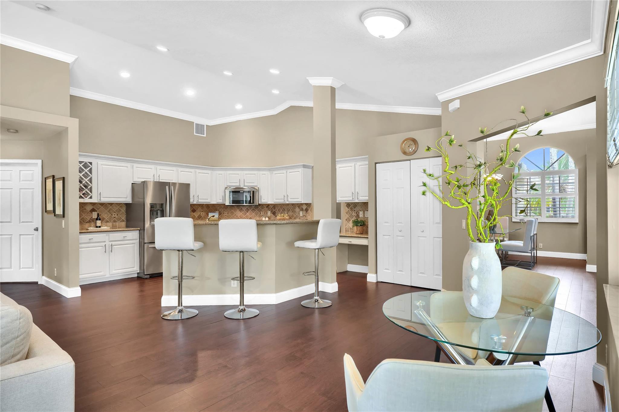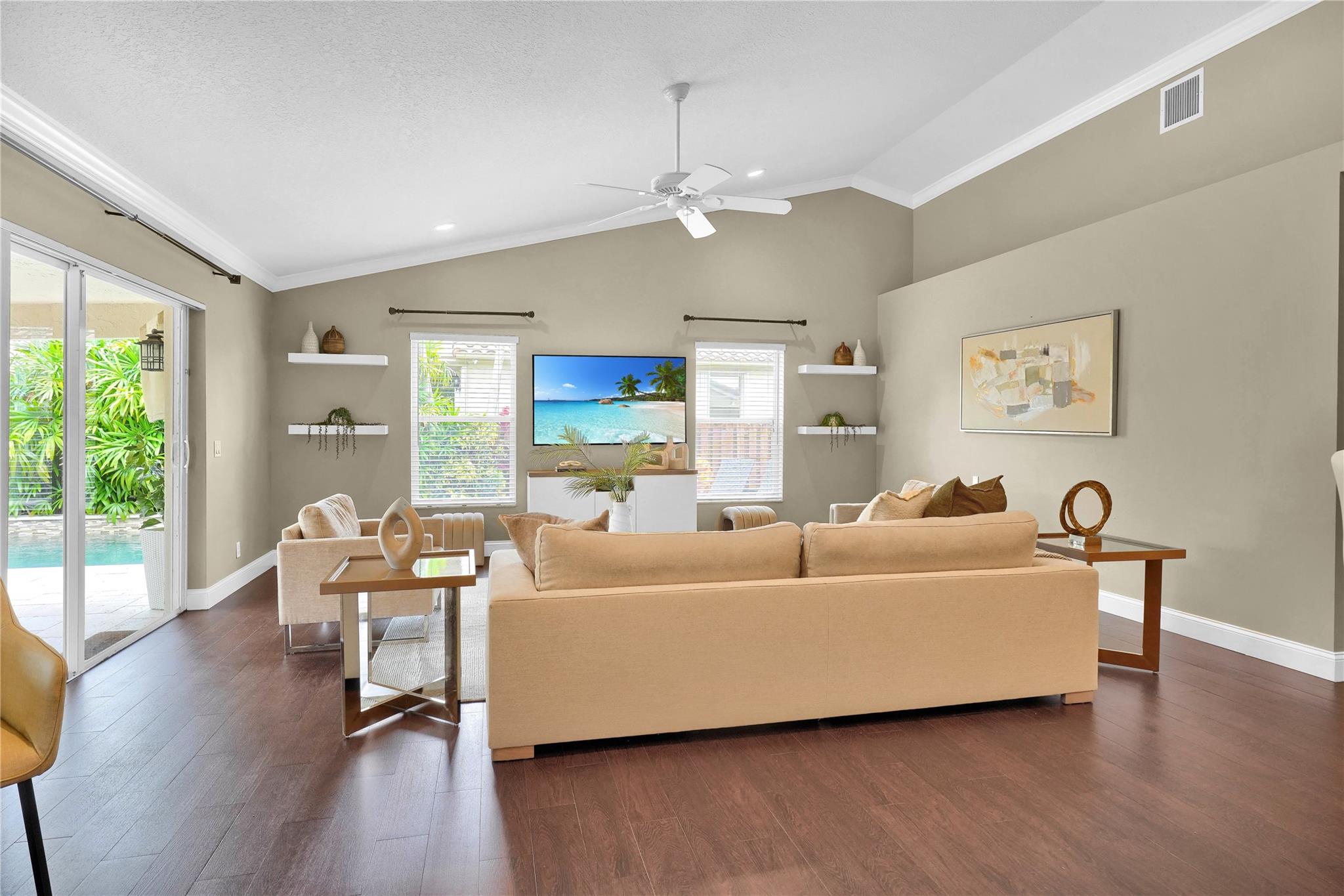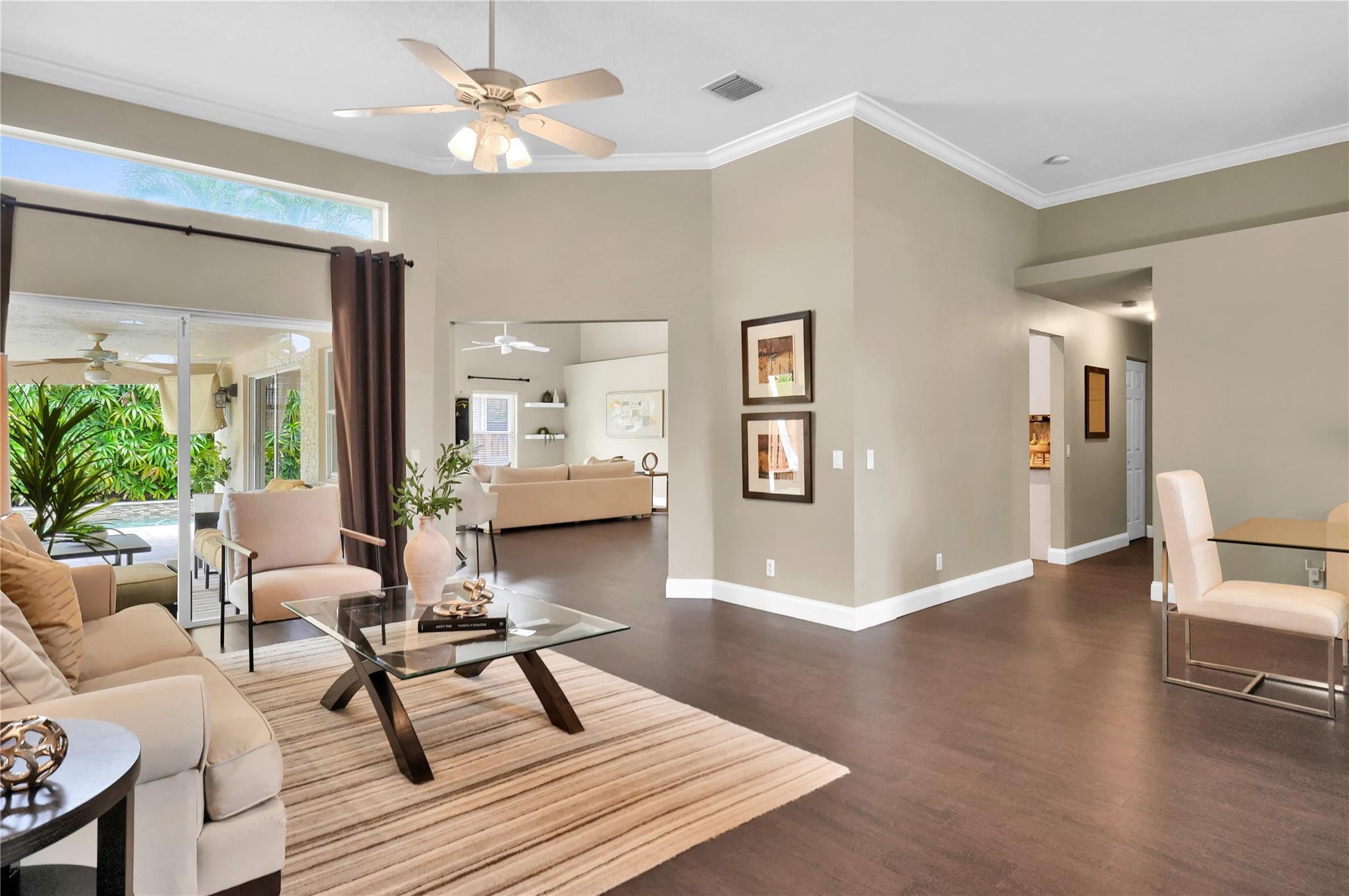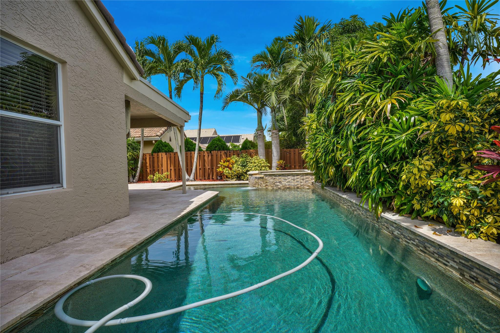 4/3 triple split pool home in sought after & perfectly located The Ridge on Nob Hill! Roof replaced 2022! 3 car garage! Beautiful wood look tile throughout living areas & modern vinyl floors in the bedrooms. Open kitchen has stainless steel appliances (refrigerator newer), pantry, white cabinets, & high ceilings. Extra large family room was extended out when built compared to original floor plan. Spacious primary bedroom w access to pool. 2 walk-in closets! Primary bath w separate tub & large shower. Both guest bathrooms beautifully updated complete w glass shower doors, beautiful tile & vanities! Washer/dryer inside! Gorgeous outside oasis w lush landscaping & perfect for entertaining large covered patio! Travertine pavers surround your modern pool & spa. Exterior painted 2022.