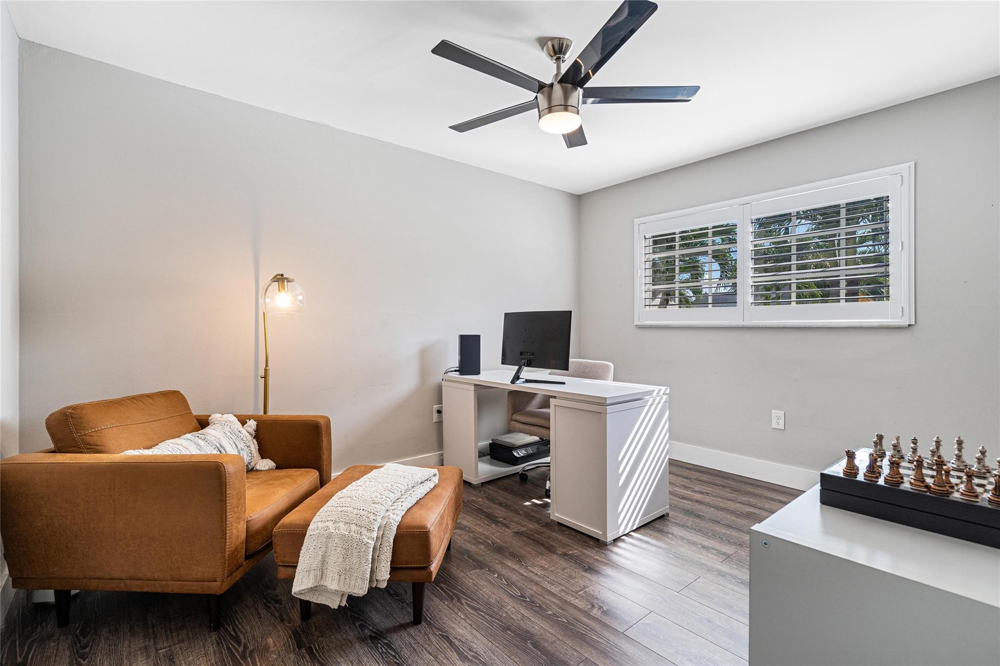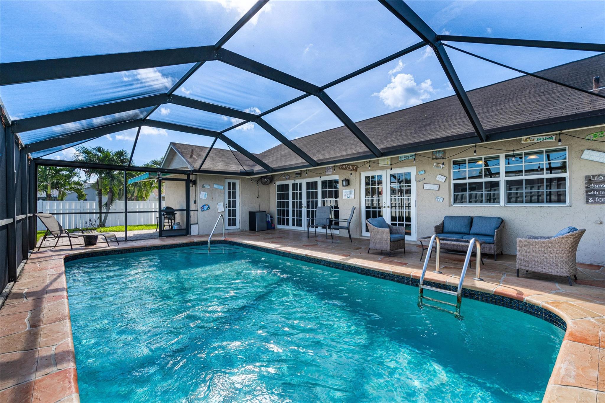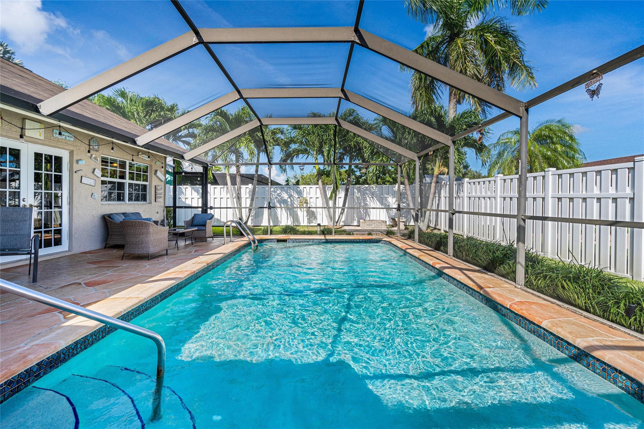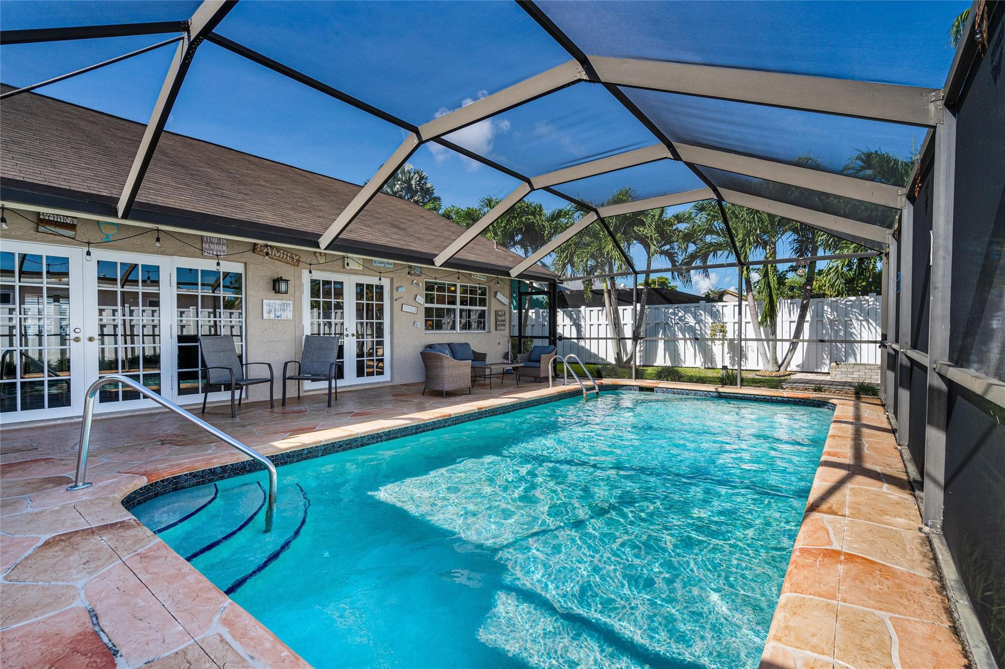 Look no further – this is the home you've been searching for! Stunning house with a pool in Windward Isle! This spacious, open floor plan features 3 bedrooms + bonus office/den/pantry, vaulted ceilings, a contemporary white kitchen with stainless steel appliances, and granite countertops. Highlights include custom interior glass doors, upgraded bathrooms, modern lighting, impact windows and doors throughout, roll-down shades, plantation shutters, tile flooring in living areas, and sleek laminate wood in bedrooms. Nestled on an oversized, fully fenced corner lot with beautiful landscaping, it offers a private setting while being conveniently close to shopping, dining, and major highways.
