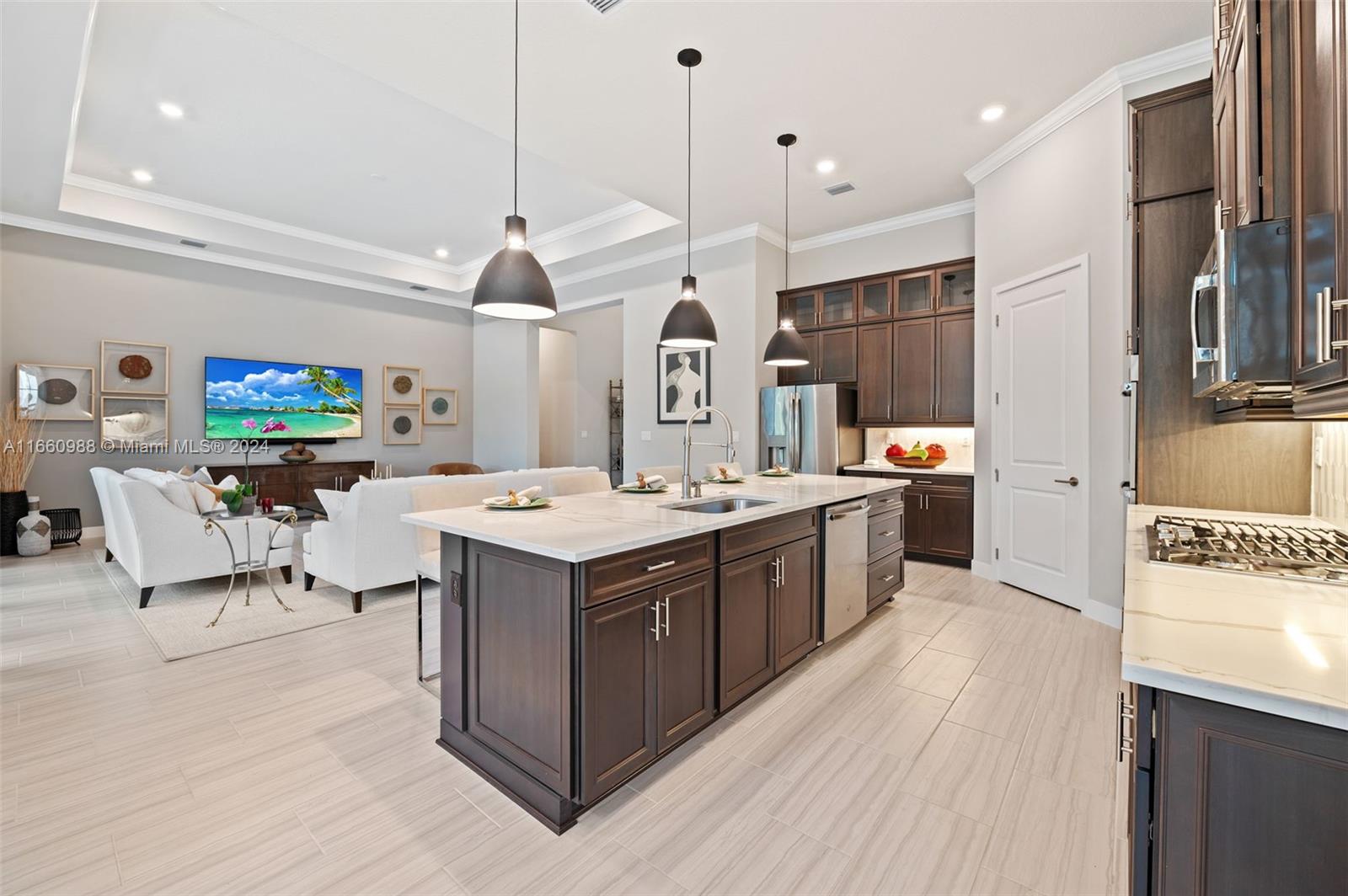 Experience elegance and privacy of this exquisite former Ryan Builder Show Model, situated on the exclusive cul-de-sac on Model Row. This Andros Floor Plan boasts numerous high-end upgrades, including premium features throughout the home. Highlights include a private pool oasis with lush landscaping, sun shelf, & custom cascading fountains for ultimate relaxation. Interior enhancements; extended kitchen cabinets, custom closets, floor-to-ceiling tile in bathrooms, window treatments, and crown molding. Residents enjoy the resort style expansive 24,000 sqft. clubhouse, which offers, an on-site café, fitness center, pool and spa, pickleball courts, theater, card rooms, billiards, ballroom, and lounge areas ensuring an active and vibrant lifestyle. House of Worship is less than a half a mile.