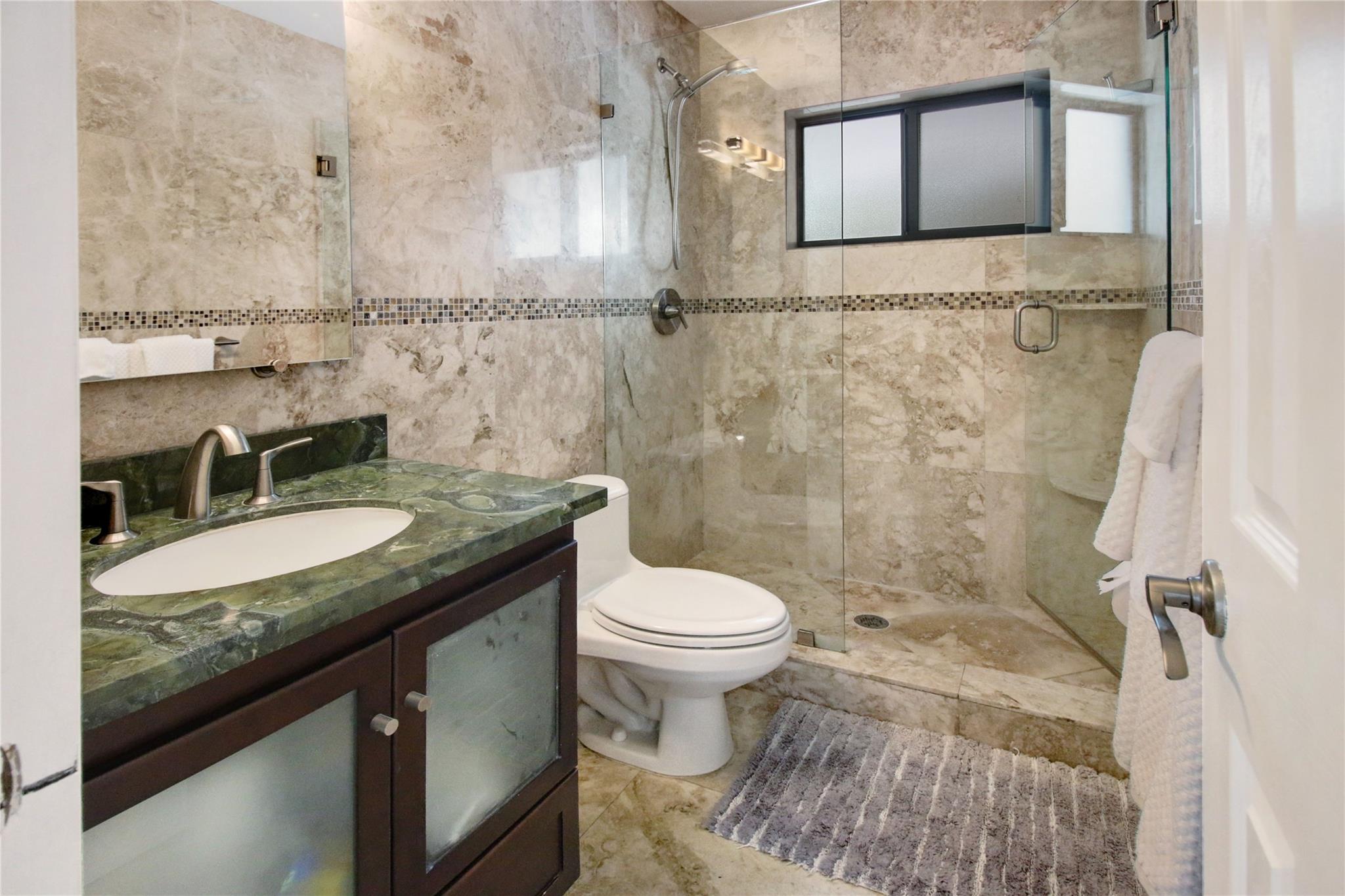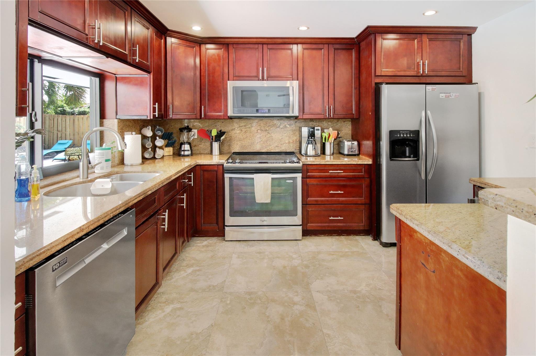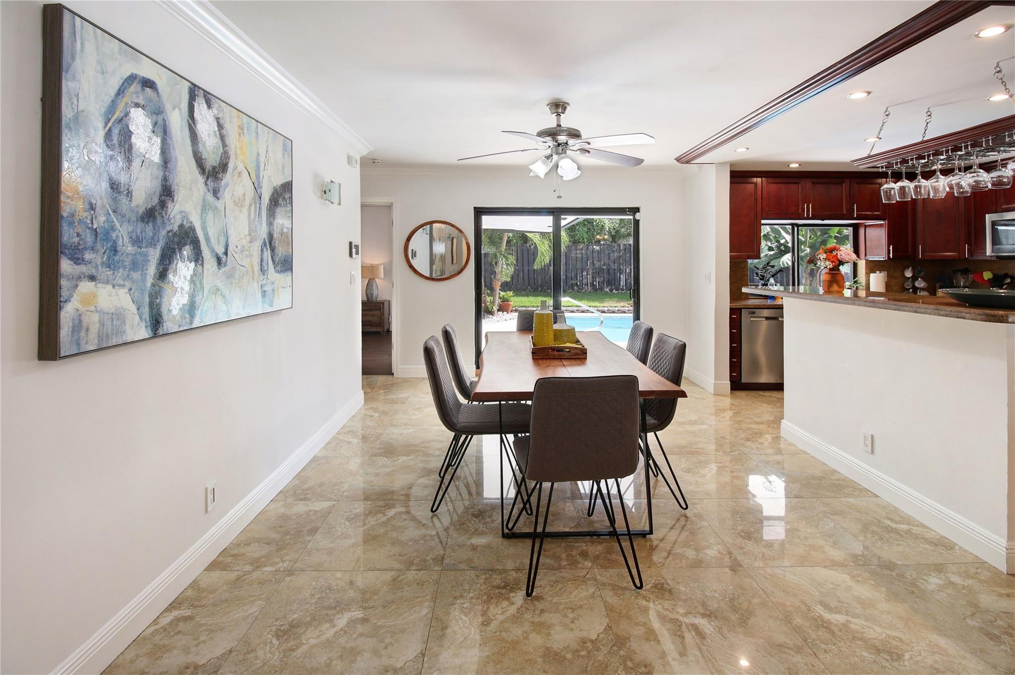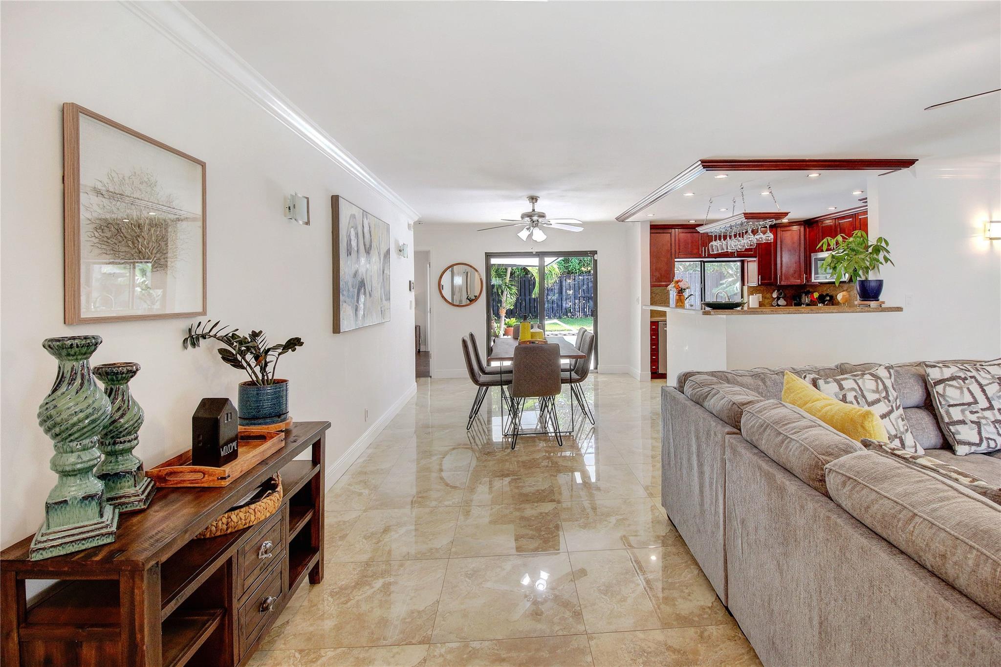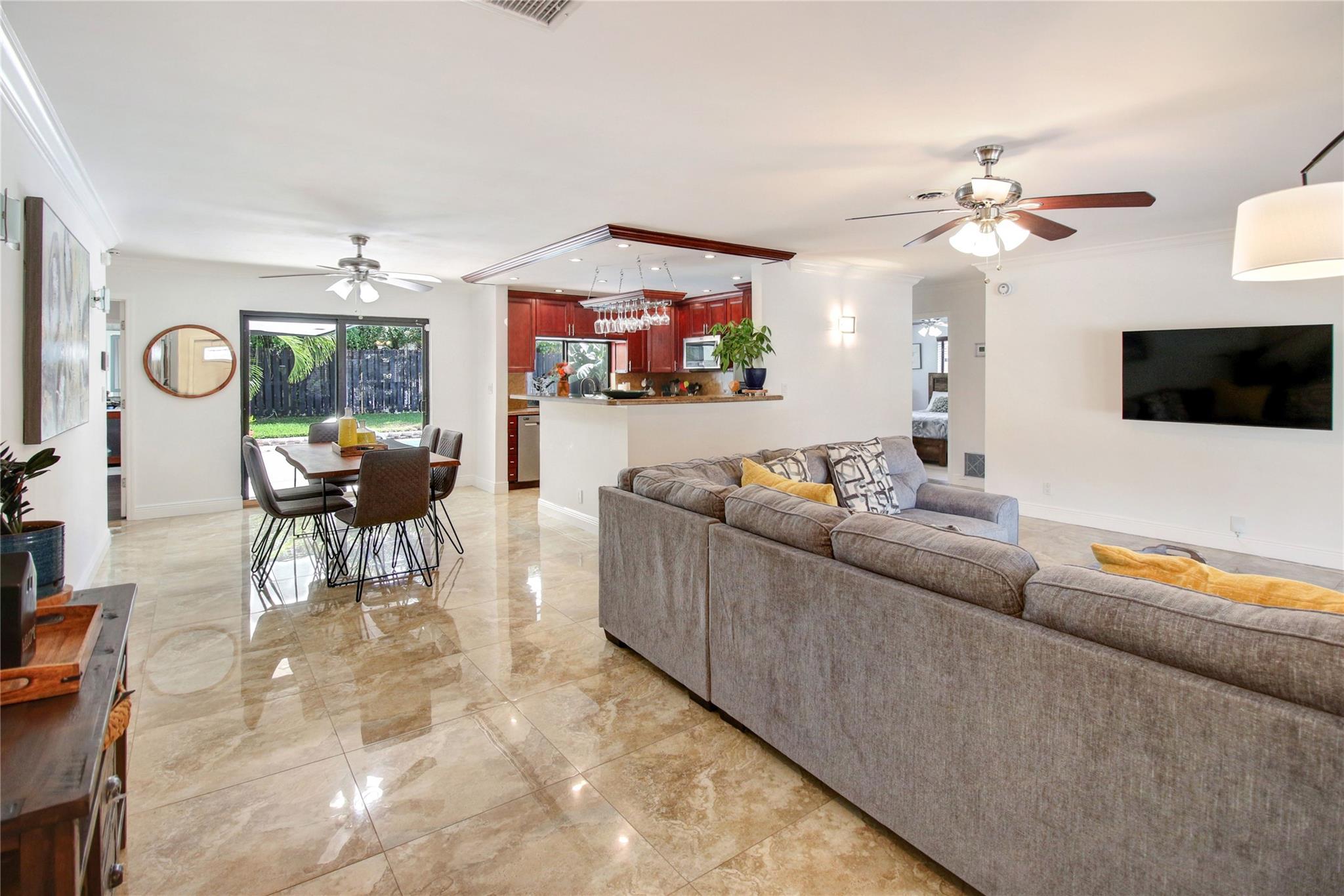 Luxurious 3BA/2BA POOL home, just 5 min from the BEACH in Coral Ridge. The elegant, open living room overlooks the pool. Great split floor plan ensures privacy for the master en-suite, w/ an enlarged walk-in closet. Marble floors in the living area & baths add a luxurious touch. Hurricane impact windows, durable tile roof, smoke alarms & hard-wired carbon monoxide detectors, double garage & a circular driveway w/ parking for 9 cars. The lush backyard provides privacy, fruit trees, outdoor dining, lounge, BBQ & shed. All short-term vacation rental licenses in place. Located just 5 min from the beach, restaurants & shops of Laud by the Sea, close to A+ schools such as Pine Crest, Westminster & Floranada Elementary. Zoned as a multifamily this home brings endless opportunity to its new owner.