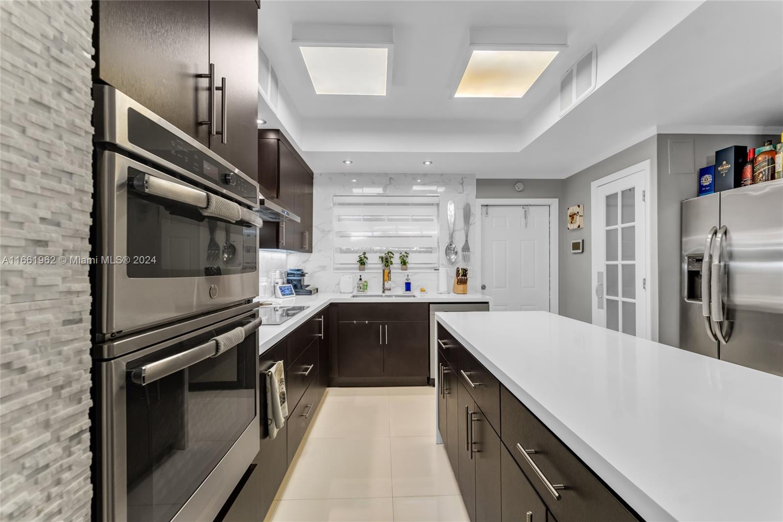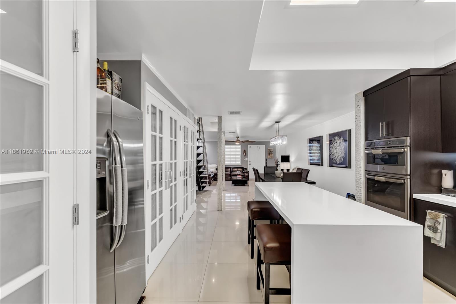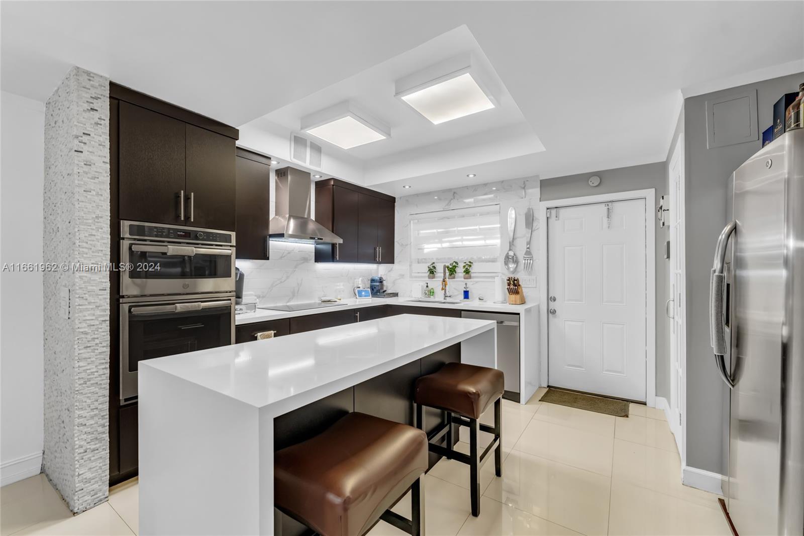 Step into your new home! This stunningly remodeled dual-level townhouse was designed with both style and comfort. Boasting 2 generously sized bedrooms, 2 full bathrooms, and a handy 1/2 bath. The first floor showcases modern living with an open floor plan. Featuring a kitchen filled with dark wood cabinets, white quartz countertops, sleek porcelain tiles, stainless steel appliances, and a large island that’s ideal for entertaining. Upstairs, both bright bedrooms and spa-like bathrooms have been beautifully updated. Equipped with hurricane impact glass throughout the home. Including a screened-in patio, perfect for outdoor dining and relaxation. With just a short walk away from the community pool. No Rentals. Move-in ready and waiting for you to call it home!