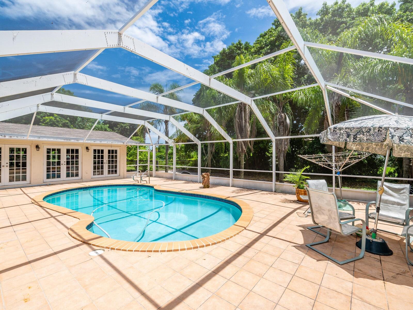 2.3 ACRES. LARGE FAMILY HOME OR KEEP A HORSE LOVERS DREAM!! PICTURES TELL THE STORY. BRING YOUR OWN OR RENT WITH 12 STALLS WITH ELECTRIC/RUN OUTS/TACK ROOM. USE BIG 160X125 ARENA FOR TRAINING/RIDING LESSONS. 7 TURNOUT PADDOCKS. TRUE 6 BDRM/5 BATH. SEPARATE 1/1 SUITE/FULL KITCHEN/SEPARATE LIVING AREA. HOUSE & STABLE ROOFS 2018. DOMED SCREENED TILED PATIO/POOL. HUGE 20X18 MAKE WHATEVER YOU WANT ROOM/VAULTED CEILING/3 FRENCH DOORS TO PATIO/POOL. BIG LIVING ROOM OPEN TO KITCHEN/FRENCH DOORS TO PATIO/POOL. LARGE KITCHEN AREA OPEN TO LIVING ROOM WITH 2 SEATABLE BARS. LARGE MASTER BDRM WITH 2 WALKIN CLOSETS/DOORS TO PATIO AND POOL. MASTER BATH WITH OVERSIZED 5X6.5 JACUZZI SPA. 5TH BDRM WITH OWN BATH/FRENCH DOORS TO PATIO & POOL. NICE 57X35 GARDEN WITH FRUIT TREES/BRICK BBQ. VERY PRIVATE BACK YARD