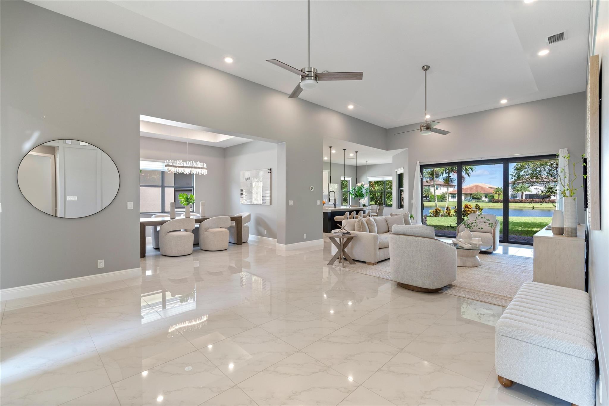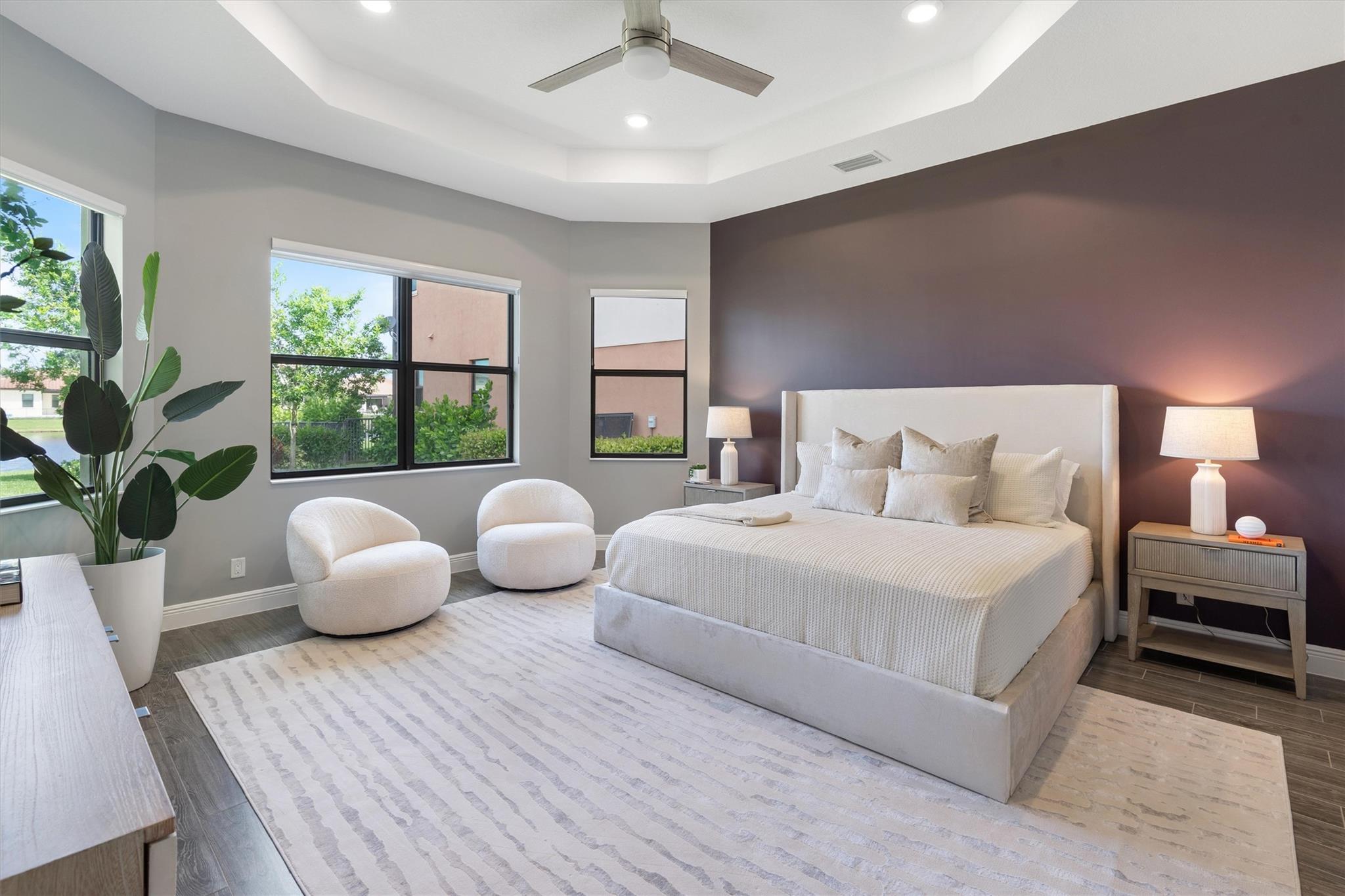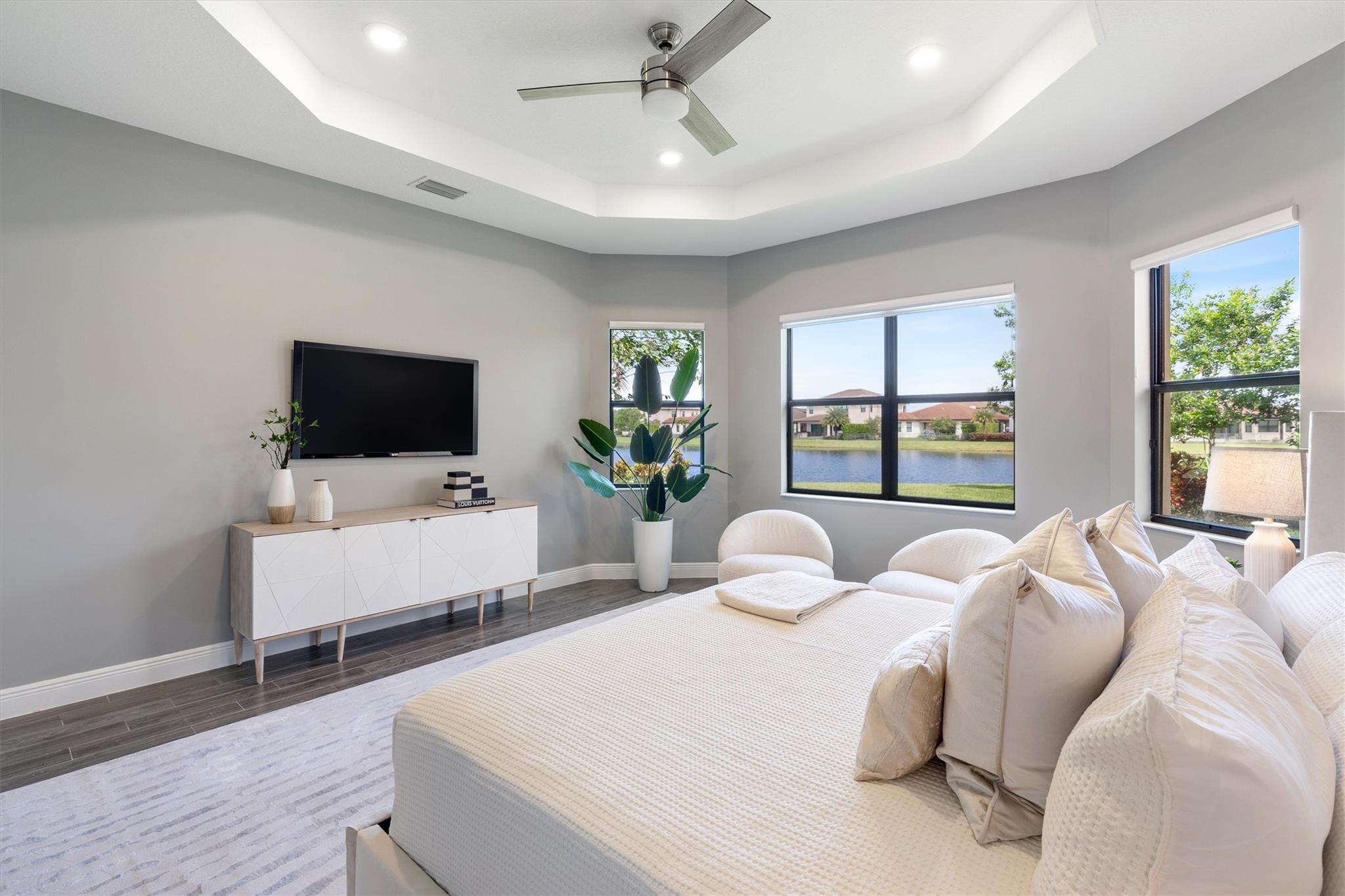 Must See! Best priced lakefront home in the prestigious Parkland Bay community of Parkland! This beautifully maintained residence features 2,666 square foot, 3 bedrooms, 3.5 bathrooms, a home office, a breakfast nook, and a formal dining room. Nestled on an oversized lot in a peaceful cul-de-sac. The expansive great room (17x32) impresses with vaulted tray ceilings and an accent wall. The chef-inspired gourmet kitchen boasts upgraded monogram appliances, quartz countertops, and premium cabinetry. Additional highlights include 24''x24'' Porcelain tile, a primary bedroom with tray ceiling and custom his-and-her closets, top-rated Carrier HVAC system, tankless hot water heater, and hurricane impact windows and doors.