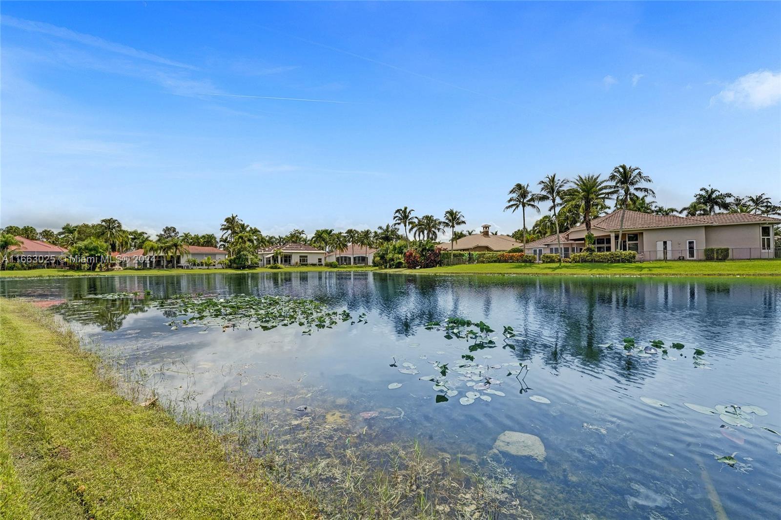 Stunning private corner lot home on 22,348 sqft lot with panoramic lake views in Weston Hills CC. This 6BD (4 ensuite), 6 Bath estate with spacious living areas, perfect for entertaining. Large primary suite offers sitting area, office space, and spa-like bathroom with Jacuzzi tub, dual sinks, walk-in closet, and private toilet. Gourmet kitchen with center island, double wall oven, electric cooktop, custom SS farmhouse sink, SS Samsung fridge and dishwasher. Outdoor living with 2 seperate screened-in areas: private patio and newly resurfaced DiamondBrite heated pool and spa, travertine deck overlooking lake. Enjoy stunning sunsets and sunrises from your backyard. Additionally: 3 A/Cs, central vacuum system, epoxy-finished garage, full-house propane generator, transferrable roof warranty.