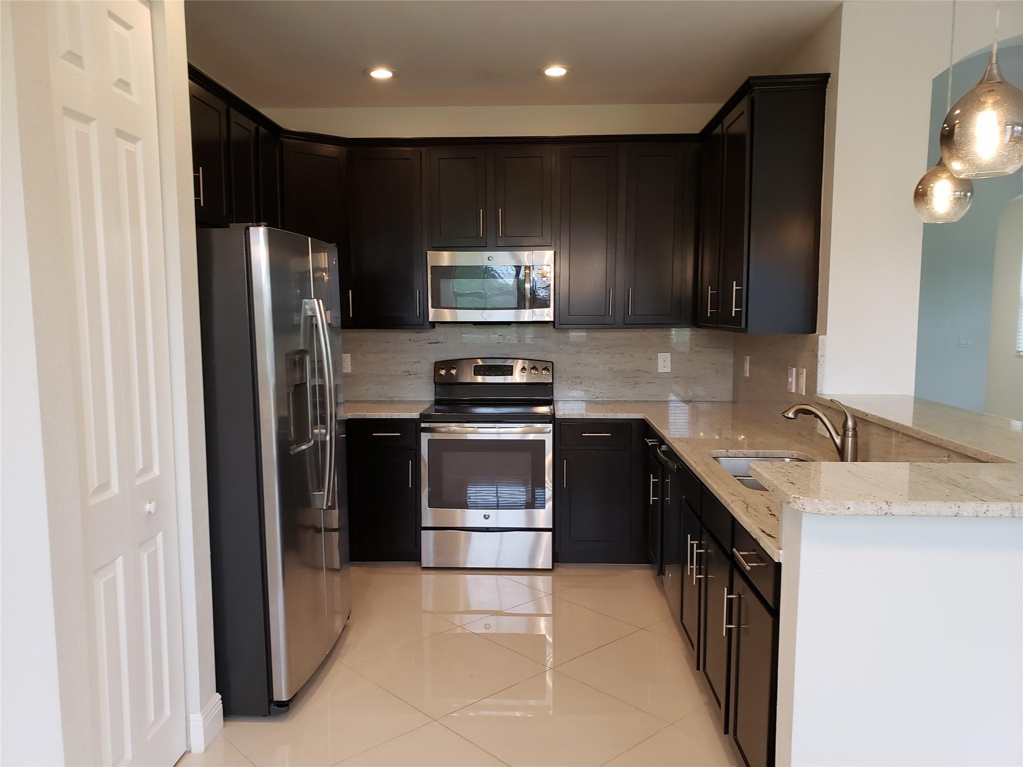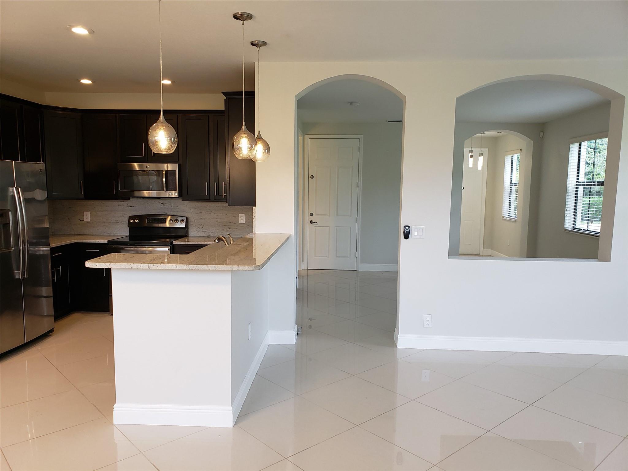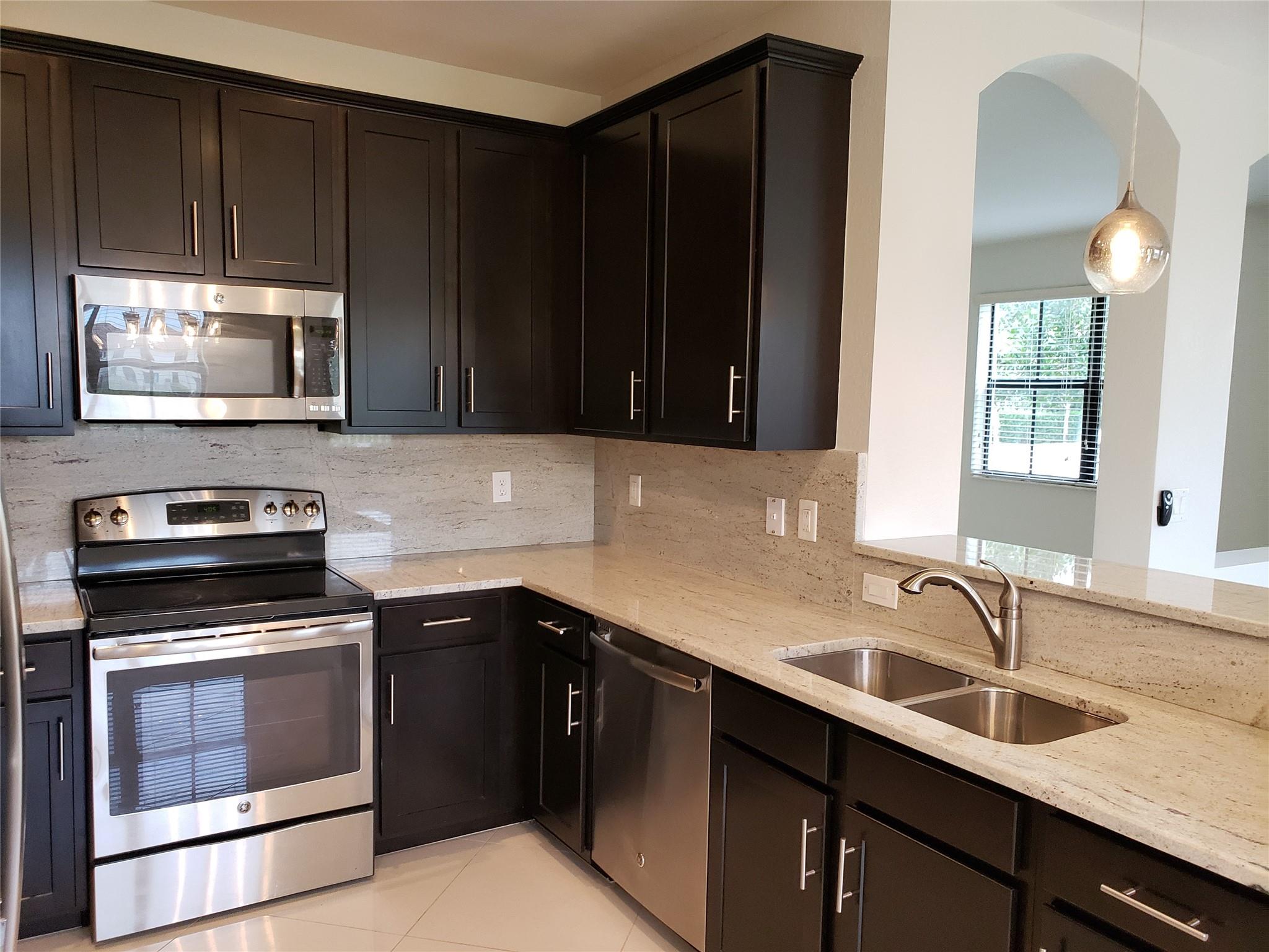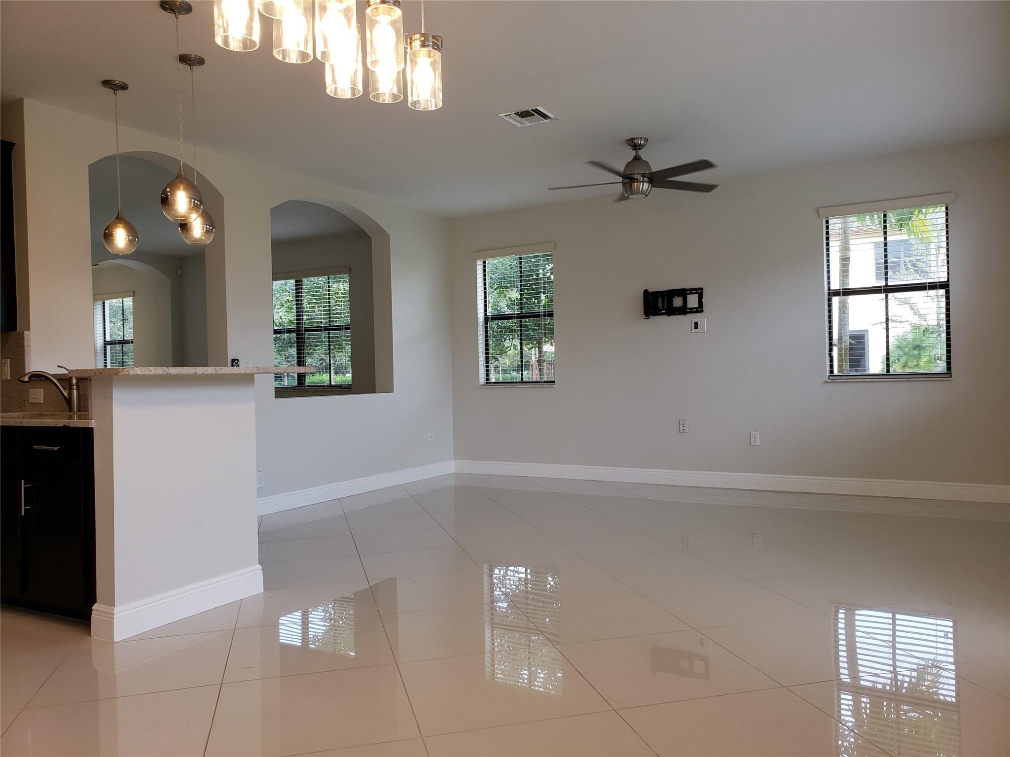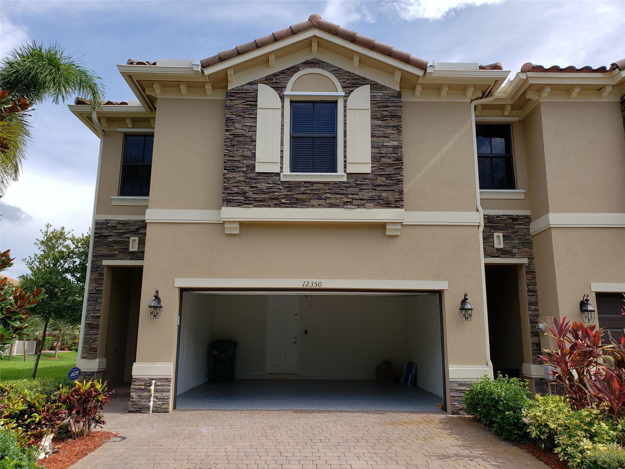 Amazing 4 bedroom 3.5 bath single family (townhouse). Porcelain tile throughout the downstairs, laminate flooring upstairs and custom garage flooring. Custom granite and backsplash in kitchen, master bath and powder room. The appliances are stainless steel. Automatic garage door and front door have a smart look. All bedroom closet and laundry closet have custom organizer. French door to the patio with view to a lake and remote-control Sun Setter Awning. Most of the house is surrounding with gorgeous green. Great Davie Schools near Sawgrass mall. (7.0 credit require by association)