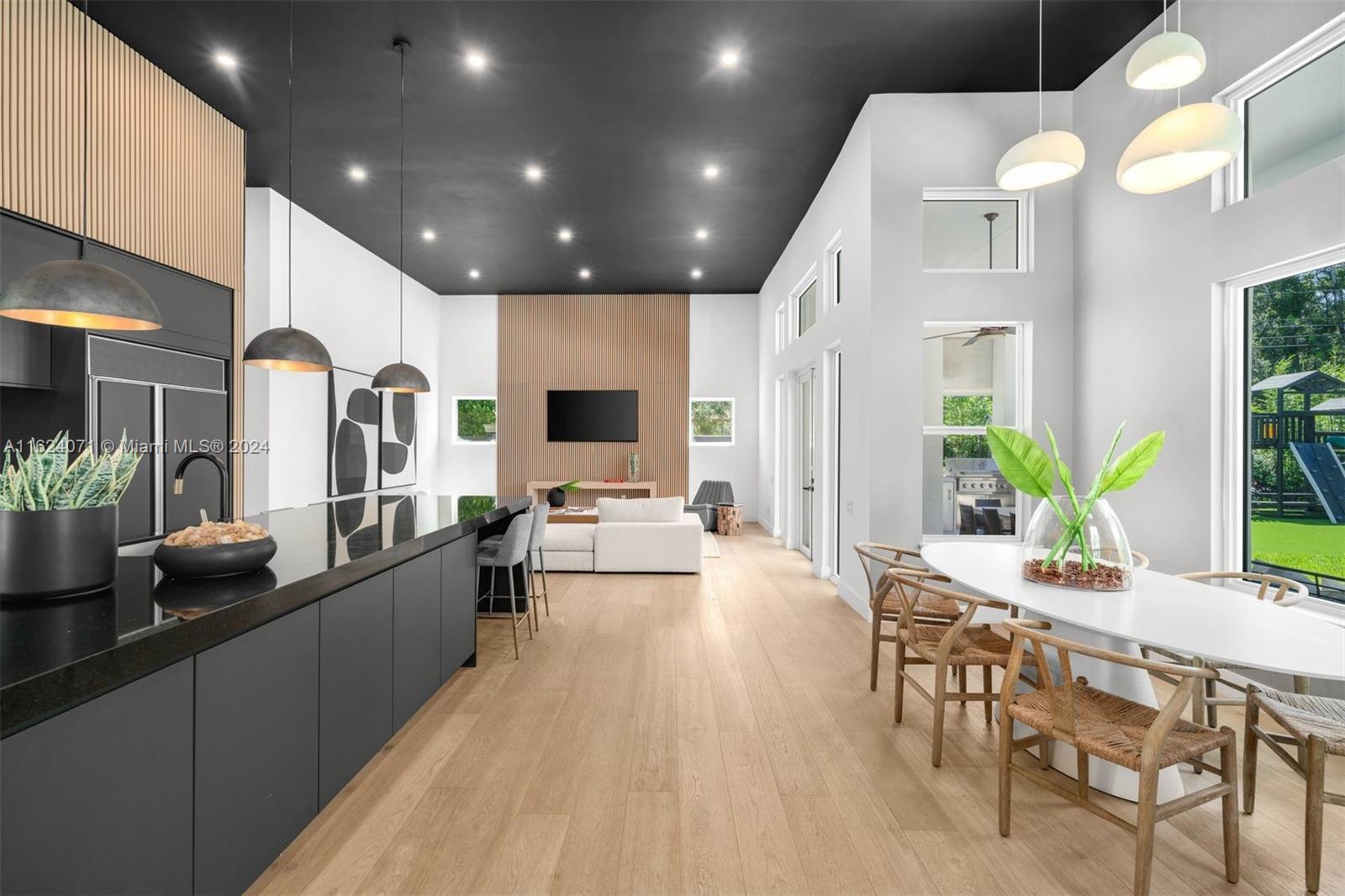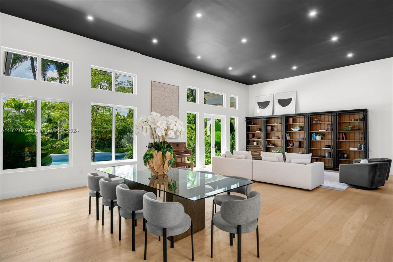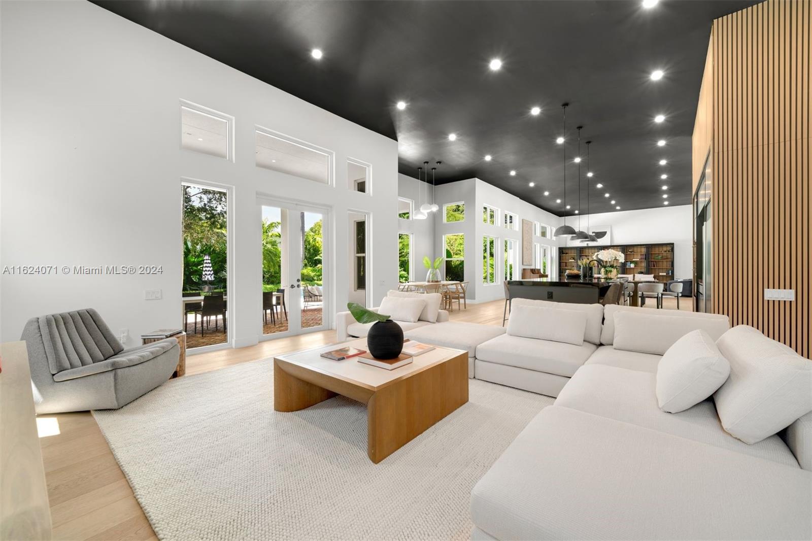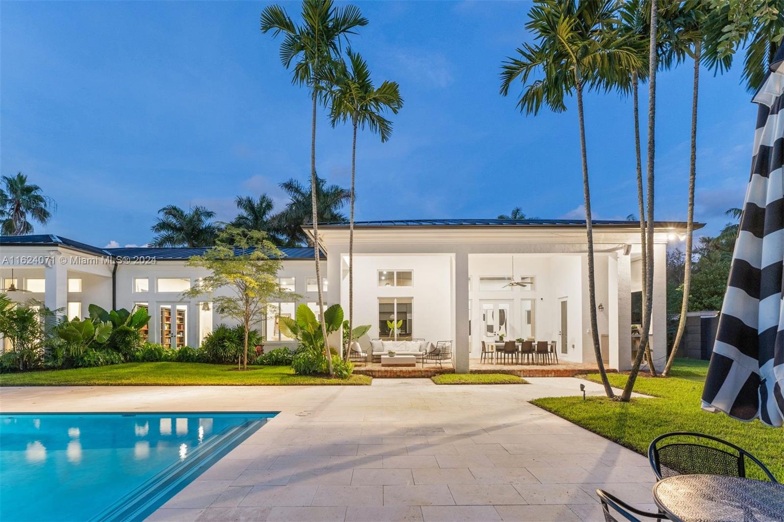 In the heart of East Pinecrest on a private rd in the gated Sanctuary enclave, this 5BD 5.2BA spectacularly redesigned 1-story sits on a professionally landscaped .87 acre. Sophisticated floor plan showcases wide open liv areas, 13-14’ volume ceilings, gourmet kitchen, walk in pantry, wine storage, wide plank wood floors & spacious laundry rm. Luxury primary suite w/office, lavish bath, 2 walk-ins. Chicago brick driveway w/ample parking & 2-car gar w/storage. Relaxing veranda & bbq overlooks new htd saline pool & cool deck, convenient cabana BA. Kids claim their turf w/ backyard soccer field & playground! All impact glass, new metal roof & full house generator. Sidewalk access to Pinecrest Grdns & Comm Cntr, Farmers Mkt. Top schools, bicycle to Red Rd, parks, tennis, Wayside Market & SoMi.