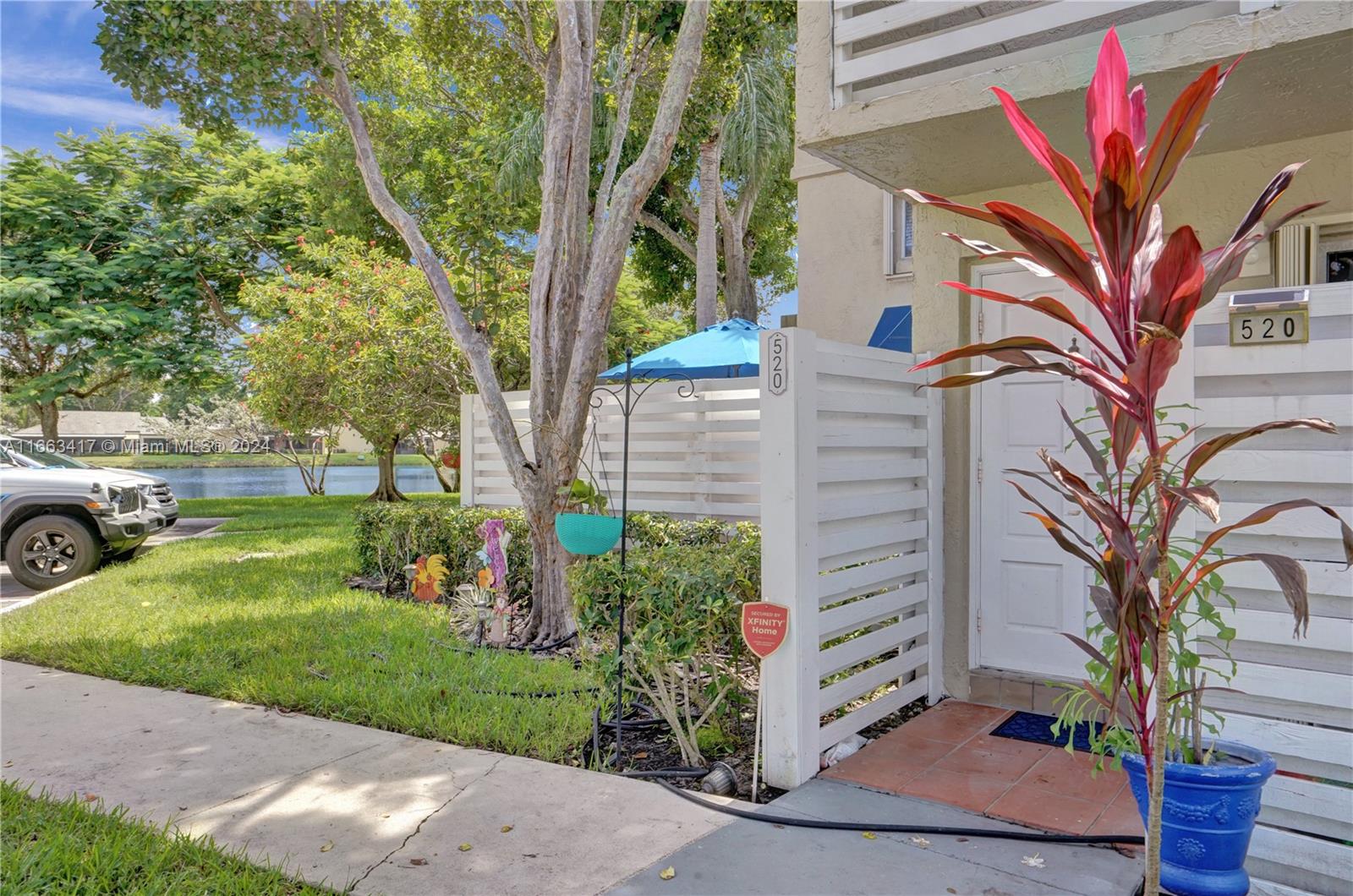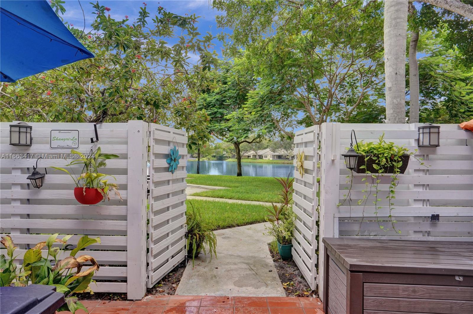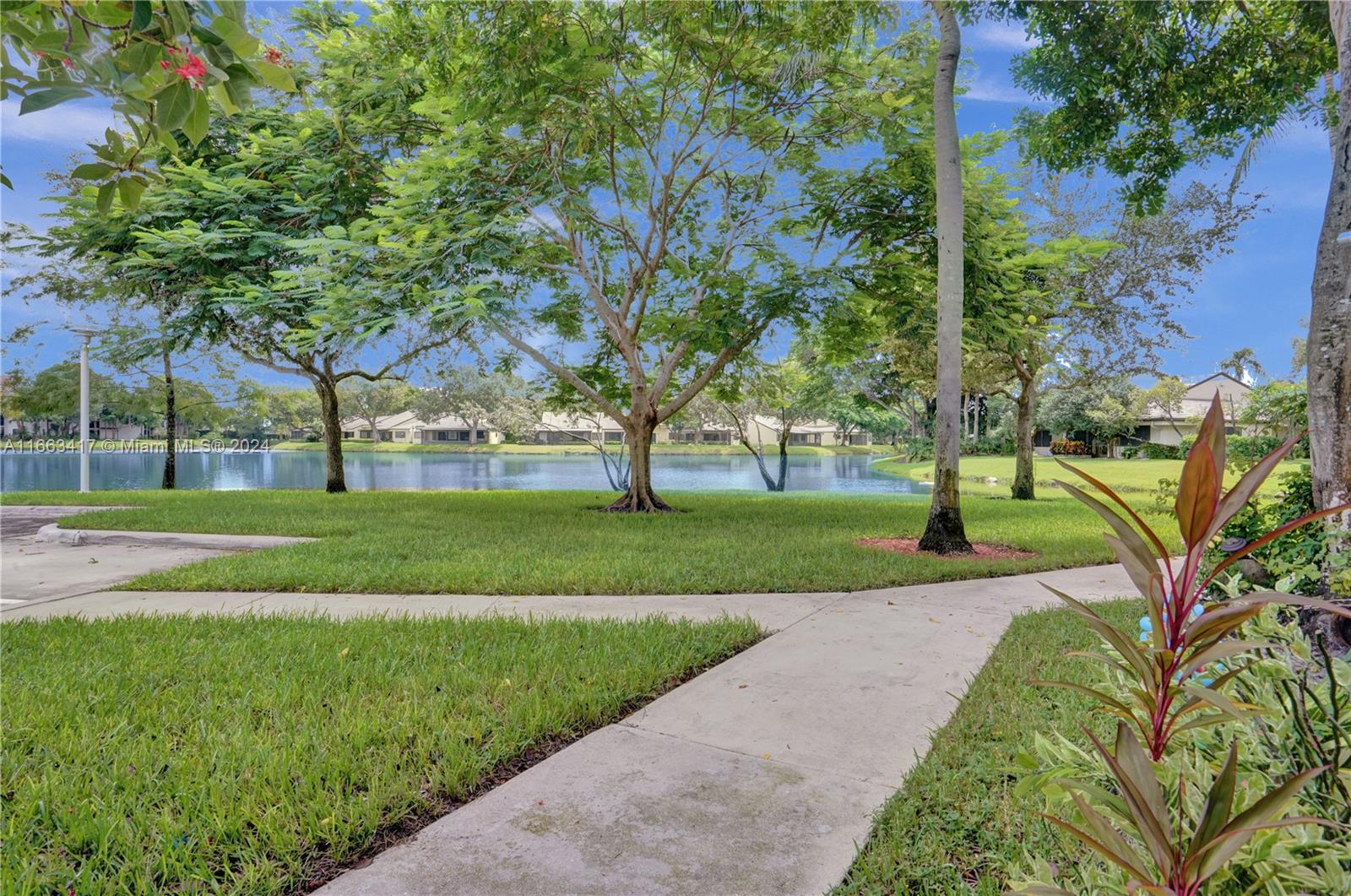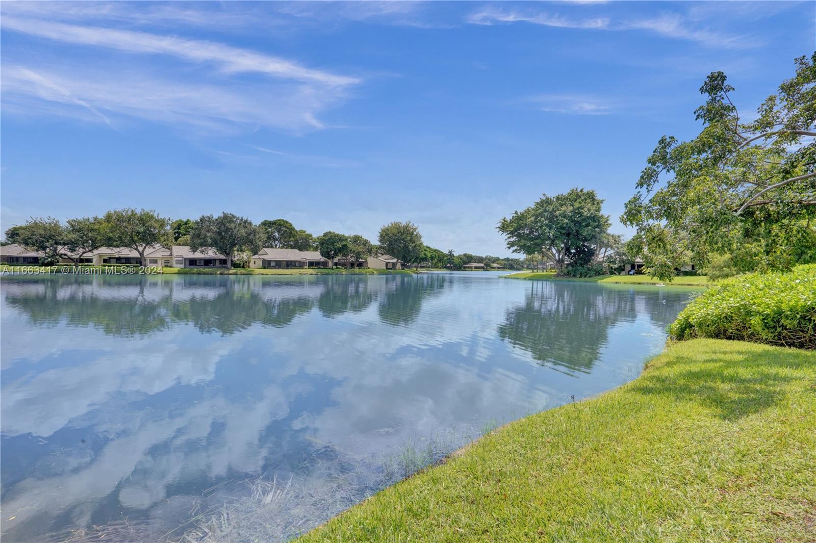 *The most beautiful location in Arbor Courts* Imagine a charming home nestled on a corner lot offering stunning views of a serene lake. Beautiful oversized patio that invites you to relax, perfect for morning coffee enjoying the tranquil water view. Accordion shutters easy to operate. Kitchen has been renovated with beautiful cabinetry and granite counter tops, upgraded bathrooms with elegant tiling, spacious master bedroom with walk-in closet and balcony for evening relaxation or enjoying sun. Retractable awnings in the patio. This lovely home is located close to the pool. Beautiful floor plan, room downstairs. This is a unique opportunity, hurry this lovely home won't last.