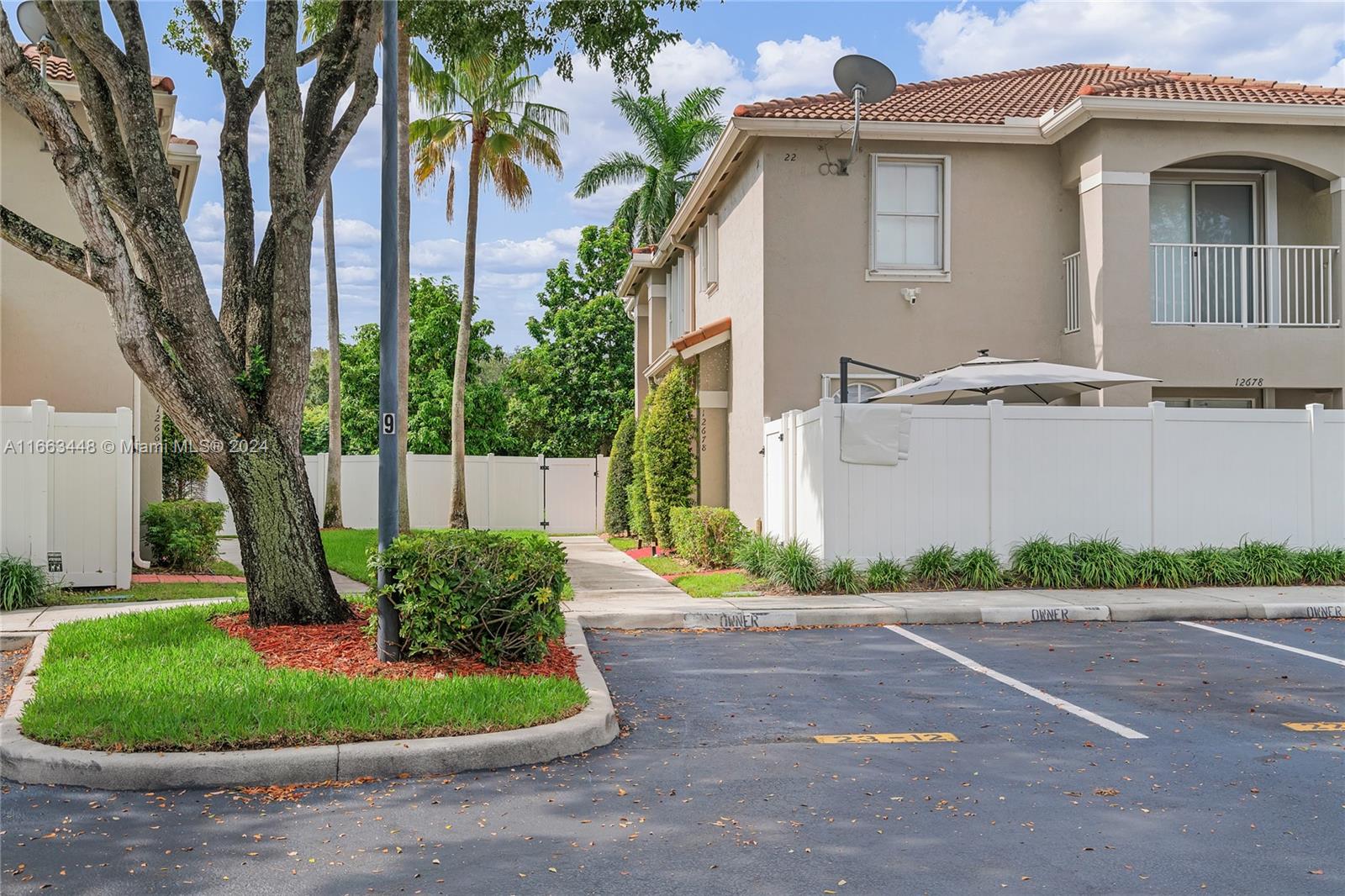 Welcome to Bahia at Vizcaya in Miramar, a short walk from the A-rated Somerset Academy. This 3 bed/2.5 bath home is nestled on the most desirable, privately fenced lot in the community. Enjoy ample living, dining & family room spaces with abundant natural light, a guest bath, & updated kitchen boasting granite countertops, stainless steel appliances & ample storage, & 2 double sliding doors leading to your backyard oasis. The spacious primary bedroom accommodates a king-size bed, with walk-in, secondary closet & en-suite bathroom. HOA fees of just $207/month include 24-hour security, community pool, kids area, & lawn care for your meticulously maintained back yard. Park hassle-free with your assigned space directly in front of your entrance & plenty of visitor parking. Welcome Home!