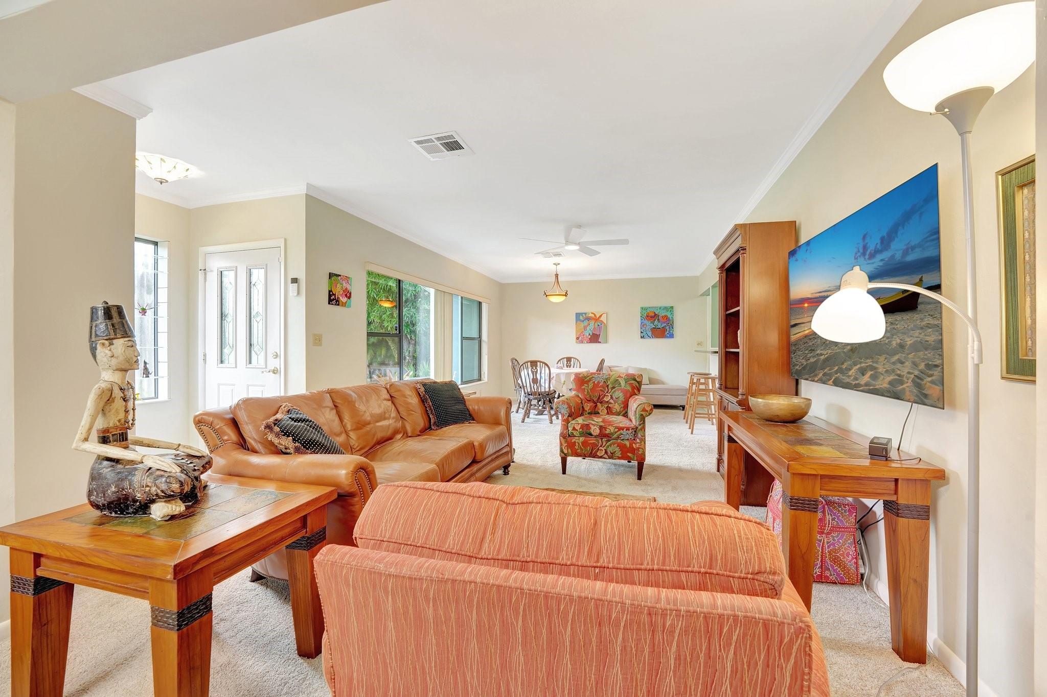 Welcome to this meticulously updated home where no detail has been overlooked! Sitting on a huge backyard, this property offers both space and privacy, lined with 40 full grown mast trees. Whether you're relaxing in the peaceful outdoors or entertaining guests, this backyard is a true retreat. Recent Updates Include: New roof (2022), Brand new fridge, New water heater, New electrical panel, Reverse osmosis system installed in the kitchen, Well water system for the lawn, New security system (Simply Safe) with video doorbell, indoor cameras, and sensors connected to your phone for complete peace of mind. The home boasts beautiful terrazzo floors adding a timeless elegance to the interior. Bring your boat or RV! Plenty of room for parking and no HOA!