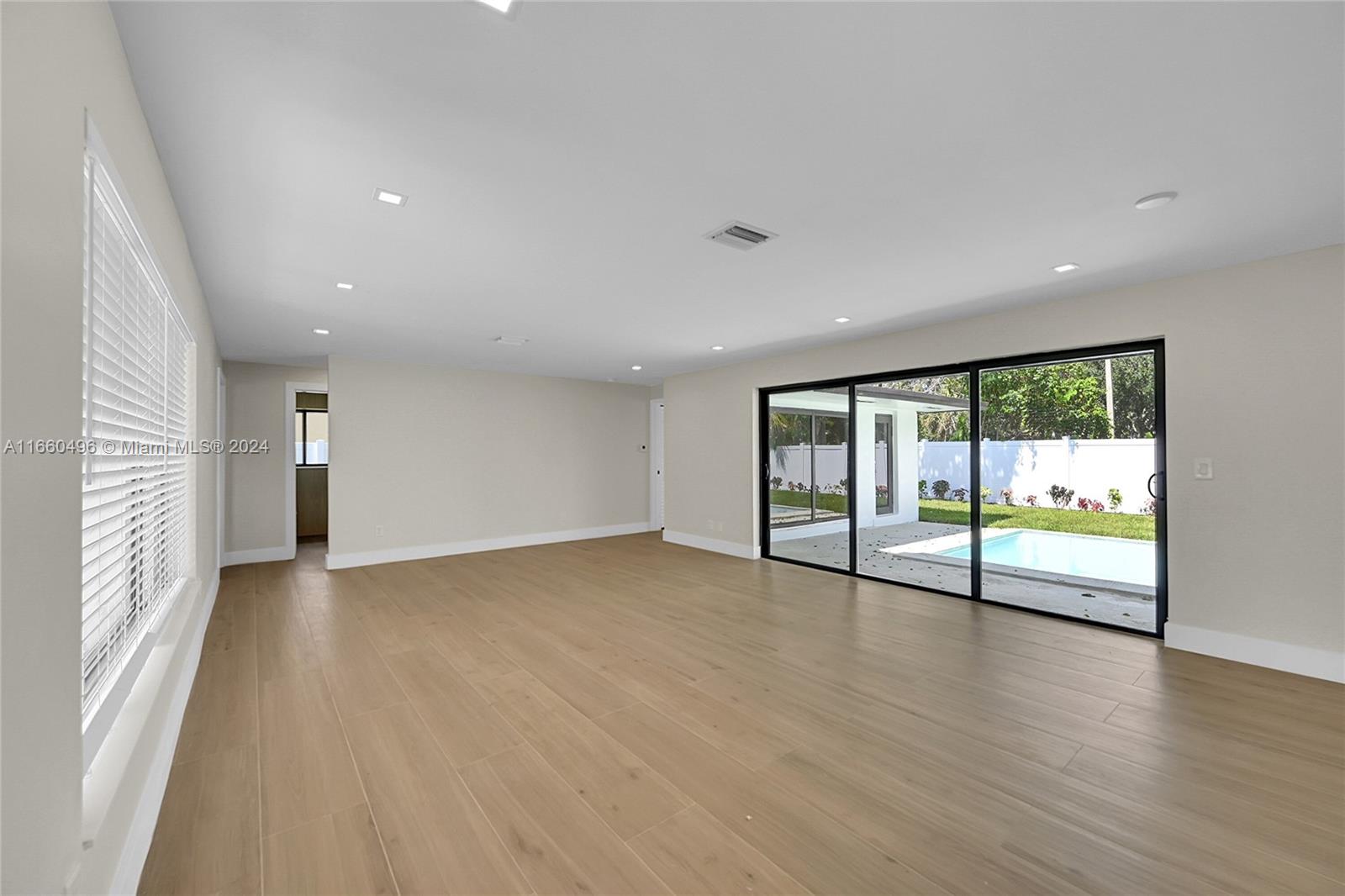 Exquisitely remodeled 4/3 Single Family Residence in the sought-after Garden Isles neighborhood in Pompano Beach. Backs up to beautiful Sgt Kip Jacoby Park. Facilities include rentable pavilion shelters, picnic areas, walking/ jogging track, a playground, tennis and more. Minutes away from prestigious Pine Crest School. The home is only 5 minutes to the beach, 15 minutes to downtown Ft. Laud. and minutes away from I-95 and US-1. Upgrades include a new roof, high impact windows, beautiful porcelain flooring throughout, fully remodeled bathrooms, new HVAC systems to cool the entire home, refurbished pool and equipment, new pool deck, new landscaping w/irrigation system, new fence and much more. Check out the PRIVATE MASTER BEDROOM upstairs with new master bath! Open House Sat 10/12 12-3pm.
