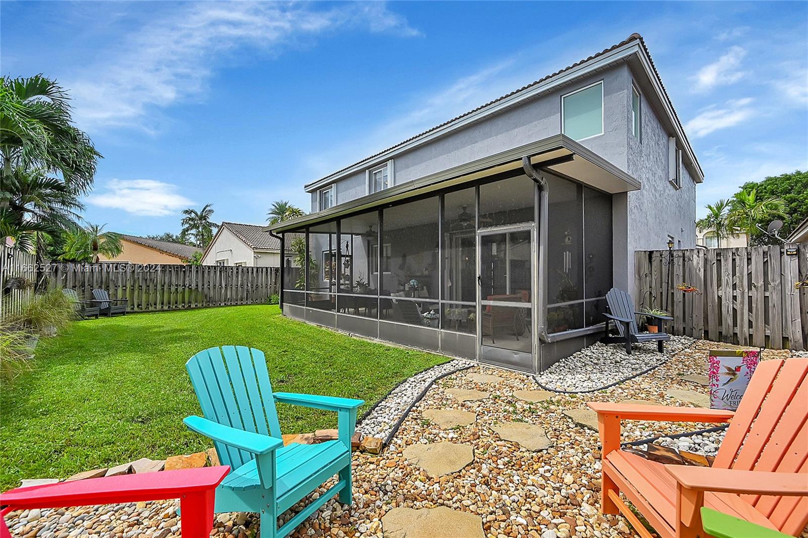 BRAND NEW ROOF! Great opportunity to live in the desirable city of Davie. This two-story house also offers partial impact windows and new water heater. It features a big backyard screen patio with a fenced yard. 4 bedrooms upstairs with 2 baths and 1/2 bath downstairs. Hurricane protected. Separate laundry room. House is nestled in a serene and picturesque community with A+ schools. Whether you're sipping coffee or hosting gatherings, this well maintained house provides plenty of space and natural lightning with high ceilings. The beautiful and friendly community provides easy access to I-595 and airport. Close to shopping and dining options. The Village at Harmony Lake includes swimming pool, tennis courts, handball courts, park and low HOA FEE. Make this your perfect new home!!