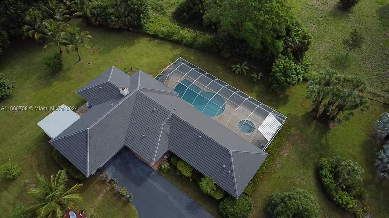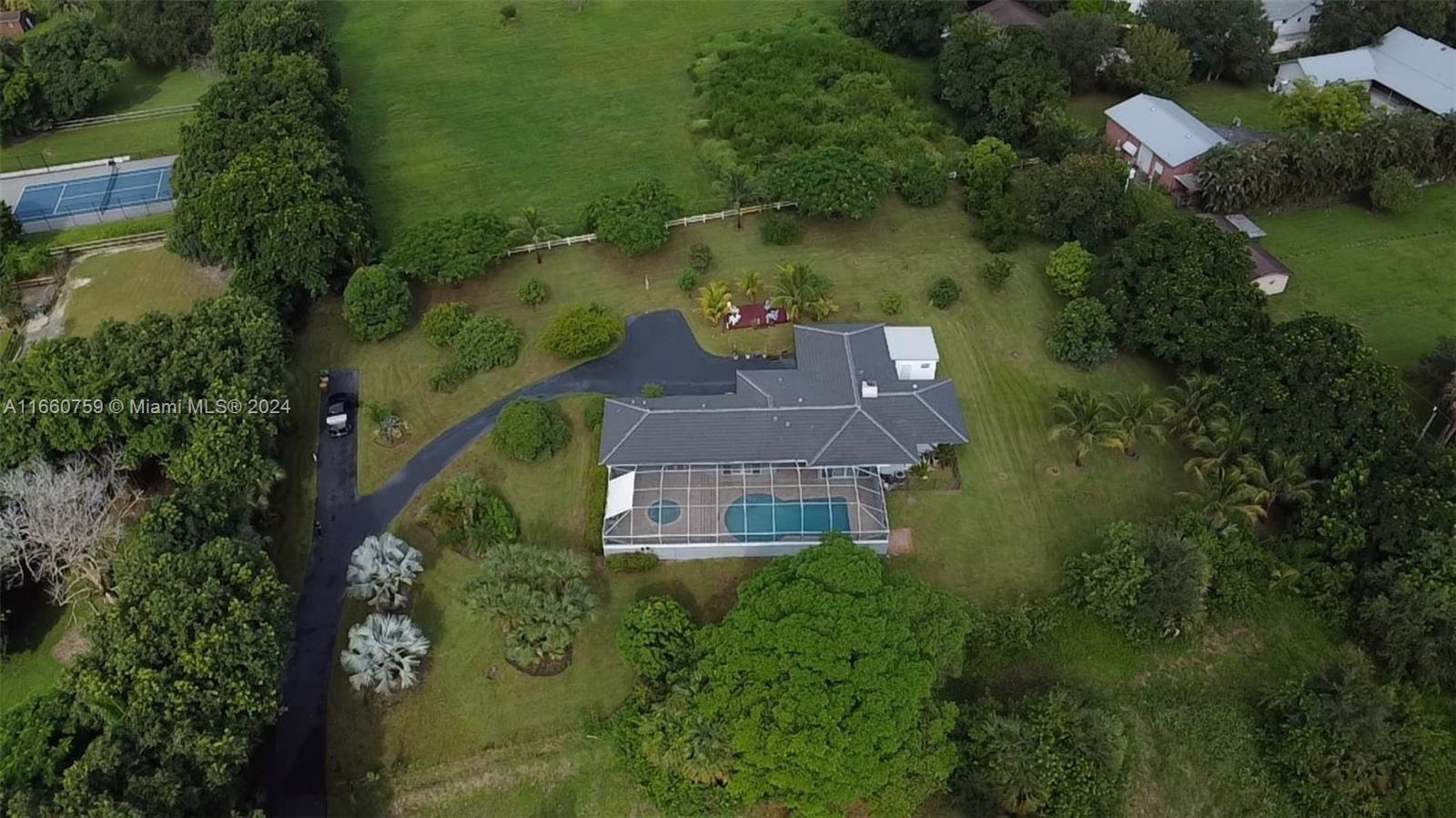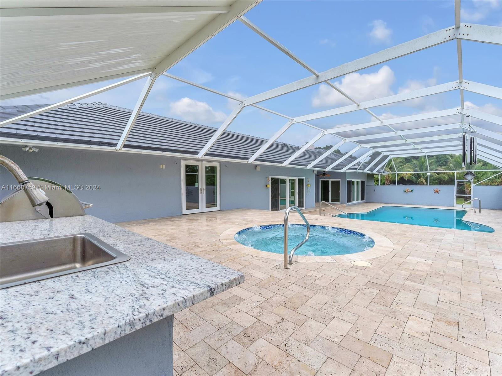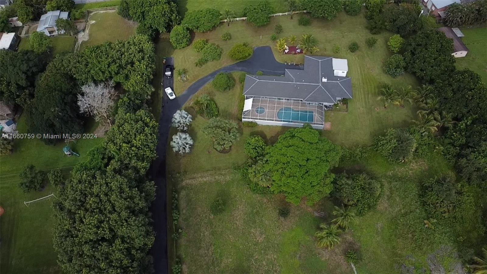***Price Improvement*** Discover a hidden sanctuary on nearly 2 acres of lush land, blending privacy and luxury. This 4-bed, 3.5-bath home includes 2 bonus rooms for work or play, new concrete roof installed last year, recently built wood deck, impact windows, camera alarm system, fireplace, sound system, laundry room and tile flooring throughout. The primary suite is secluded and features a sunken shower, dual sinks, and 2 walk-in closets. All bedrooms are connected to baths for convenience. The kitchen boasts stainless steel appliances and a water filtration system. Outside, enjoy a screened lanai with an expansive pool, spa, outdoor grill, many fruit trees—mango, avocado, banana, and more— a sprinkler system, and 2-car garage complete this perfect retreat.