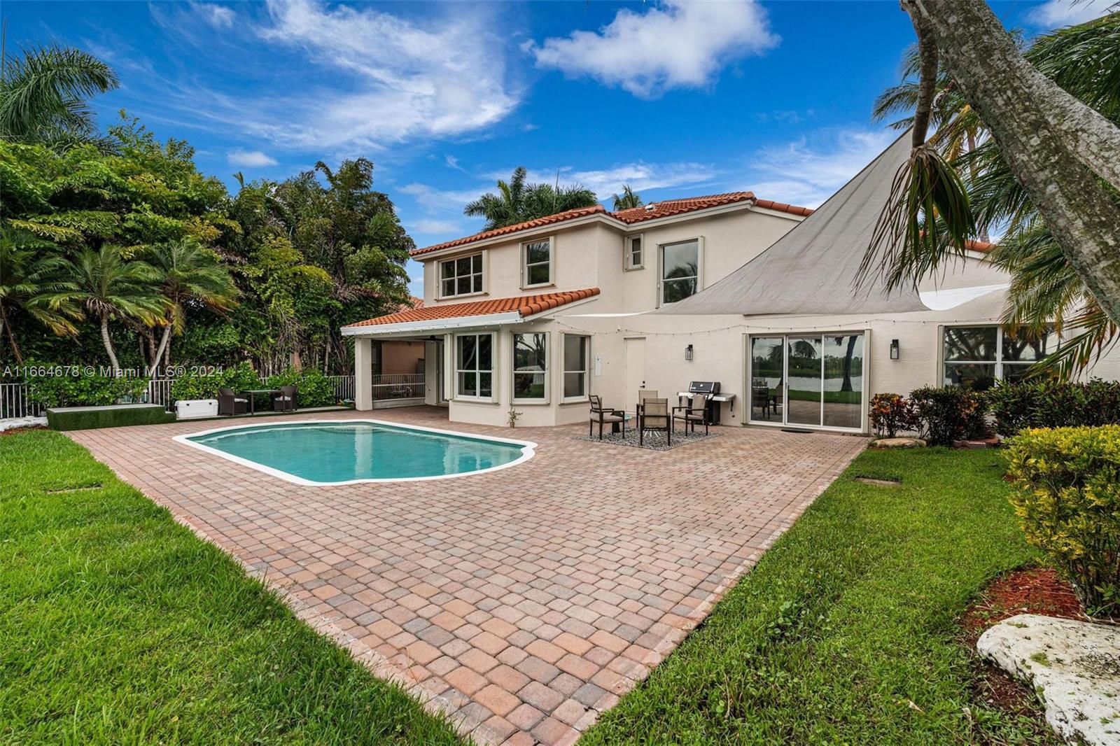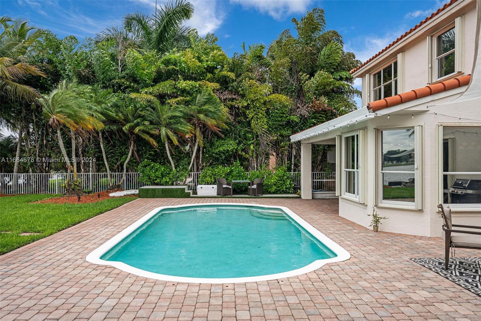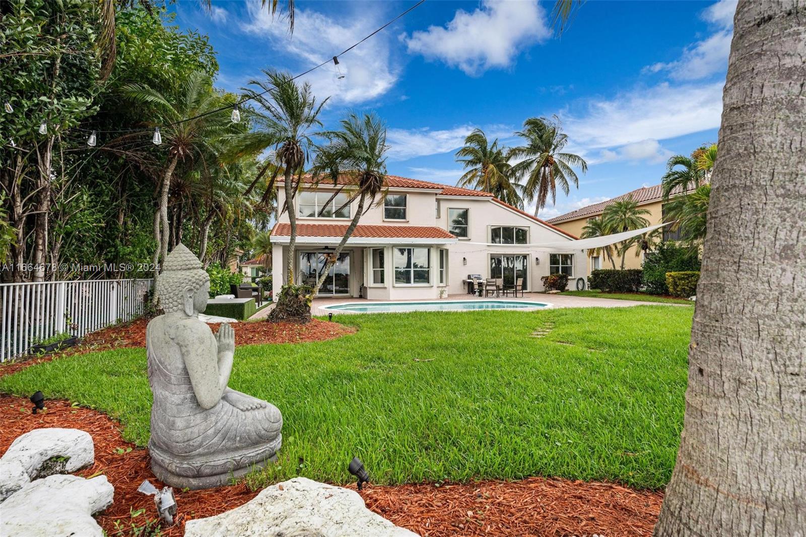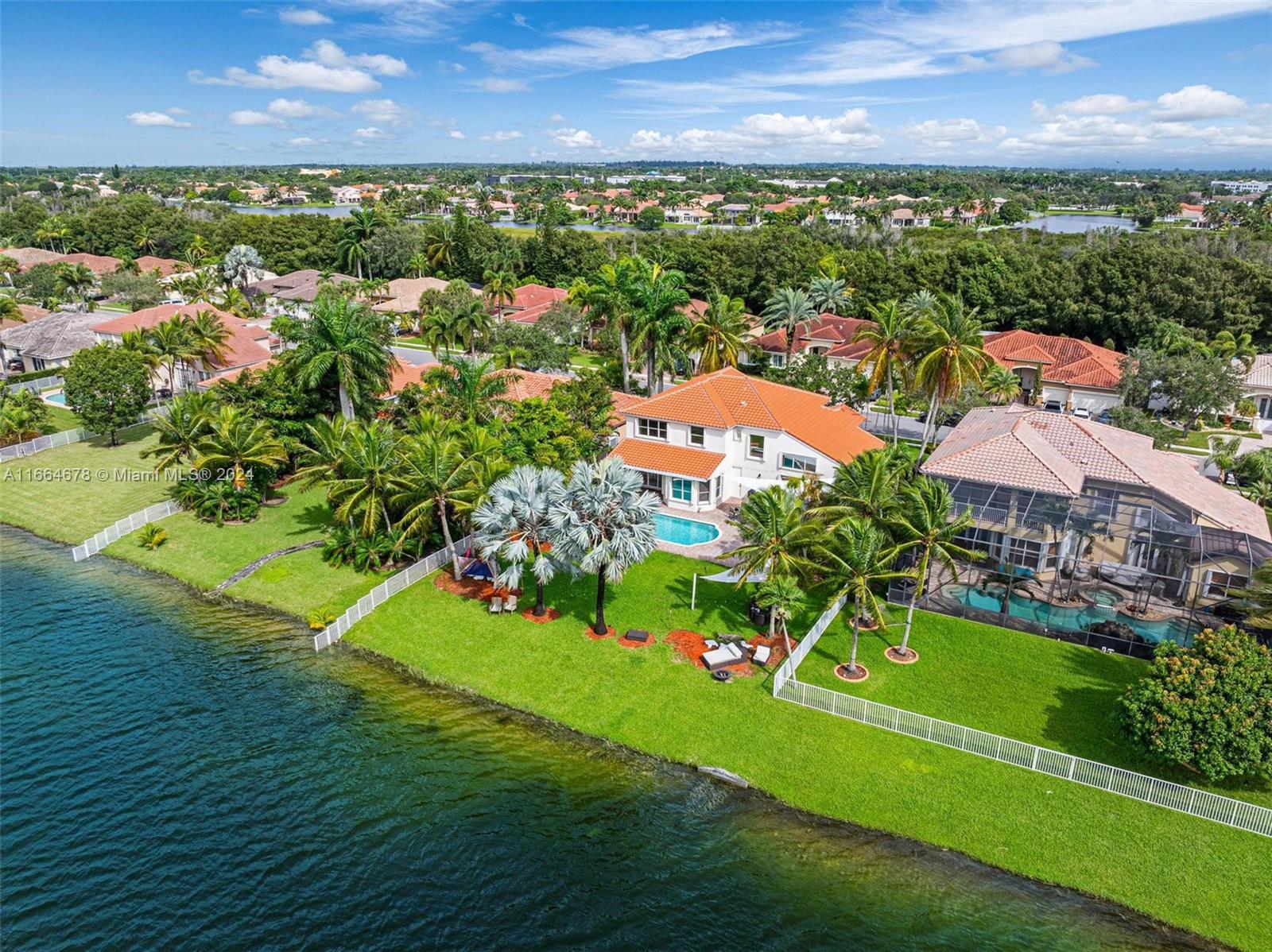 Beautifully renovated contemporary 5 bedroom, 3.5 bath home complete with a 2 car garage on a 12,000+ square foot lot in the coveted gated community of Encantada in West Pembroke Pines. Enjoy the modern look of large format porcelain tiles throughout the main living area. The kitchen is fully equipped with new Café appliances and a new induction cooktop (2024). New washer and dryer included! Single garage space is under air and converted to a 7 seat Dolby Atmos home cinema room. Freshly painted with new outlets, Lutron Smart light switches and new engineered wood flooring upstairs. Live worry free with a new roof from 2023! The outdoor space is an entertainer's dream with a beautiful pool and covered terrace. Home is on a peaceful lake with unobstructed views for the ultimate zen retreat.
