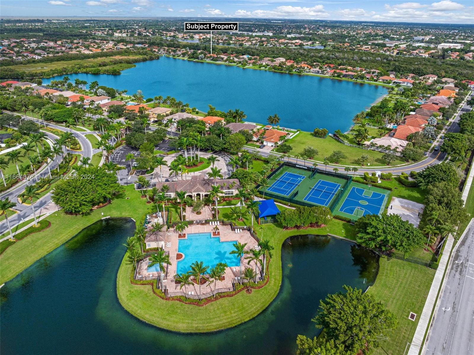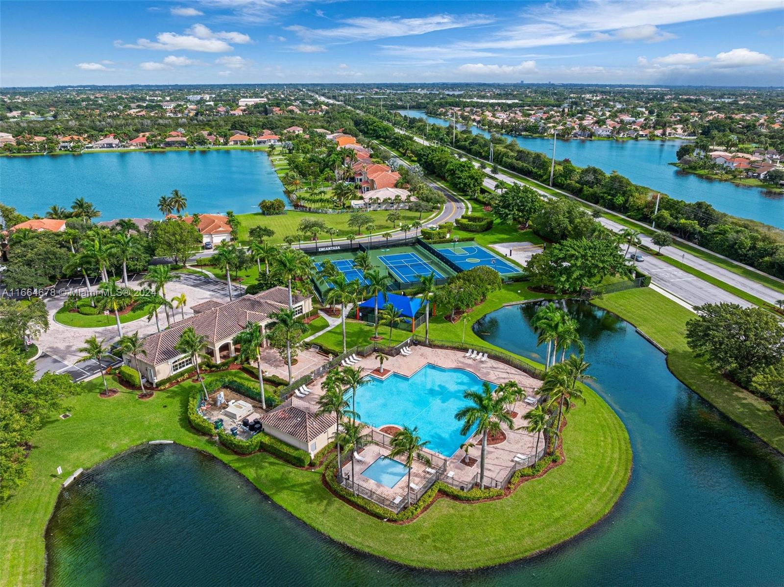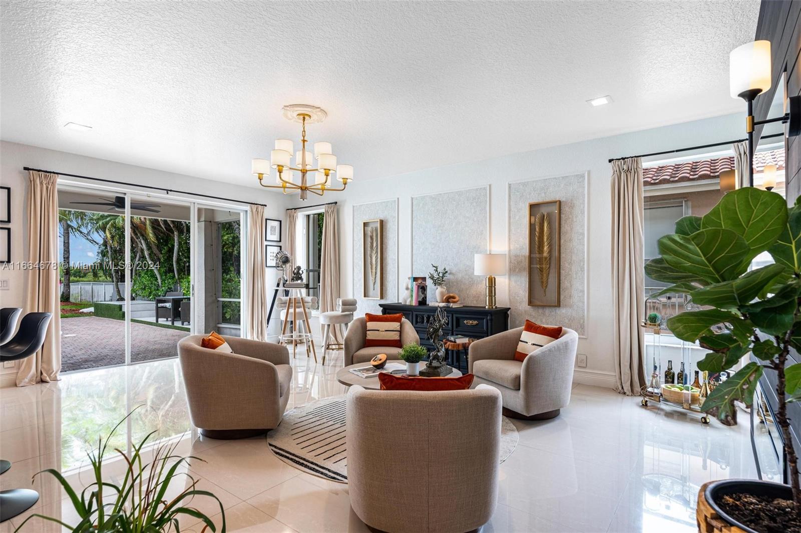 Beautifully renovated contemporary 5 bedroom, 3.5 bath home complete with a 2 car garage on a 12,000+ square foot lot in the coveted gated community of Encantada in West Pembroke Pines. Enjoy the modern look of large format porcelain tiles throughout the main living area. The kitchen is fully equipped with new Café appliances and a new induction cooktop (2024). New washer and dryer included! Single garage space is under air and converted to a 7 seat Dolby Atmos home cinema room. Freshly painted with new outlets, Lutron Smart light switches and new engineered wood flooring upstairs. Live worry free with a new roof from 2023! The outdoor space is an entertainer's dream with a beautiful pool and covered terrace. Home is on a peaceful lake with unobstructed views for the ultimate zen retreat.