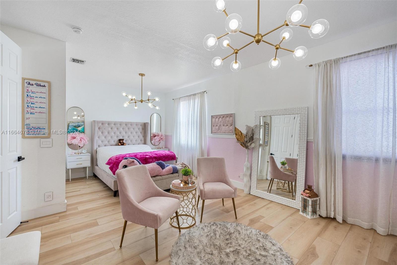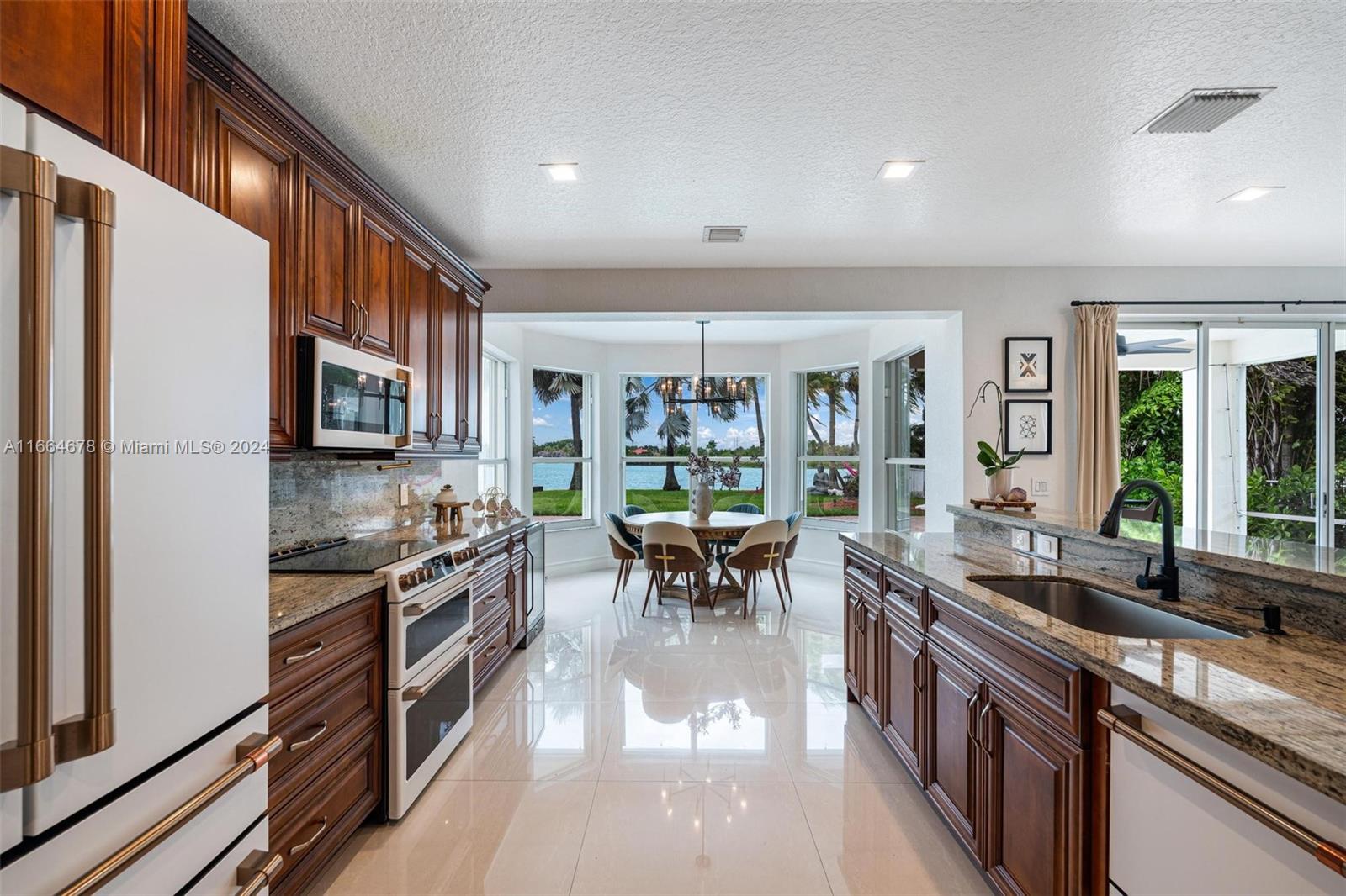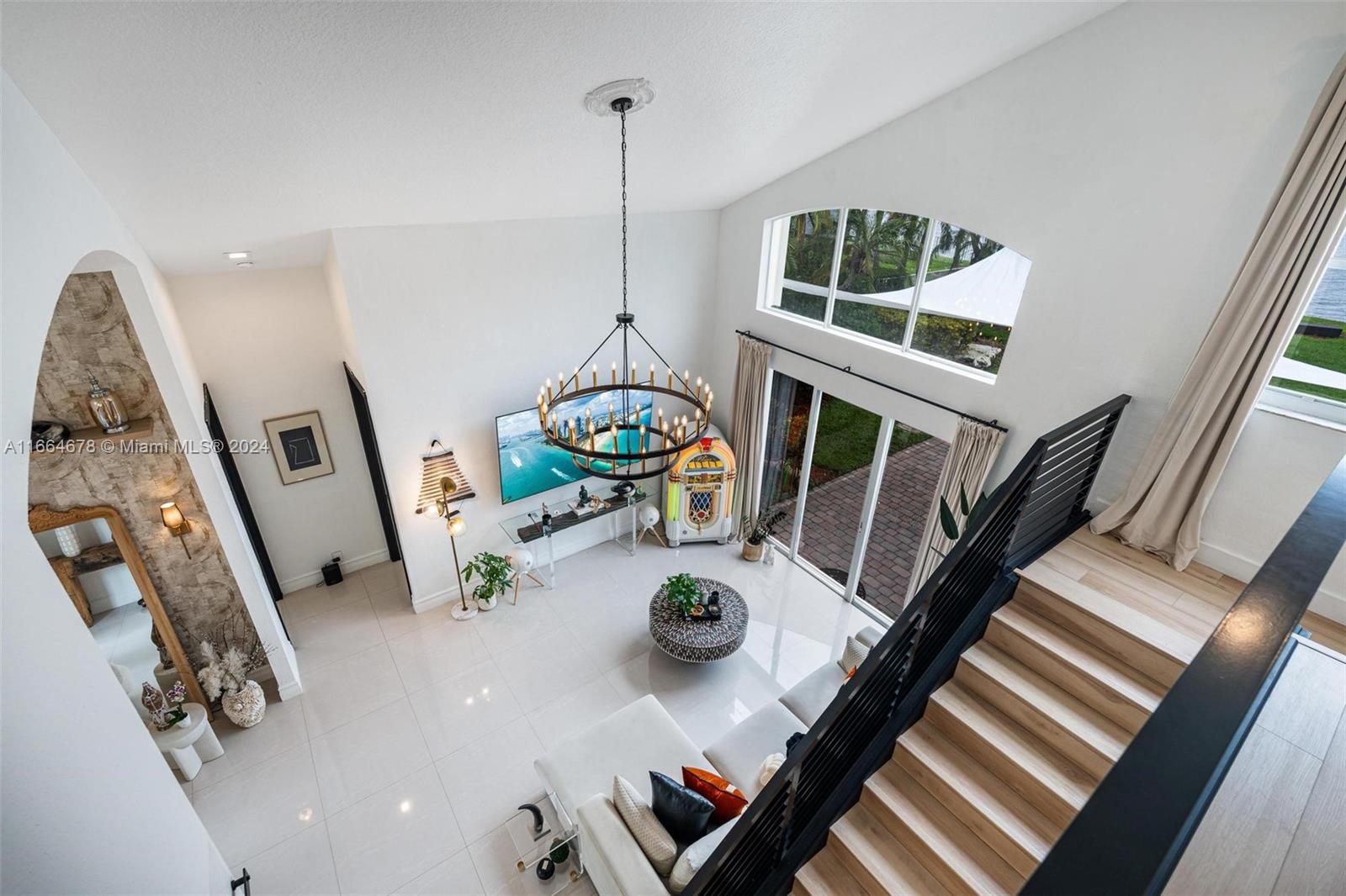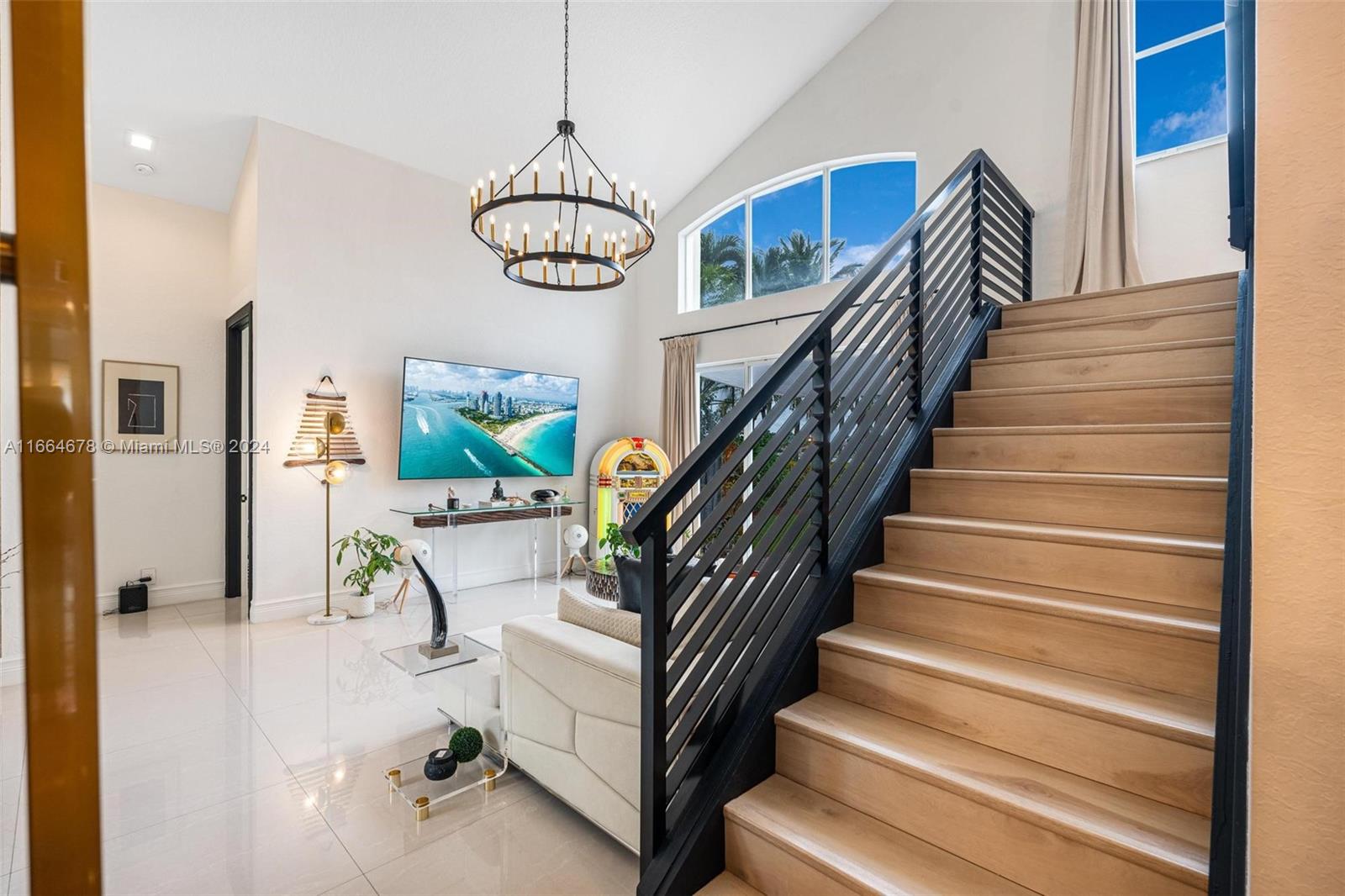 Beautifully renovated contemporary 5 bedroom, 3.5 bath home complete with a 2 car garage on a 12,000+ square foot lot in the coveted gated community of Encantada in West Pembroke Pines. Enjoy the modern look of large format porcelain tiles throughout the main living area. The kitchen is fully equipped with new Café appliances and a new induction cooktop (2024). New washer and dryer included! Single garage space is under air and converted to a 7 seat Dolby Atmos home cinema room. Freshly painted with new outlets, Lutron Smart light switches and new engineered wood flooring upstairs. Live worry free with a new roof from 2023! The outdoor space is an entertainer's dream with a beautiful pool and covered terrace. Home is on a peaceful lake with unobstructed views for the ultimate zen retreat.