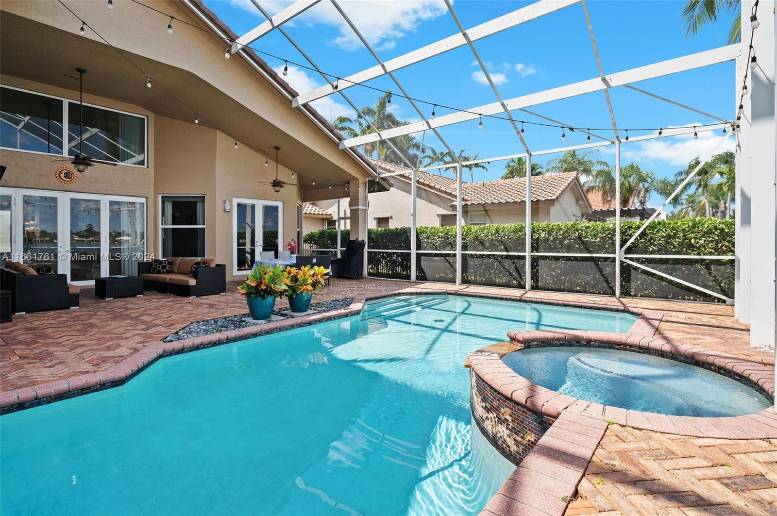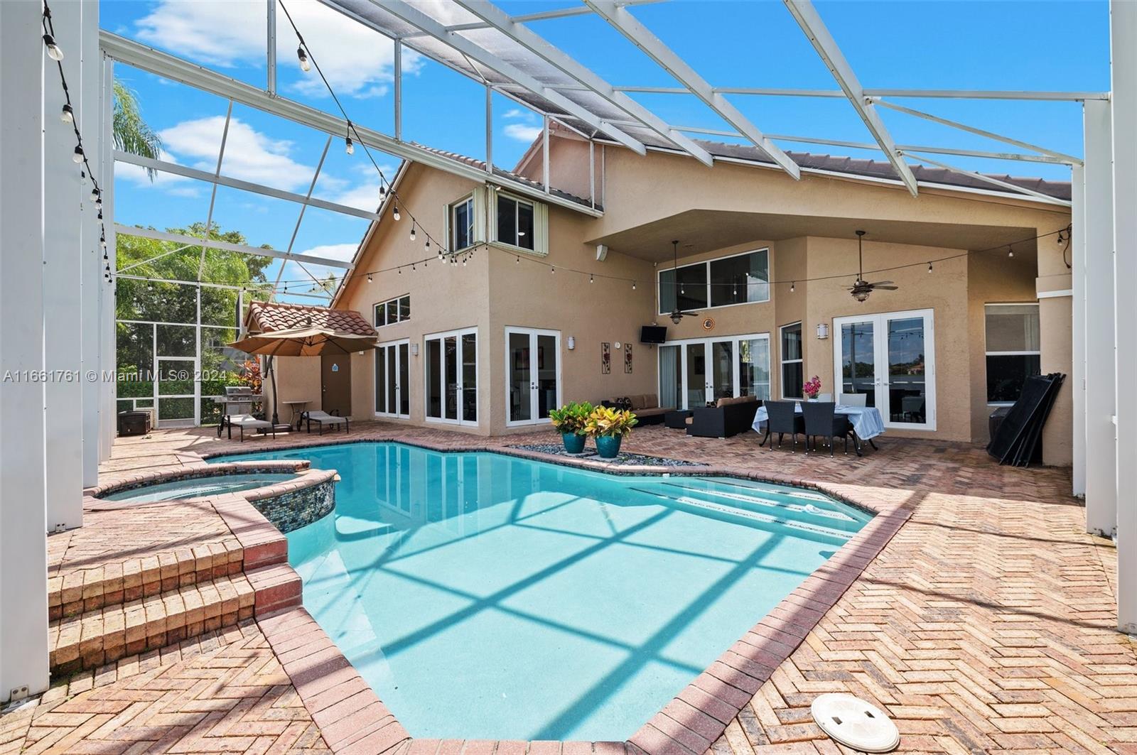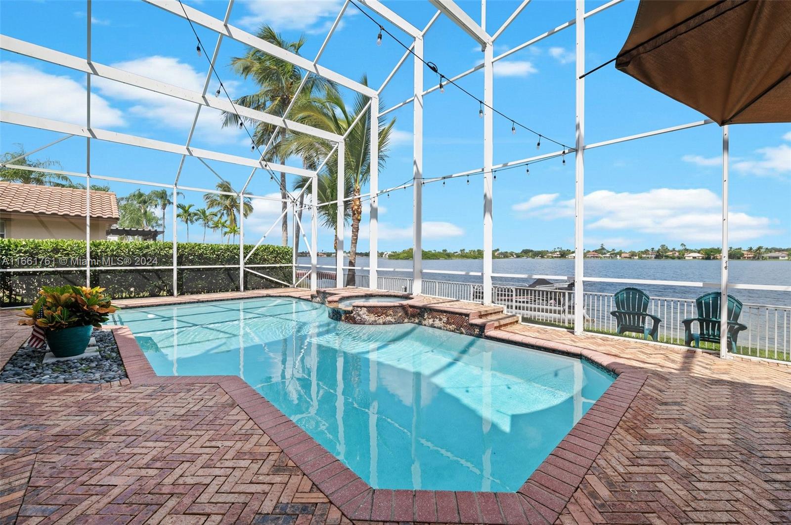 Enjoy breathtaking sunset views from this beautifully maintained 4-bedroom home in the prestigious Silver Lakes - The Isles gated community. Features an open-concept design with high ceilings, porcelain tile flooring, and natural light. Master bedroom is on the first floor and includes a luxurious whirlpool tub. All bedrooms are generously sized with built-in closets. Embrace stunning views from the resort-style screened pool and Jacuzzi, overlooking the tranquil lake. The property includes lake access and comes with a Pontoon Boat—ideal for water enthusiasts. Additional features include impact doors and windows, security system, laundry room, and a 3-car garage. Conveniently located near A-rated schools, offering the Florida lifestyle with luxury, comfort, and exceptional outdoor living.