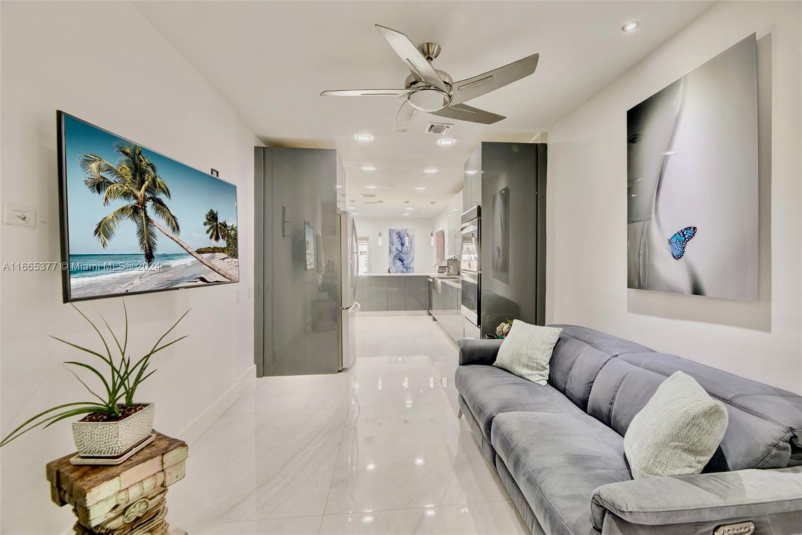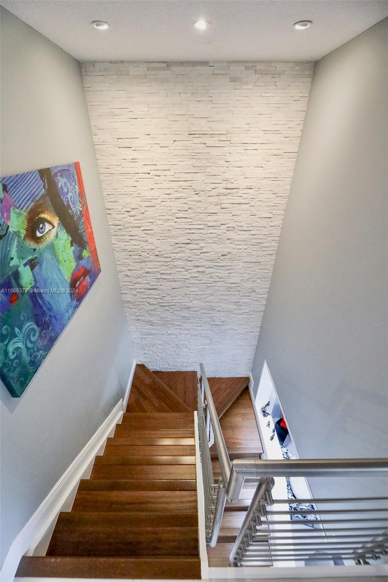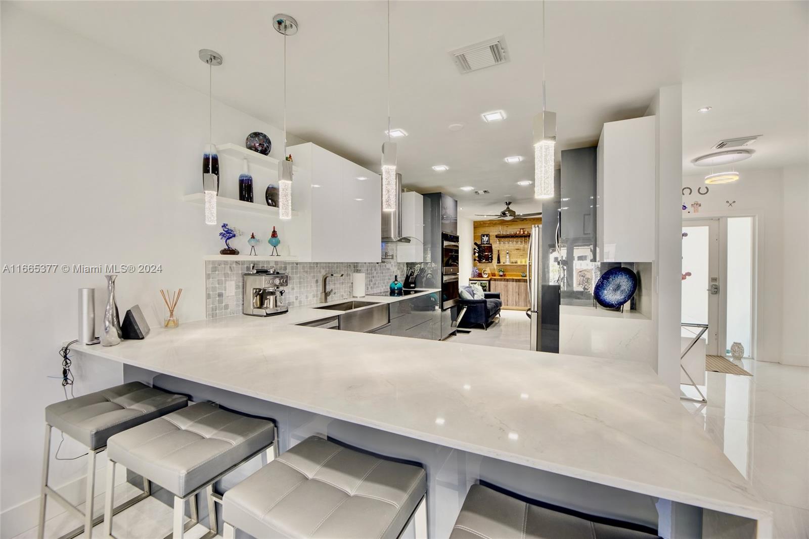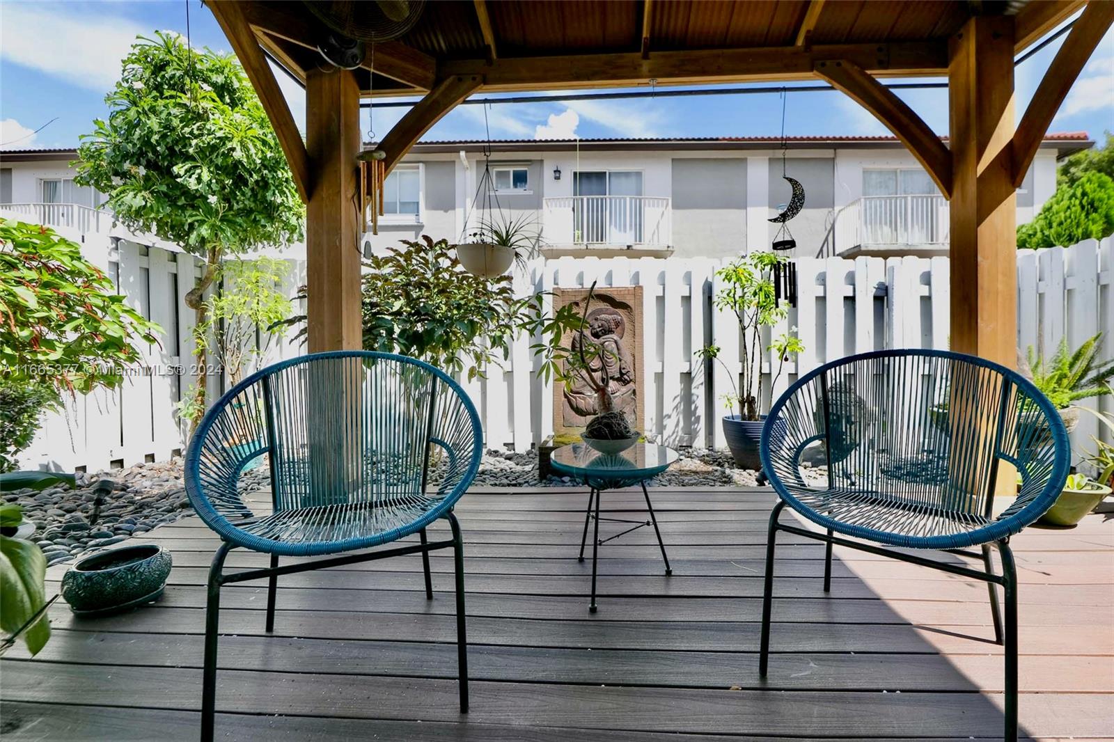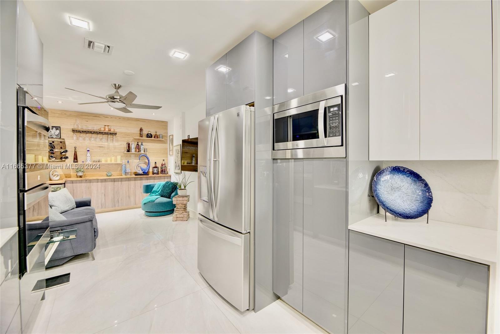 IMPECCABLY RENOVATED MODERN DESIGNER DREAM TOWNHOME. WALK INTO THE HOME'S FOYER AND YOU WILL NOTICE THE BEAUTIFUL ITALIAN PORCELAIN 48"X48" TILE RECENTLY INSTALLED. EXPERTLY DONE KITCHEN IN ITALIAN-STYLE CABINETS, DOUBLE WALL OVEN AND EXPOSED HOOD OVER COOKTOP. GARAGE CONVERTED INTO AN EXTENDED DEN/BAR/LIBRARY AREA OFF THE KITCHEN. SPACIOUS FAMILY ROOM AND DINING ROOM. UPSTAIRS PRIMARY BEDROOM IS SPACIOUS FEATURING A WALK-IN CLOSET AND BALCONY OVERLOOKING THE PATIO. RENOVATED PRIMARY BATHROOM WITH HUGE WALK-IN SHOWER. SECOND BATHROOM UPSTAIRS ALSO RECENTLY RENOVATED TO TODAY'S DESIGNER AESTHETIC. OUTDOOR PATIO WITH PERGOLA OFFERS A SERENE RETREAT & ENTERTAINING AREA. HURRICANE IMPACT WINDOWS & DOORS. TWO CAR DRIVEWAY & PLENTY OF GUEST PARKING IN FRONT. OK TO LEASE.