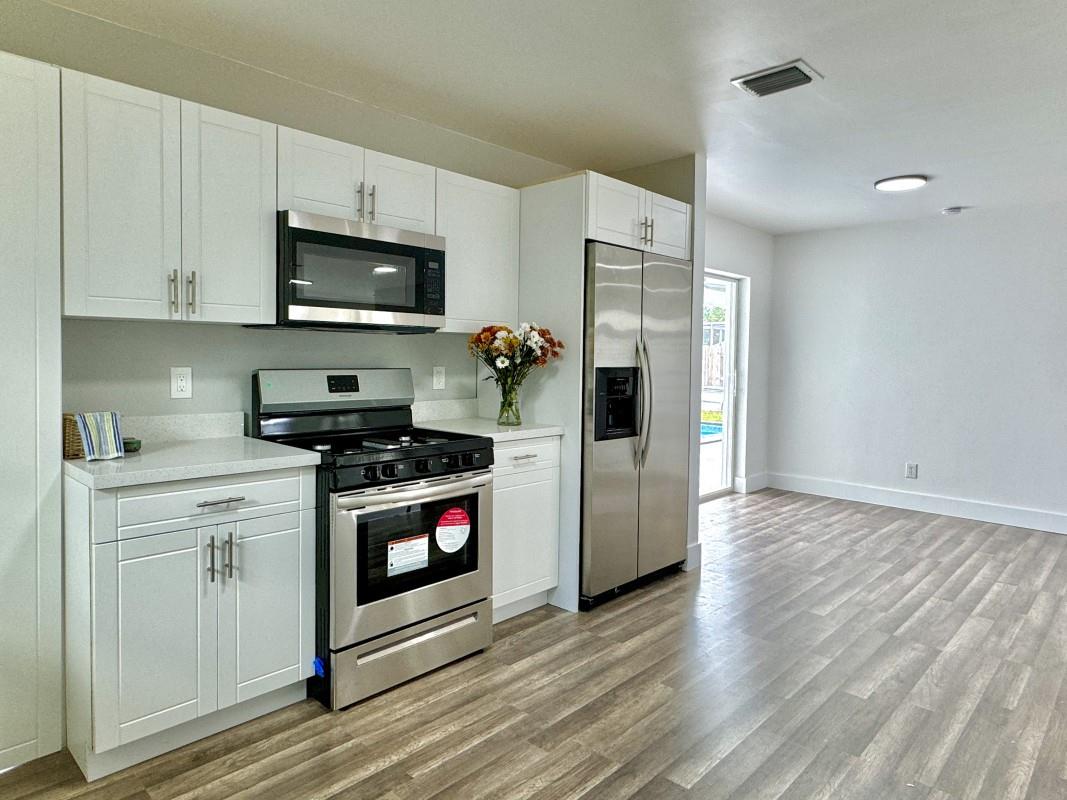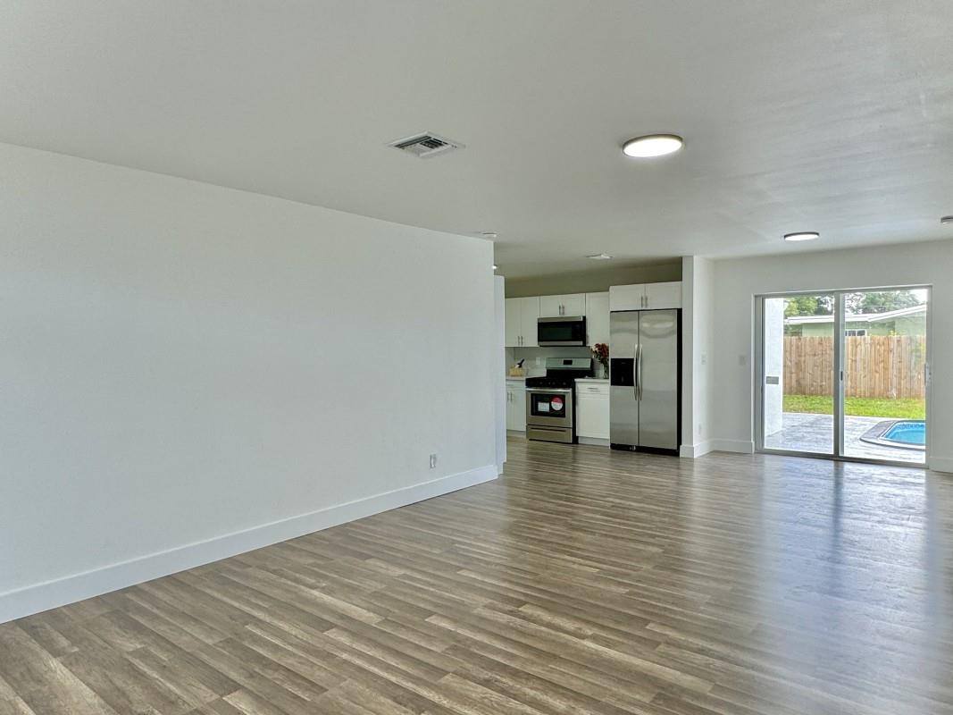 Beautifully Renovated 4-Bedroom Home with Pool and Spacious Living! Move-in ready! This fully upgraded 4-bedroom, 2-bathroom home features a modern kitchen, new flooring, updated bathrooms, enhanced lighting, and spacious closets. Enjoy the large living and dining areas, perfect for custom furnishing. The backyard offers a stunning pool and terrace for entertaining. Plus, a covered garage provides flexible space for parking or storage. Ideal for families ready to start their new life!