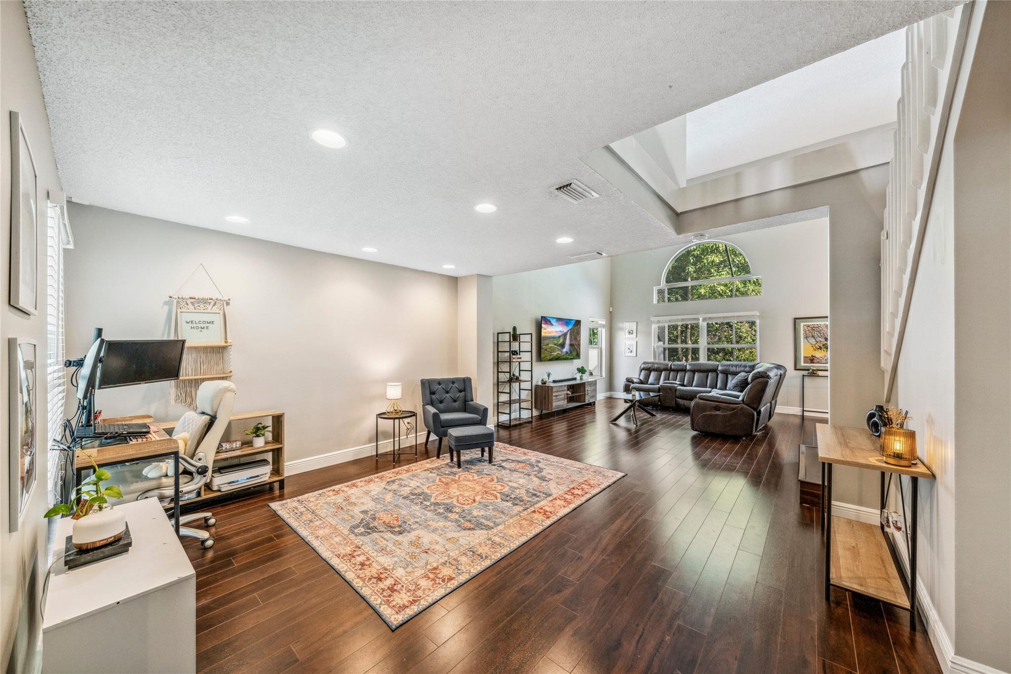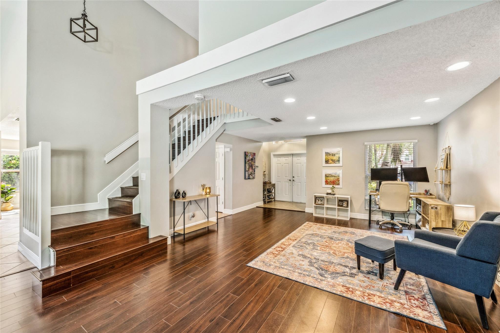 Picture perfect in Parkland!! This lovely 4 bedroom/2.5 bathroom home in highly-sought Country's Point is move-in ready! Situated on a quiet cul-de-sac, this home is stunning inside & out! Fantastic features include IMPACT windows & doors; newer (2015) roof; engineered wood floors in family room & all bedrooms; updated kitchen w/white cabinets, granite counters, stainless steel appliances & tiled backsplash; renovated bathrooms, including master w/Roman tub; newly resurfaced, screen-enclosed pool; newly fenced and lushly landscaped backyard; 240V EV charging station; newer washer & dryer; upgraded light fixtures and much more! Outstanding gated community offers the best of Parkland...A-rated schools; convenient to nearby parks, shops and restaurants! And low HOA fee!(open 9/29 11:30-2:00)