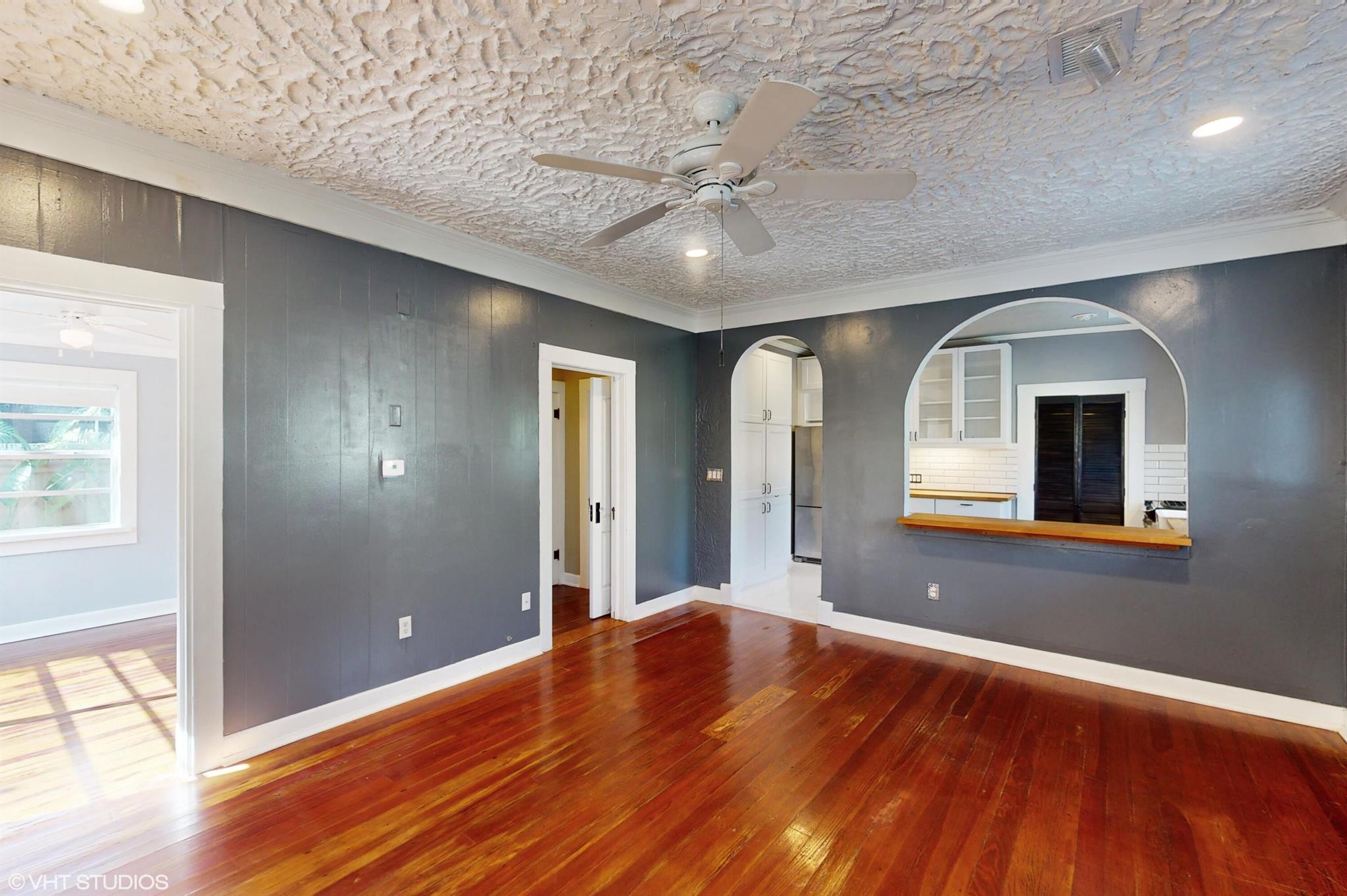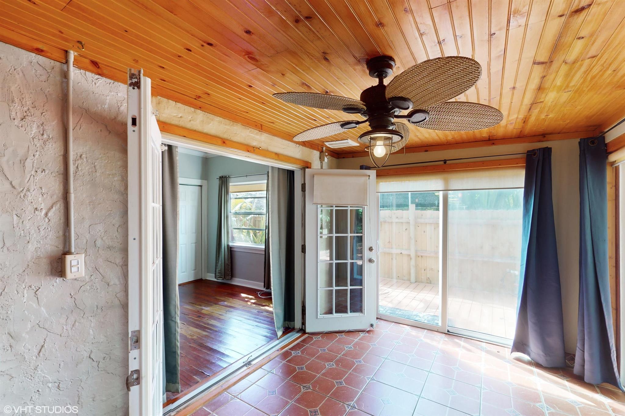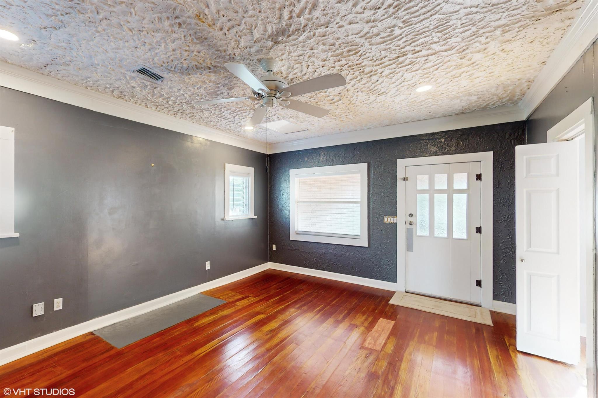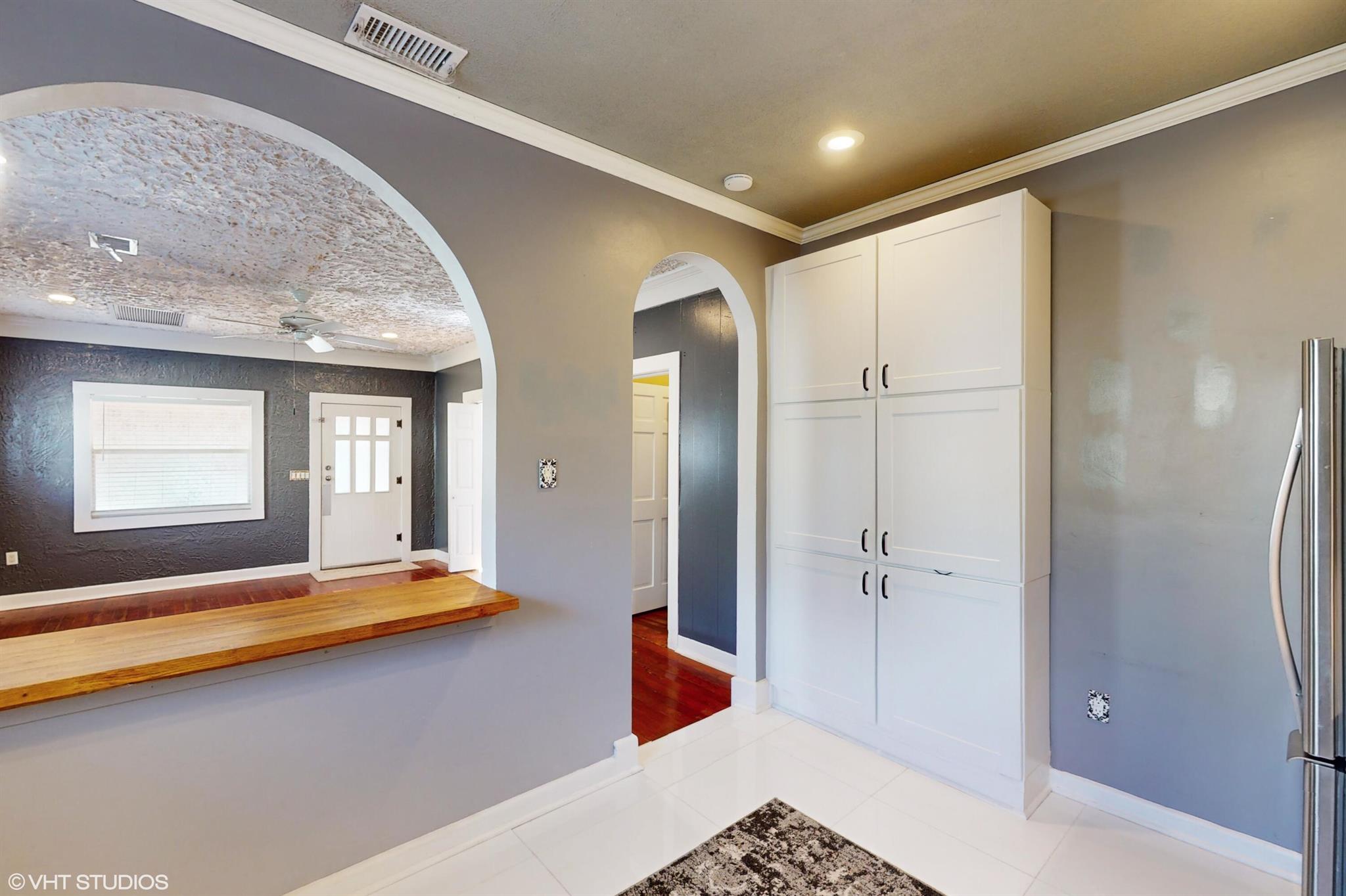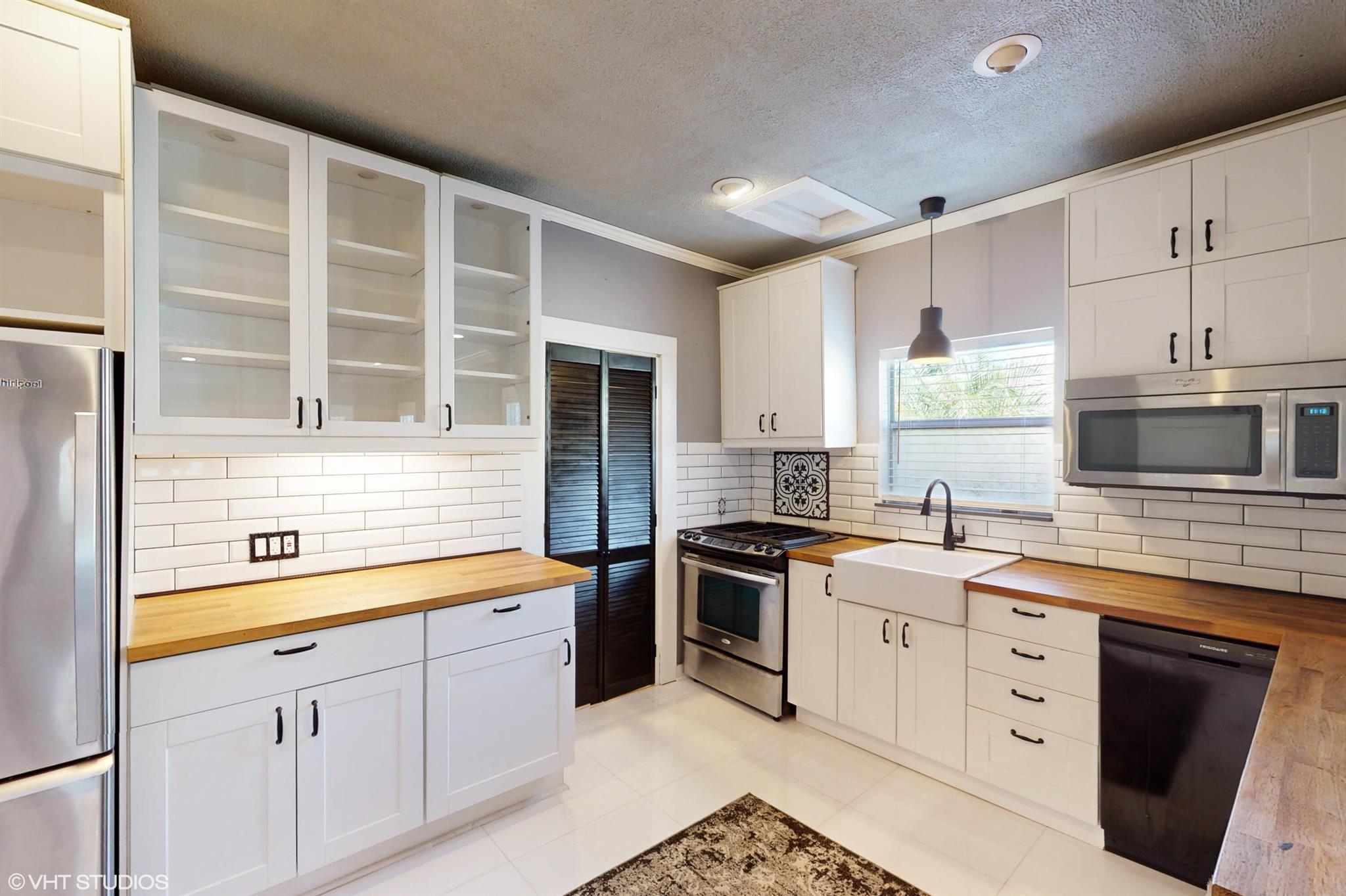 Step into this charming Spanish-style 2-bedroom, 1-bathroom home, where classic design meets modern comfort. The eye-catching exterior features a beautifully landscaped front yard, complete with vibrant greenery and a welcoming, arched front porch. The striking tiled entryway leads you into a home full of character.Inside, the spacious living room showcases rich hardwood floors, archways, and a textured ceiling with recessed lighting, adding a touch of elegance and warmth. The updated kitchen boasts stunning white shaker cabinets, butcher block countertops, stainless steel appliances, and a stylish subway tile backsplash. A sleek gas range and modern farmhouse sink complete the look, making this kitchen a true culinary haven. The Florida room offers additional space for relaxation.