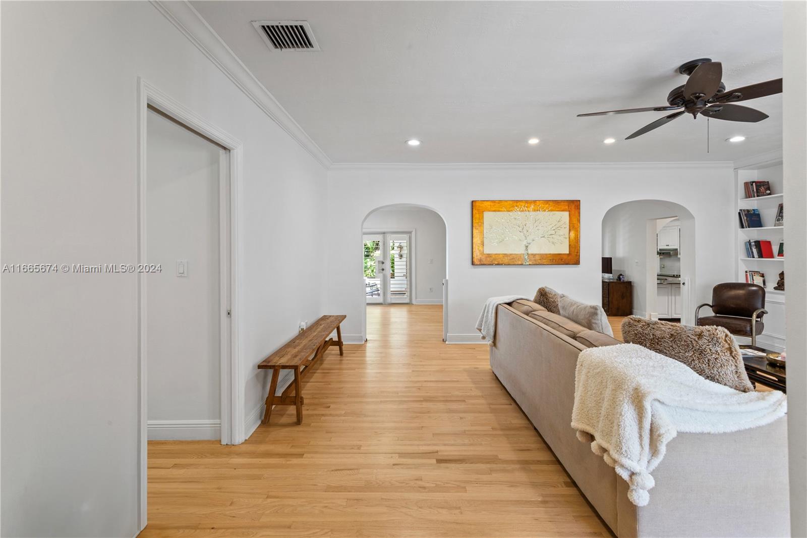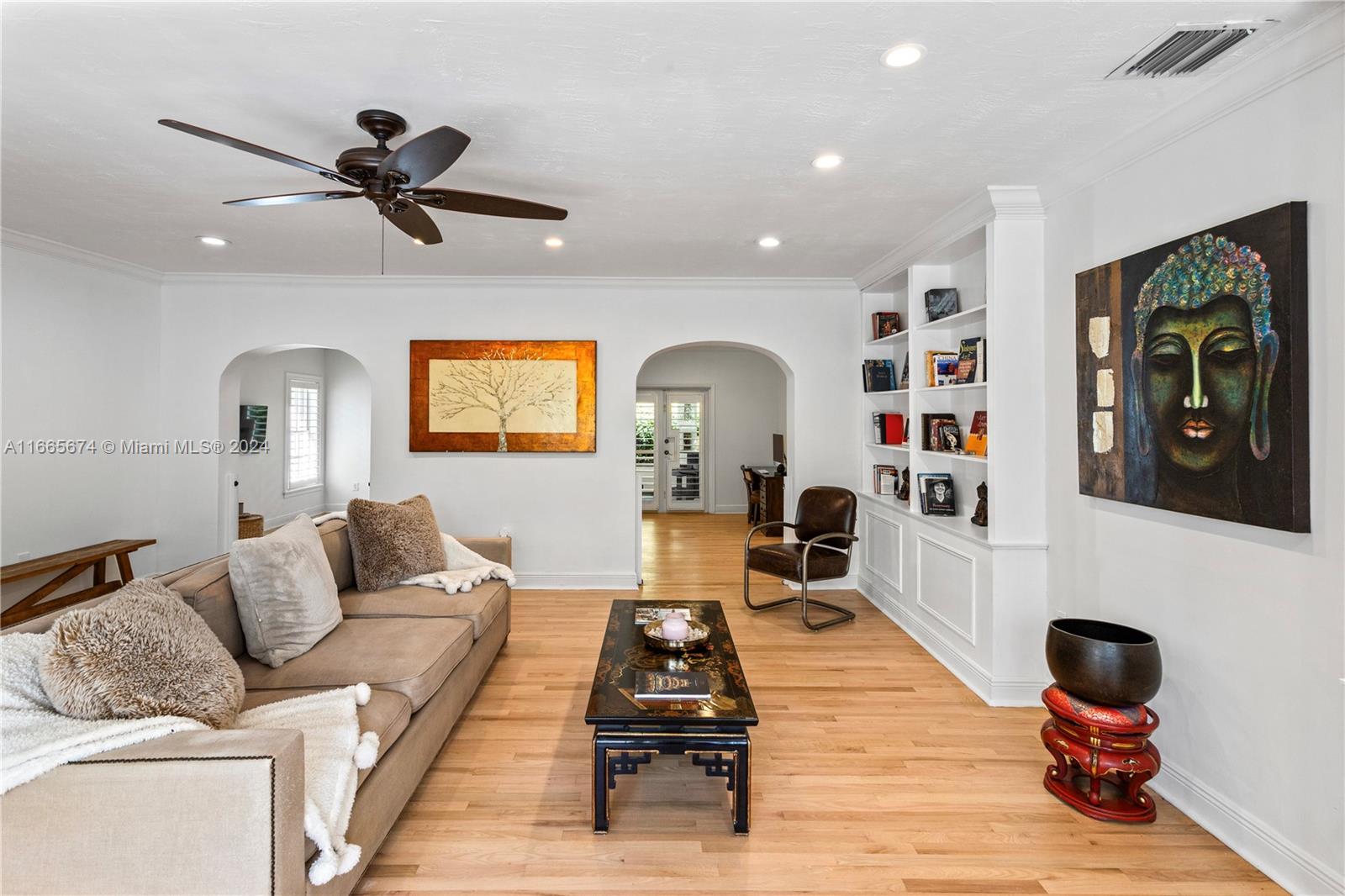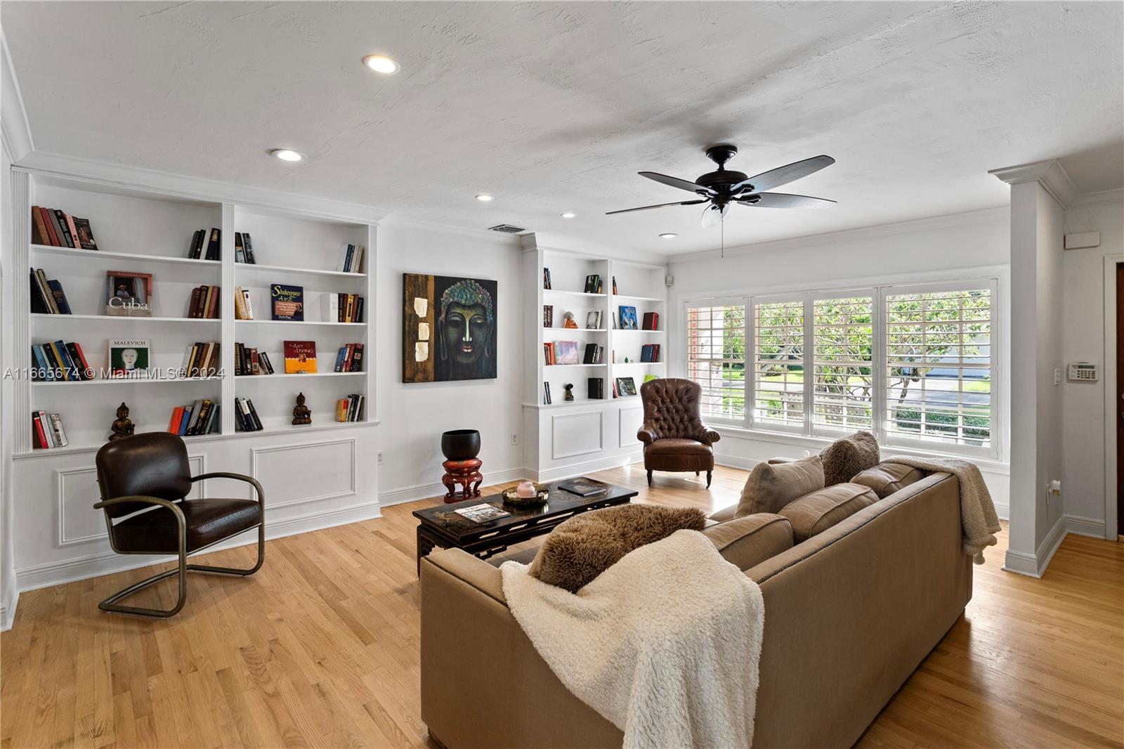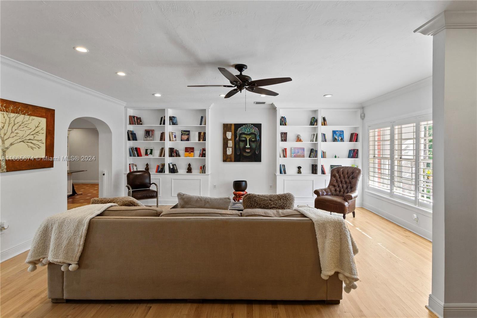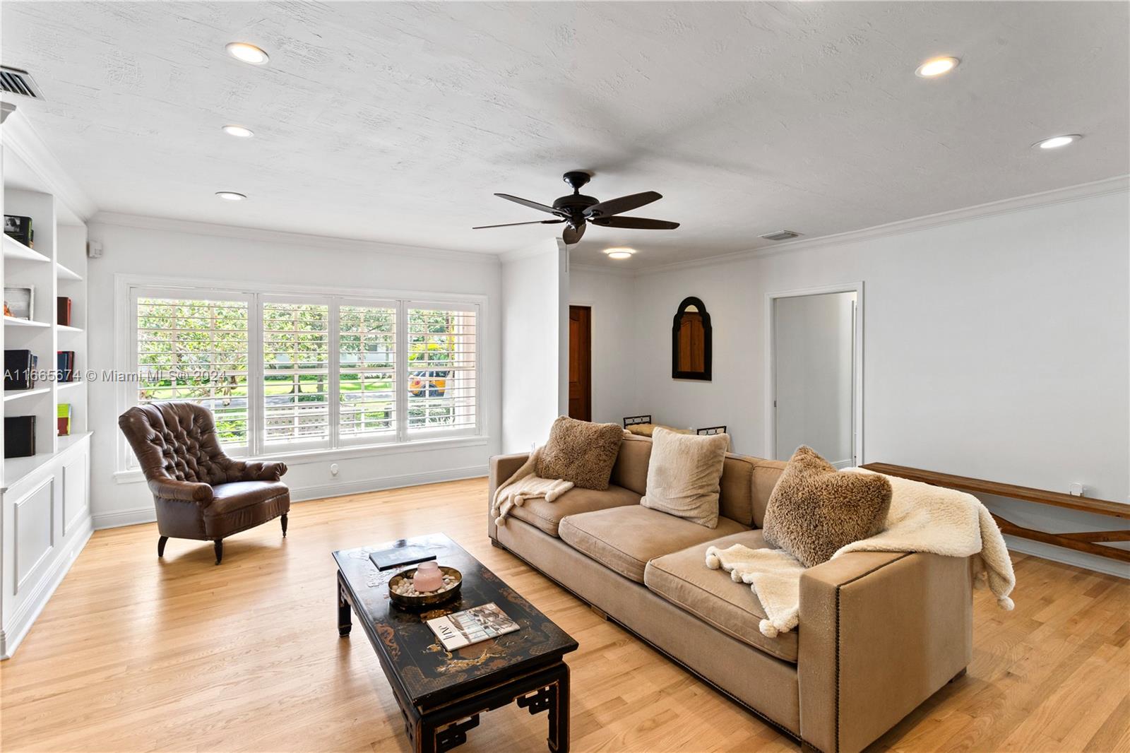 Fabulous 4 Bed / 2.5 Bath Coral Gables Home with large entertaining spaces on a 10,000 SF Lot! Upon entry, you feel the large open social areas including a stately living room and oversized family room that leads to the kitchen which has a wrap-around breakfast room & large dining room. The perfect home to entertain! The 4 bright bedrooms are on the same side of the home, featuring a gracious primary suite with 2 walk-in closets. Impeccable wood floors throughout the home. Large covered terrace outside encourages peaceful entertainment by your backyard. Convenient location close to Merrick Park, UM, Riviera Country Club, & more! Additional ftrs: Roof 2022, 2 Car Garage, Complete Accordion Shutters. Coral Gables Living!