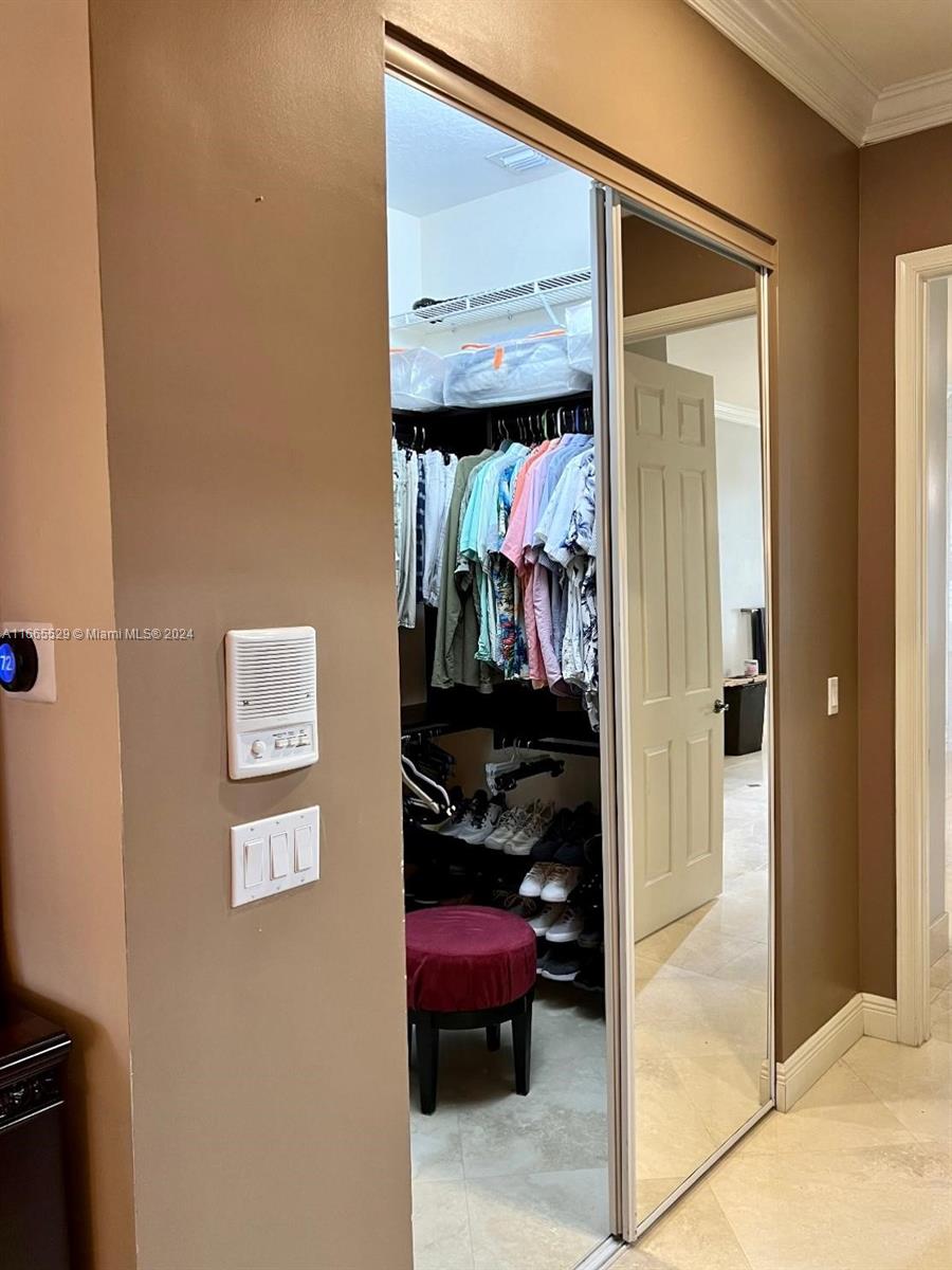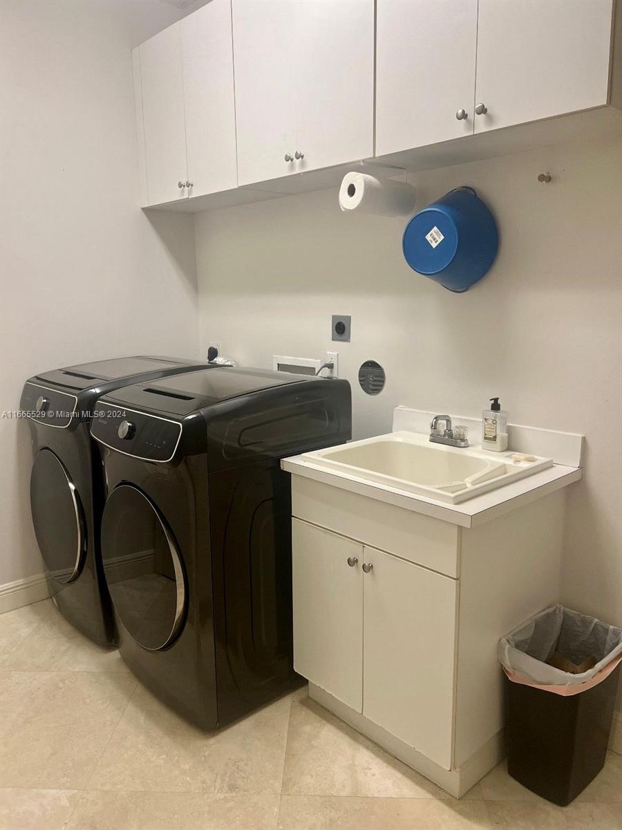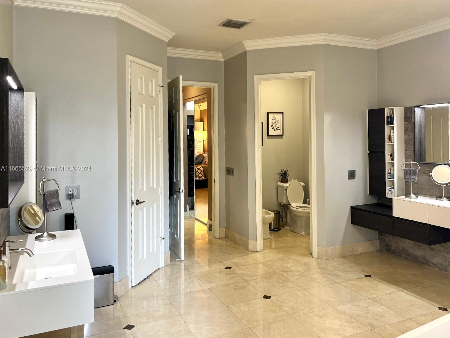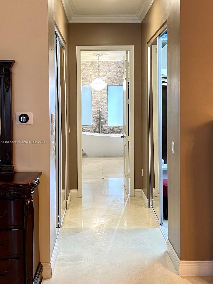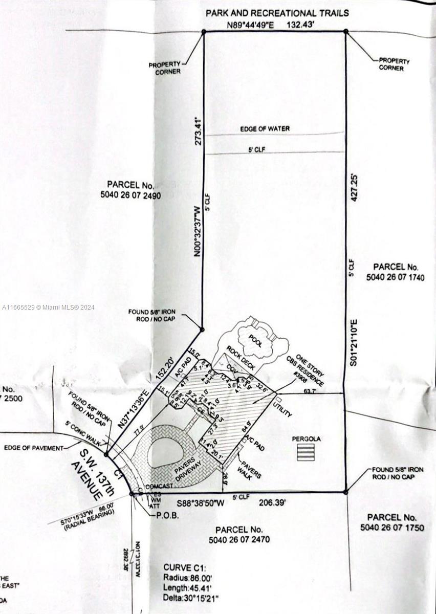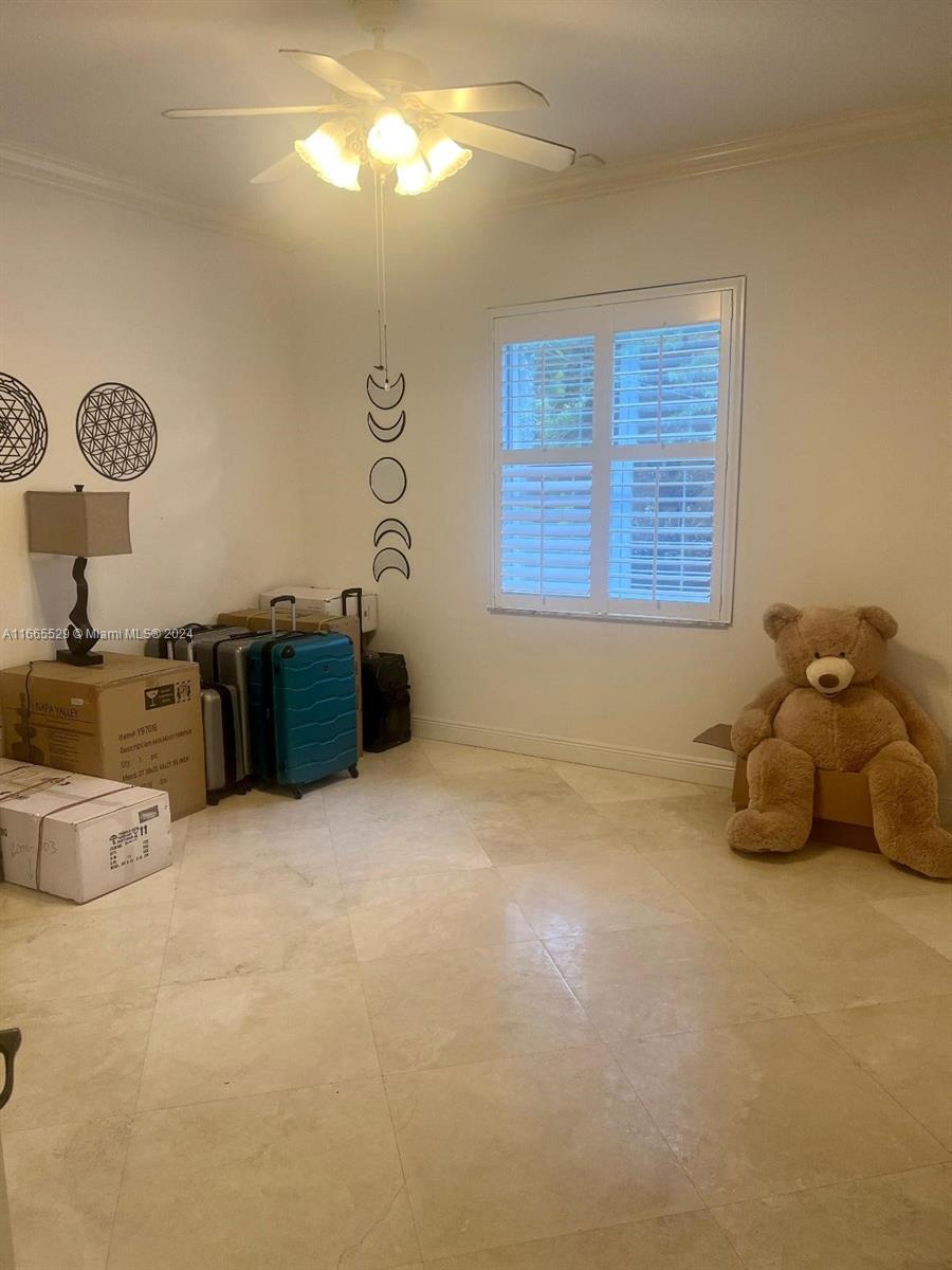This amazing home is located on 1 1/2 acre water lot with palms & fruit trees. It has a circular paved driveway, with 3 car garage, split floor plan & 15ft high ceilings. The best fixtures are the new kitchen, designed by Mia Cucina & Wolf appliances; roof from 2024, new main electrical panel from 2023, 3 AC from 2023, impact windows & shutter combination & the last generation Tesla charger located in the garage. One of the garages has been converted into a Gym with a Sauna! The entrance leads to the main space, to the left, office & the master bedroom with a modern bathtub & huge walk-in shower. to the right, 3 bedrooms with baths, laundry, gym & garage. The backyard has a lot of potential, enough space for a mini golf and tennis court.