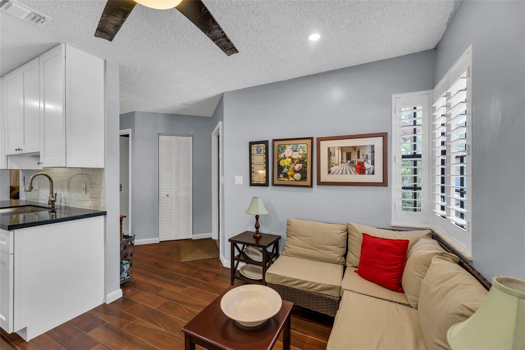 Rarely available corner unit in Spanish Springs -- 3 bedrooms and 2.5 bathrooms. This unit has a sweet patio area AND a back yard. Kitchen renovated in 2020, new AC in 2022, new roof on the building in 2024. Bedrooms upstairs, 2 have walk-in closets. Townhome protected with accordion shutters. Full size washer & dryer inside the home. Unit comes with 2 assigned parking spaces. Many dogs/support animals in the community. Spanish Springs Townhomes has mature tropical landscaping, a lovely pond setting, Clubhouse, and Pool. Monthly HOA fee is $609 includes reserves. Easy to get to Wilton Manors just up NE 4 Ave/Wilton Drive, and only 20 minutes drive to Fort Lauderdale airport.